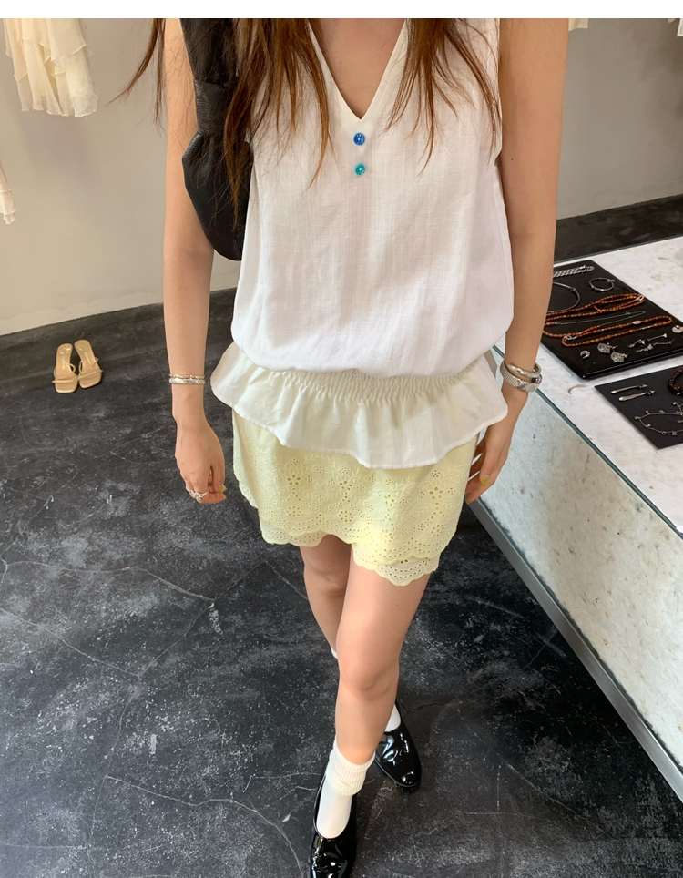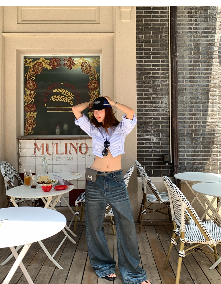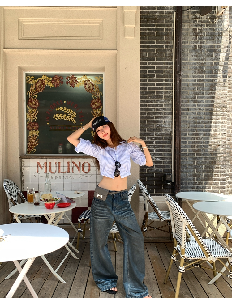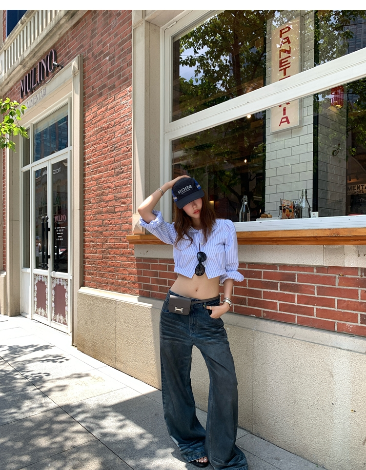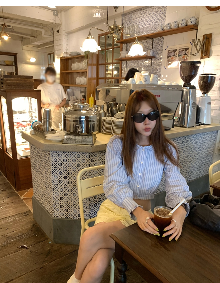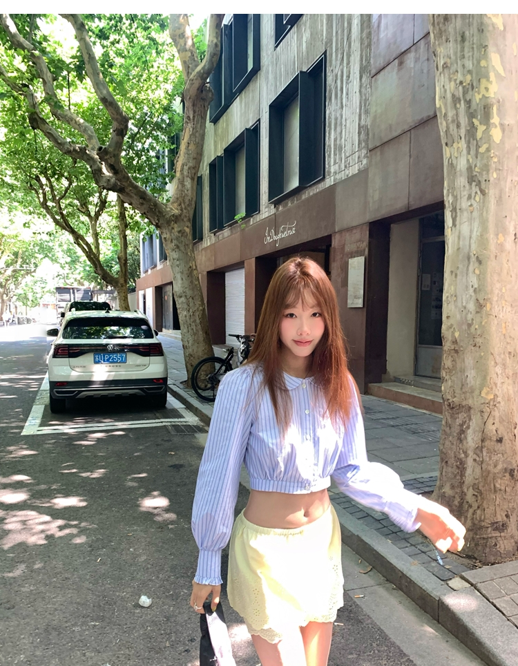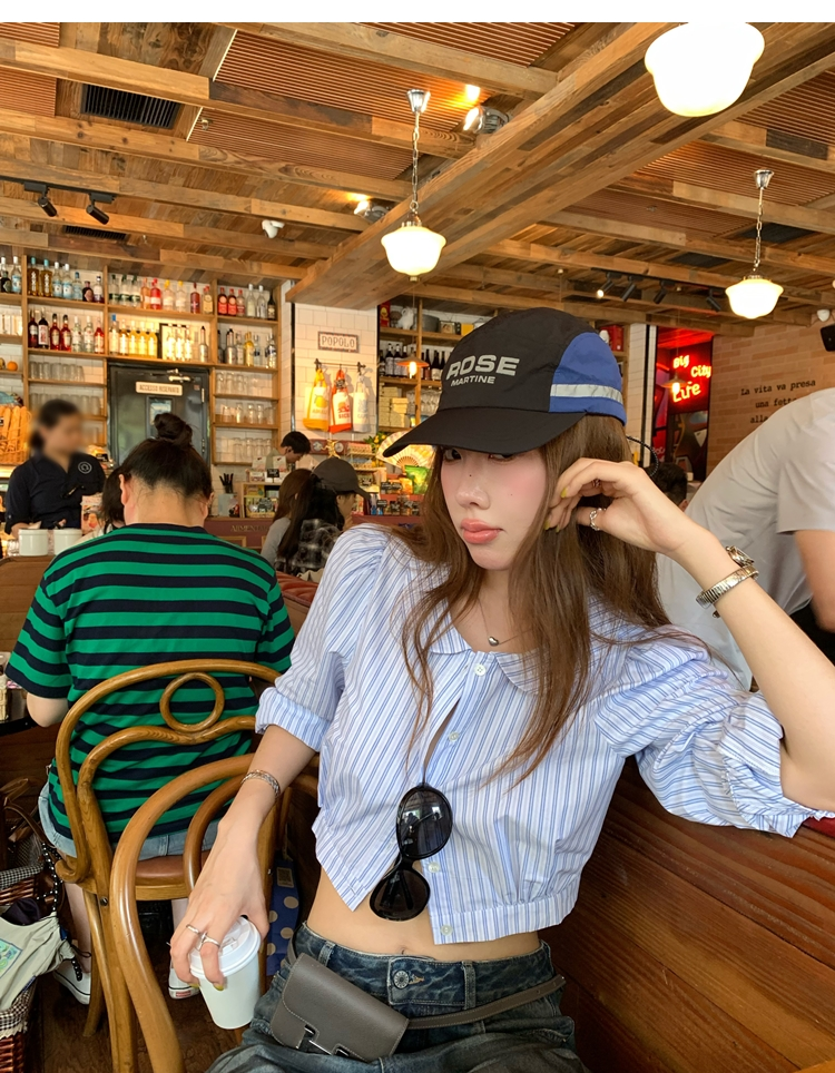 Lemon Vintage Stripe Doll Collar Bubble Sleeve Shirt Lace Floral Shorts Set