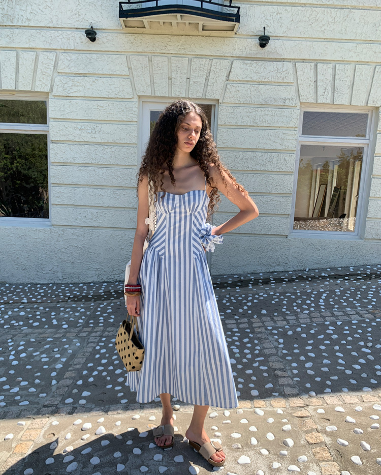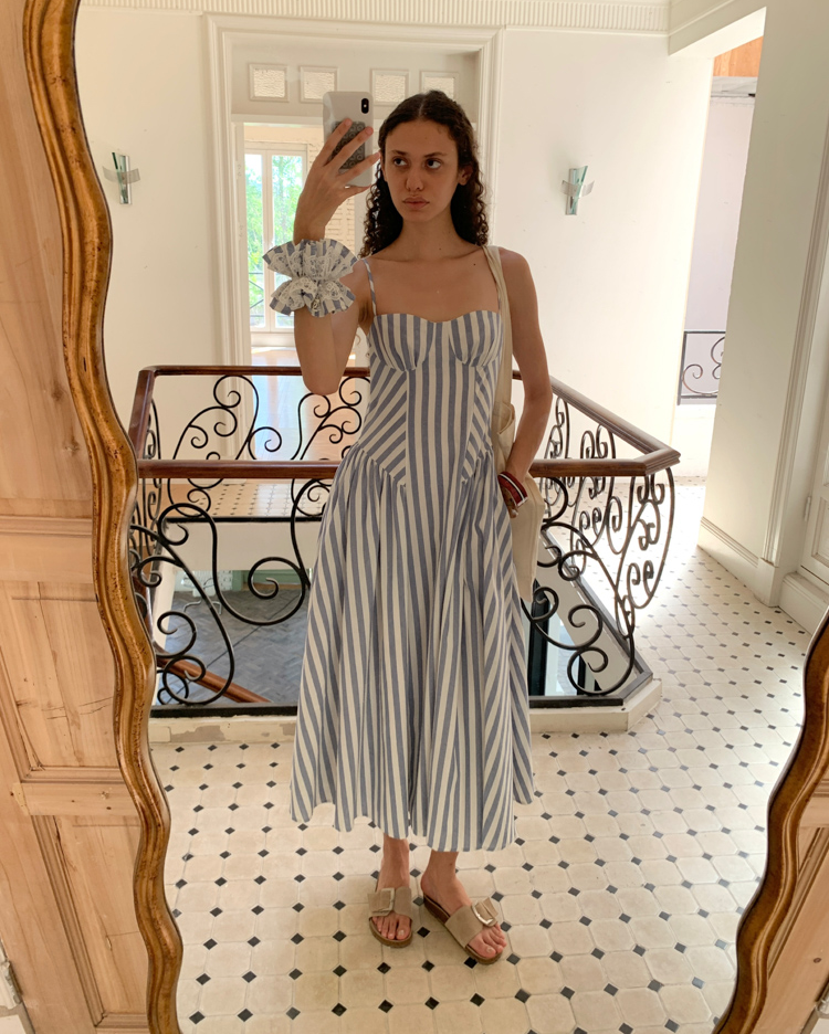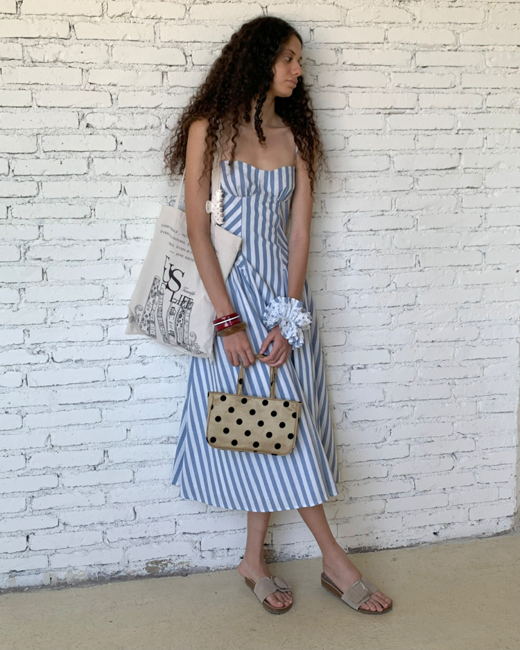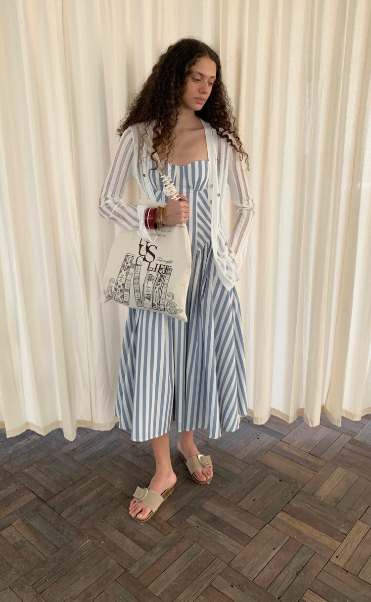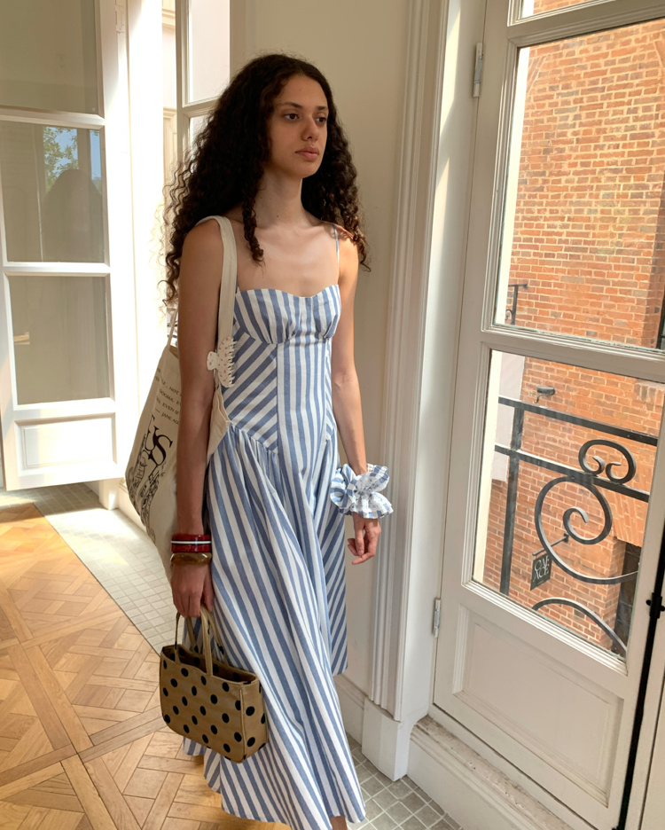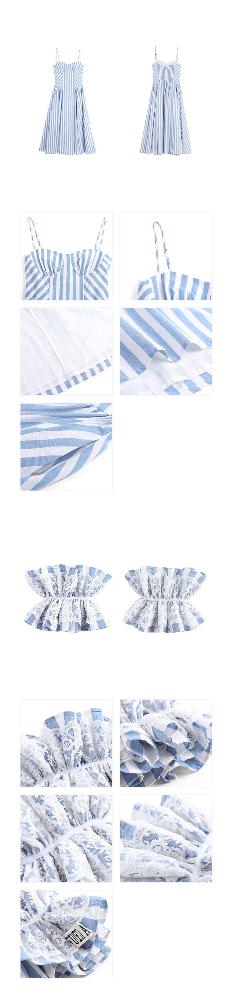 Stitched Blue White Stripe Cotton Long Dress / hairband