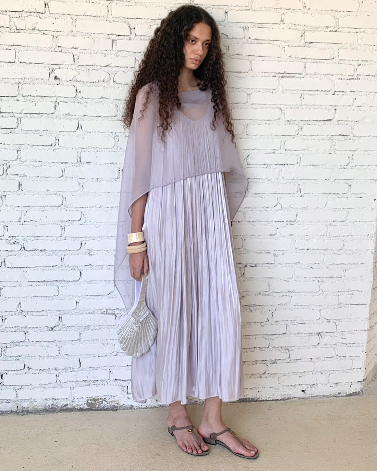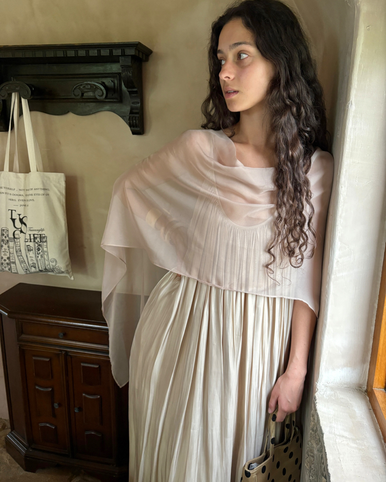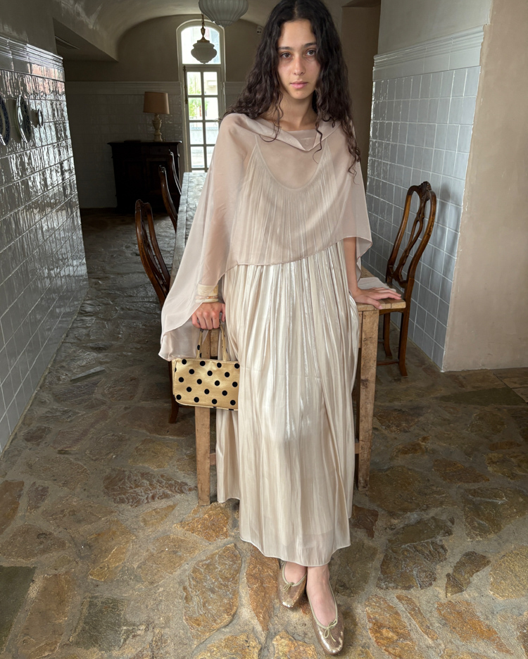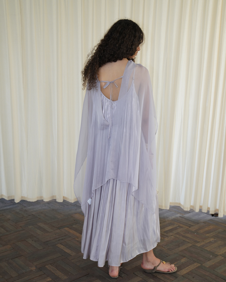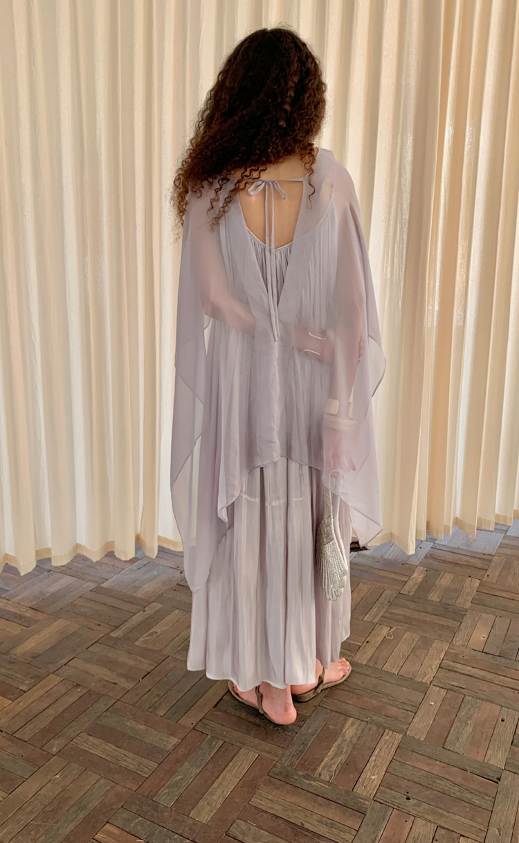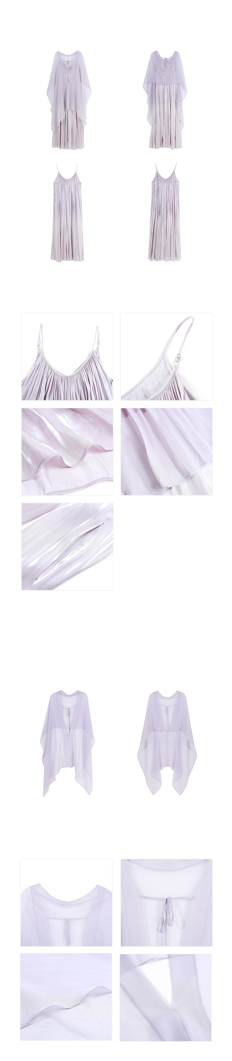 Greek Silk U-neck Strap Dress / Sunscreen Chiffon Shawl Set