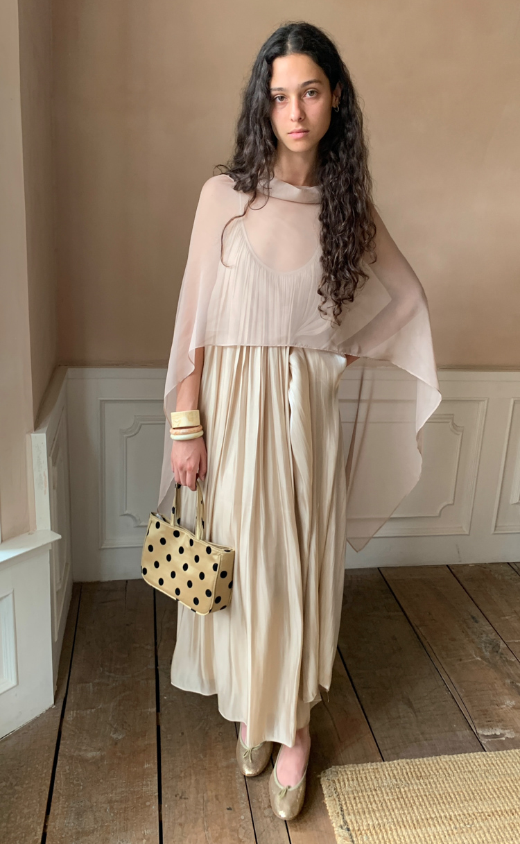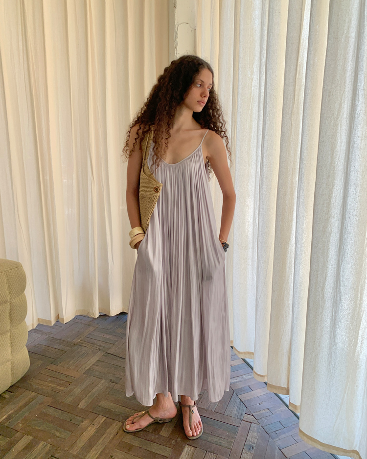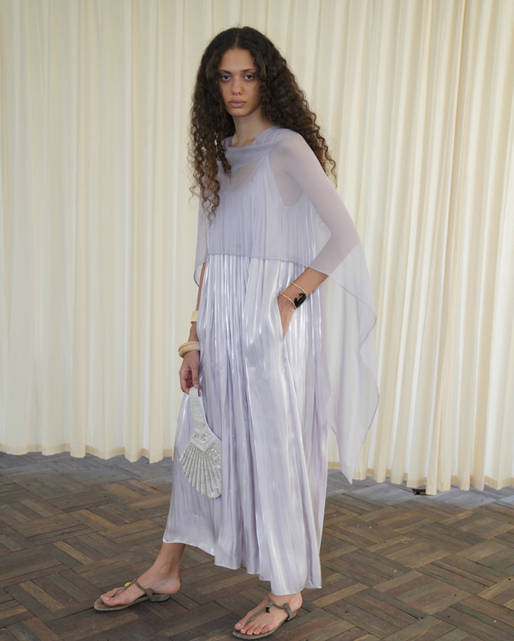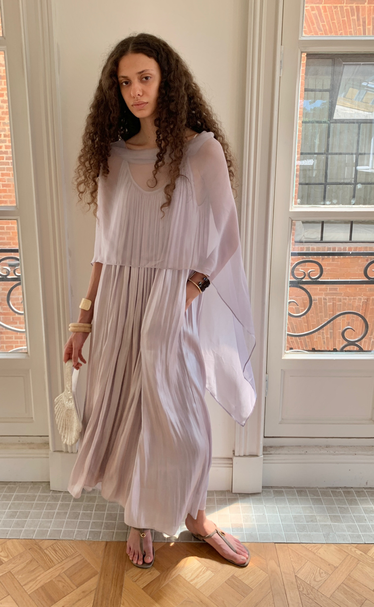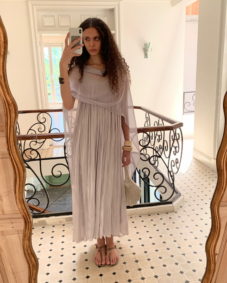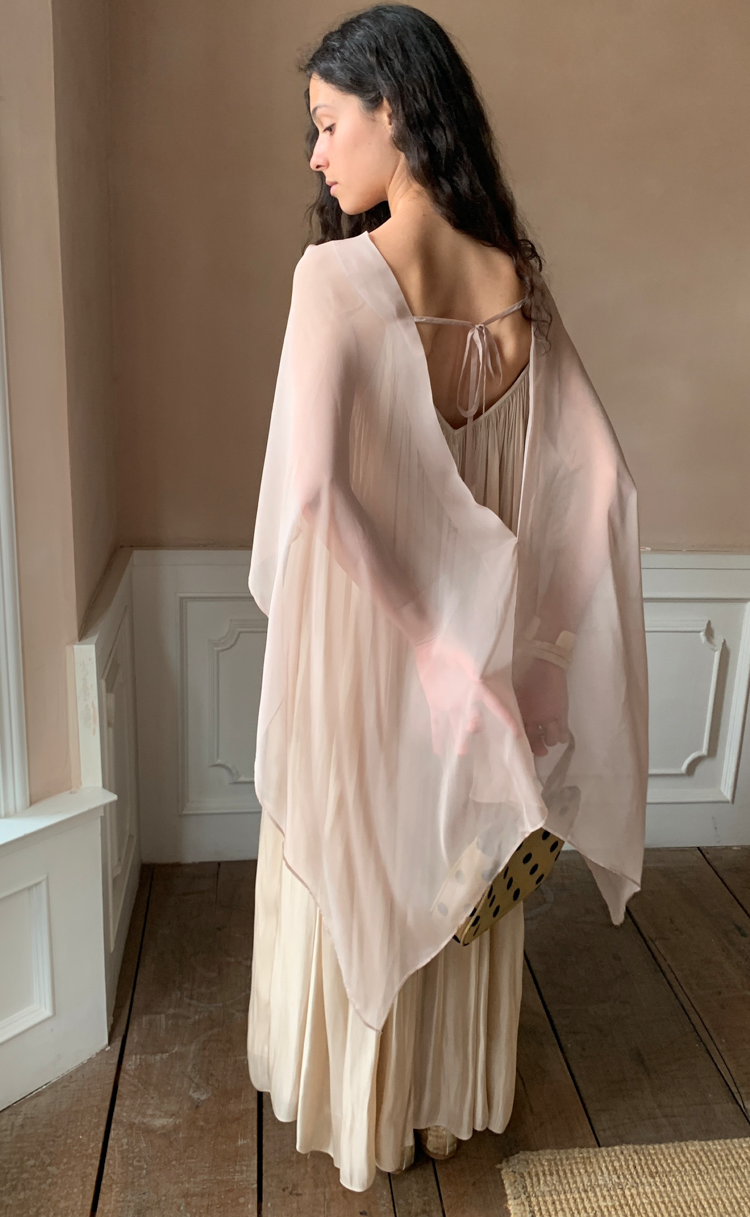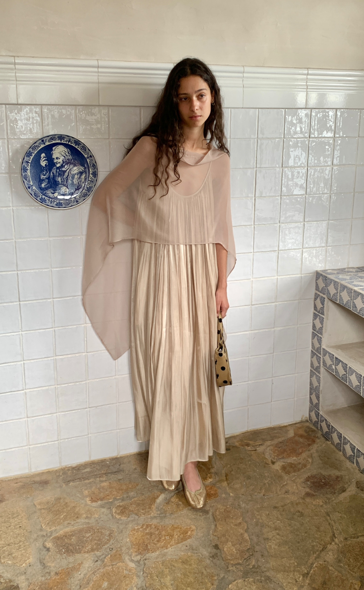 Greek Silk U-neck Strap Dress / Sunscreen Chiffon Shawl Set