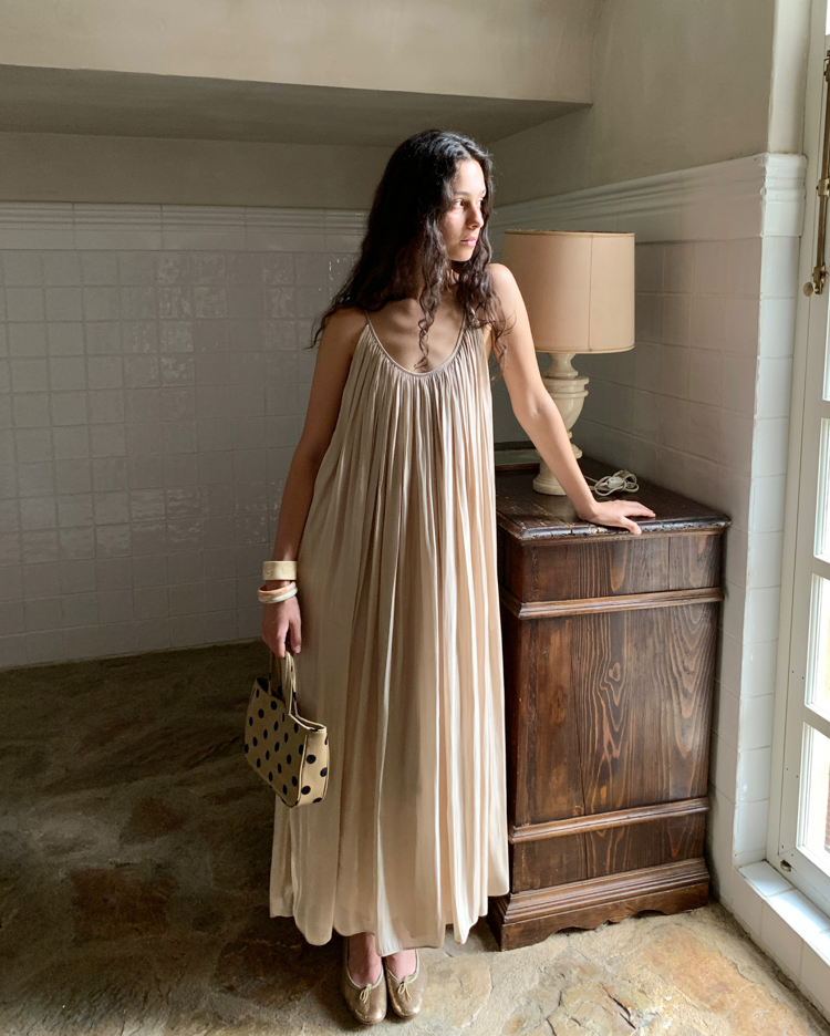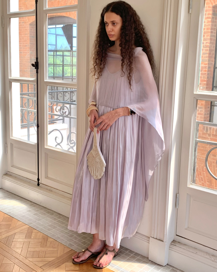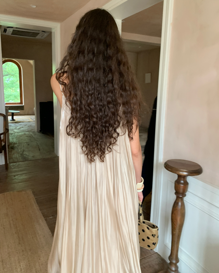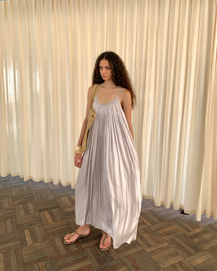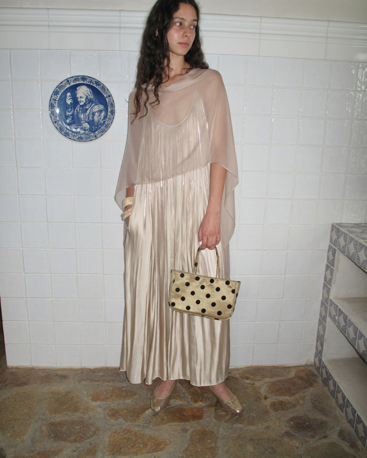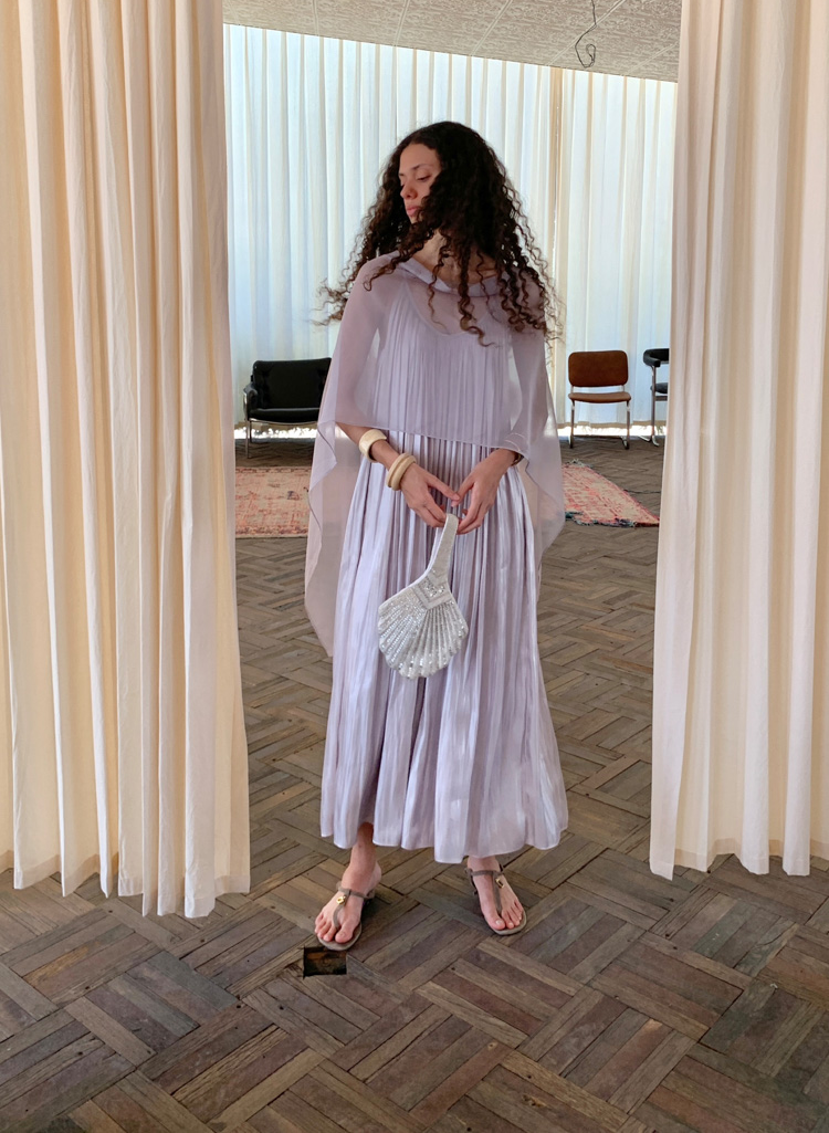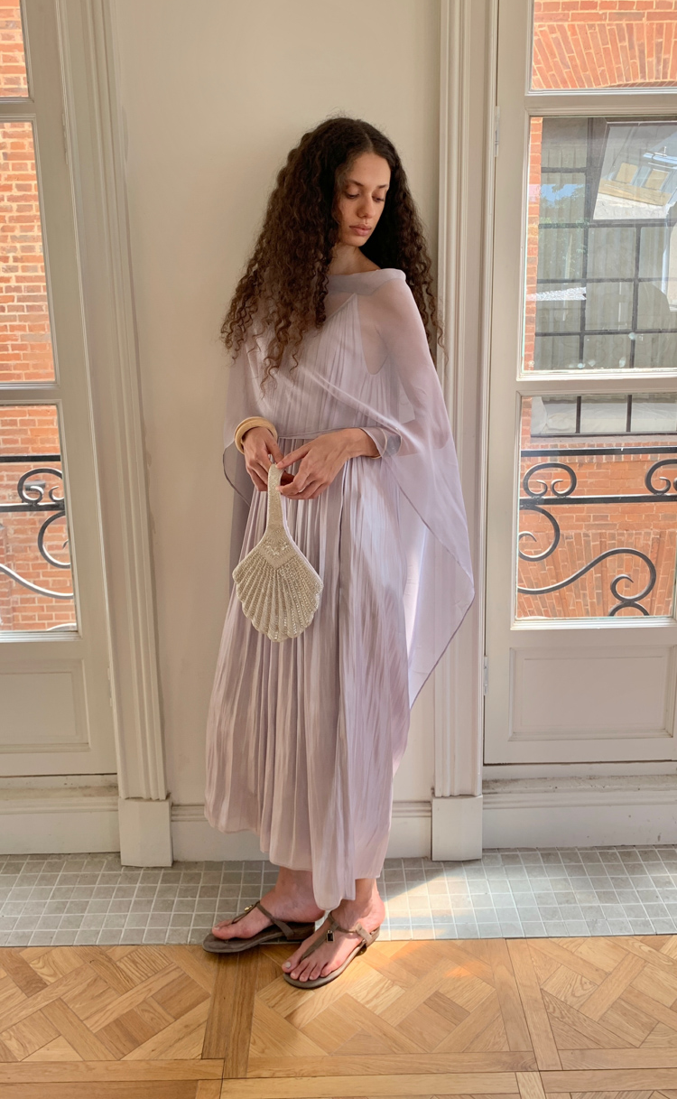 Greek Silk U-neck Strap Dress / Sunscreen Chiffon Shawl Set