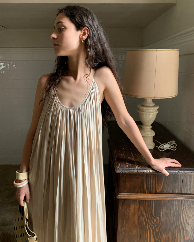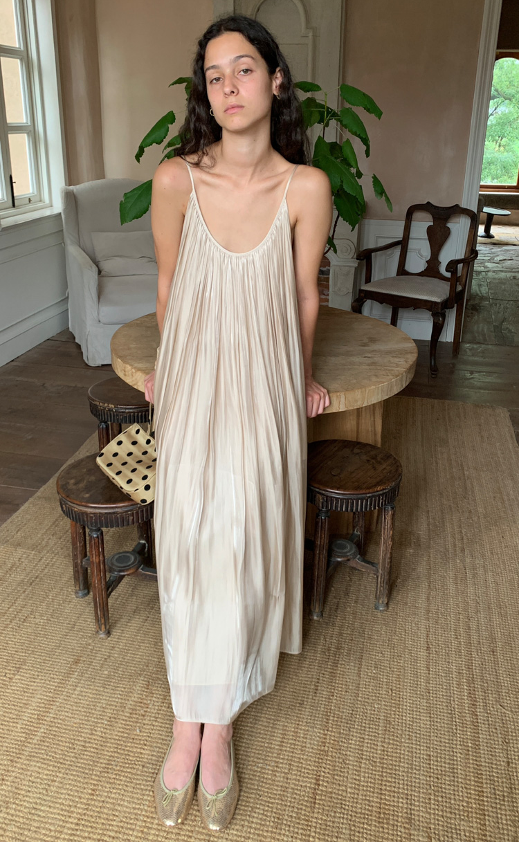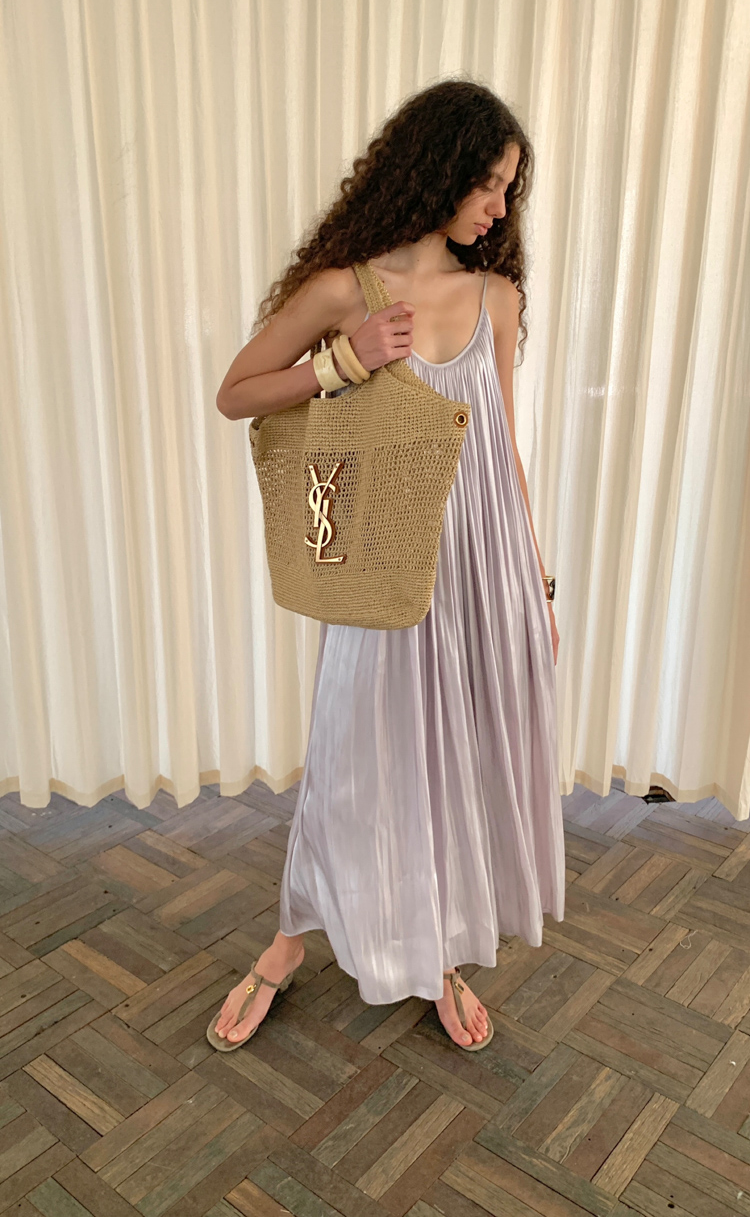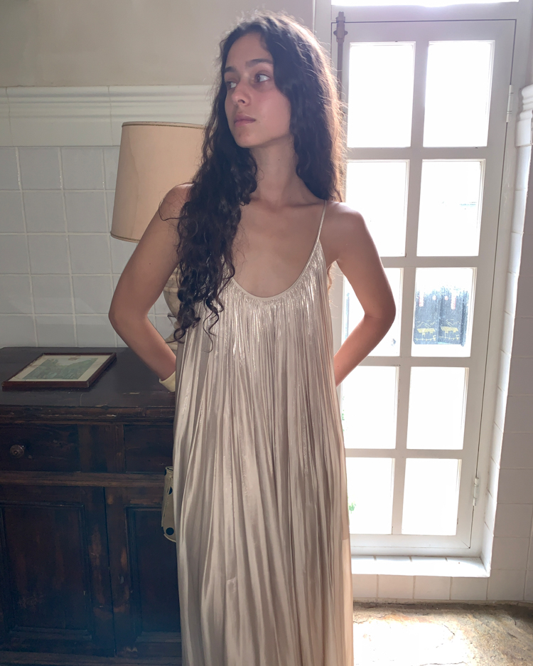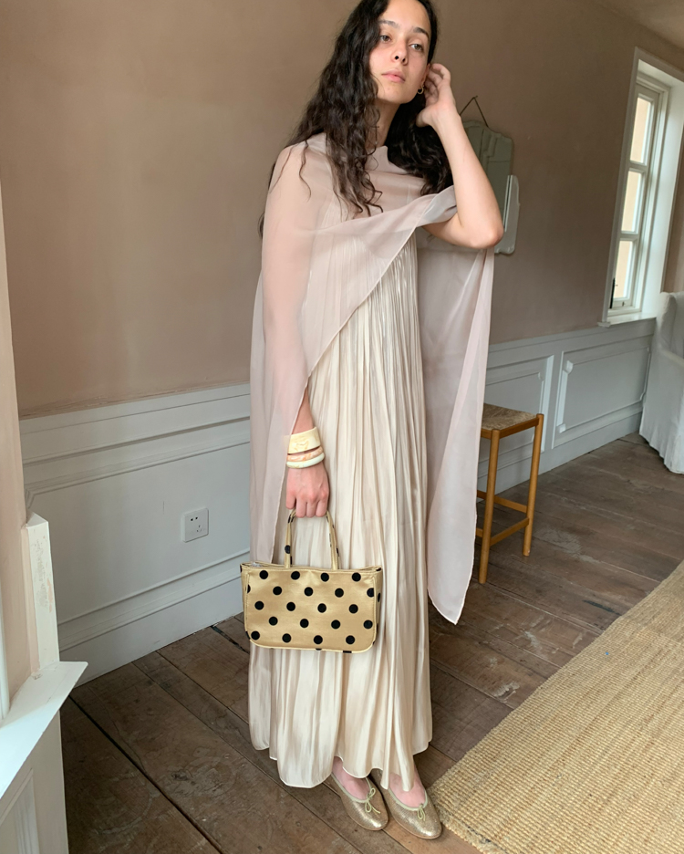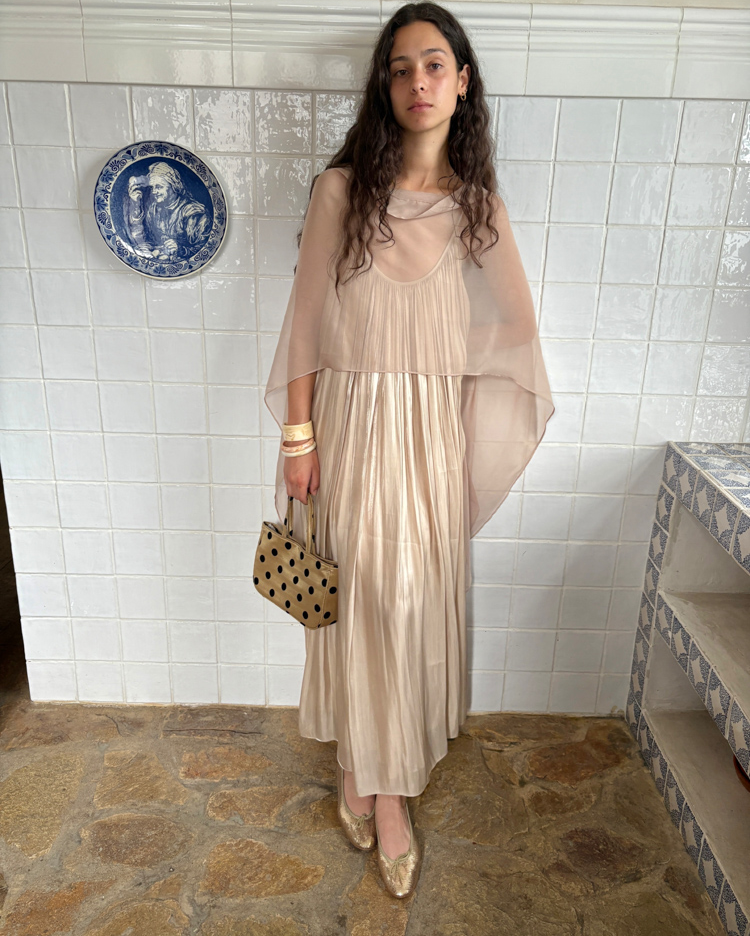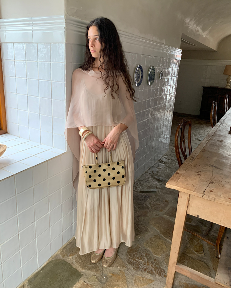 Greek Silk U-neck Strap Dress / Sunscreen Chiffon Shawl Set