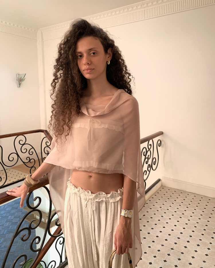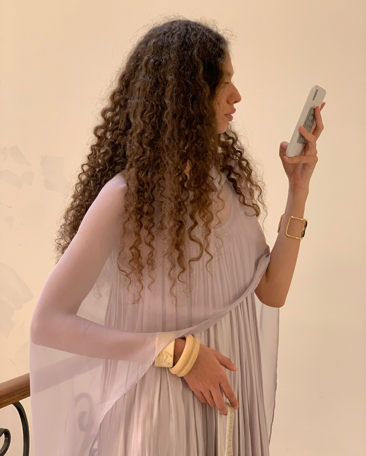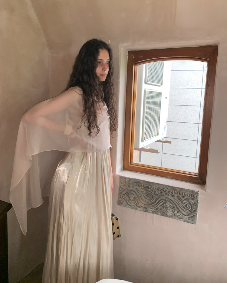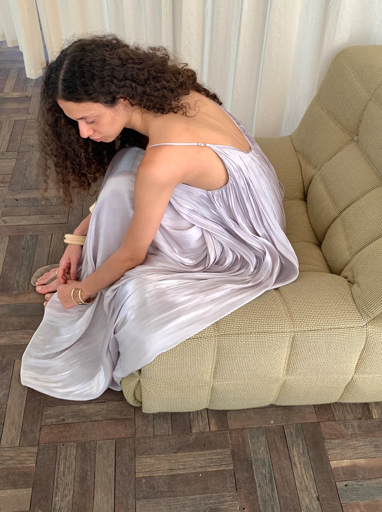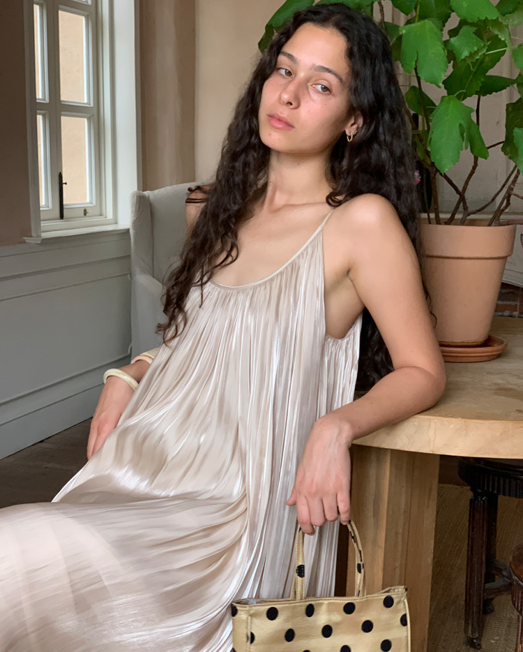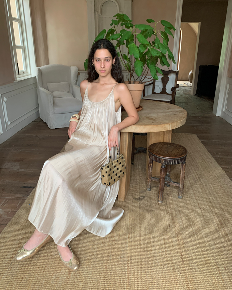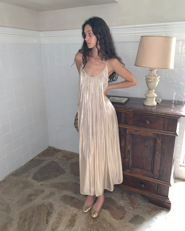 Greek Silk U-neck Strap Dress / Sunscreen Chiffon Shawl Set
