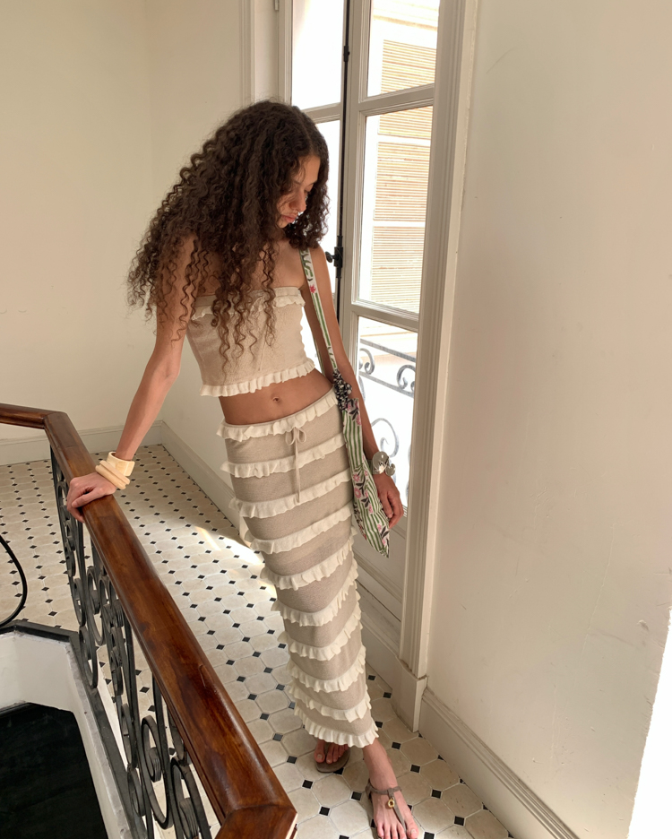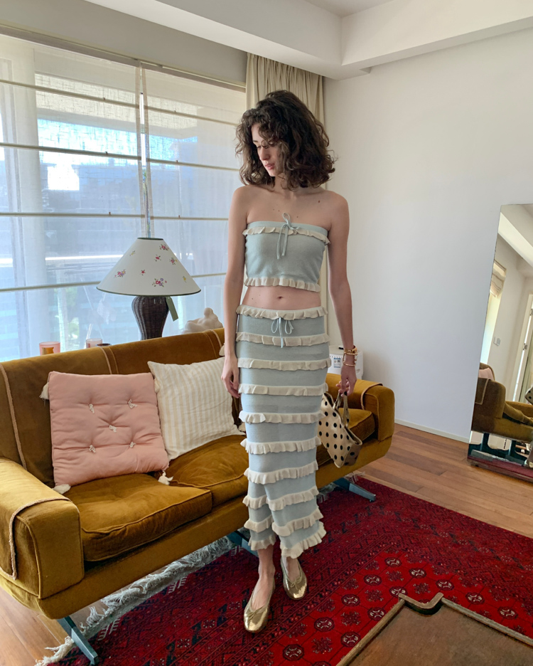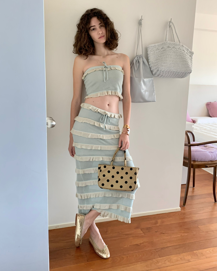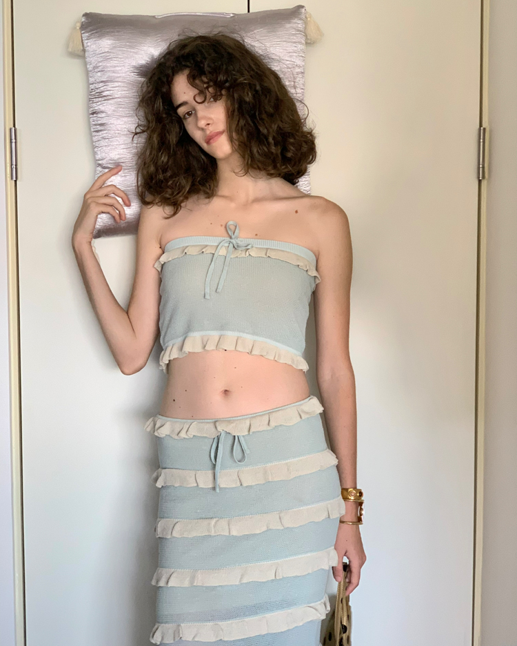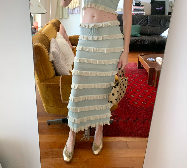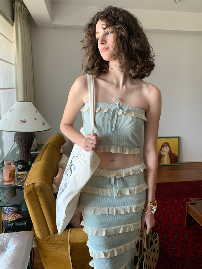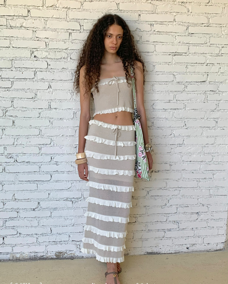 Lotus Leaf Edge Collar Top Layered Cake Skirt Set