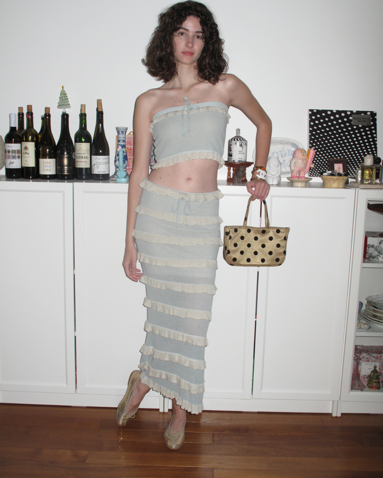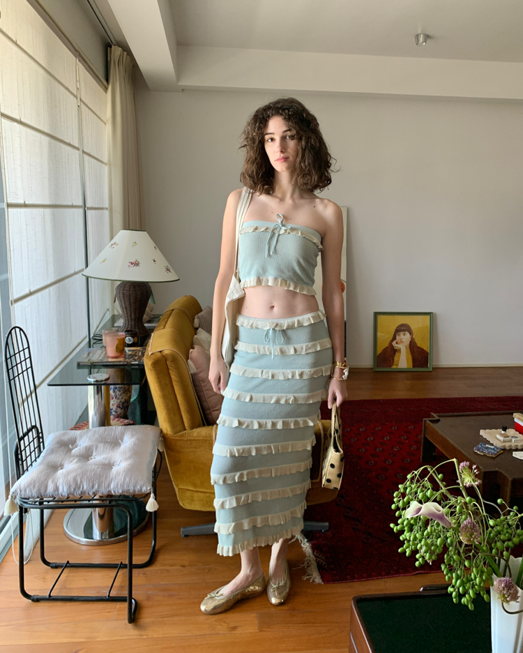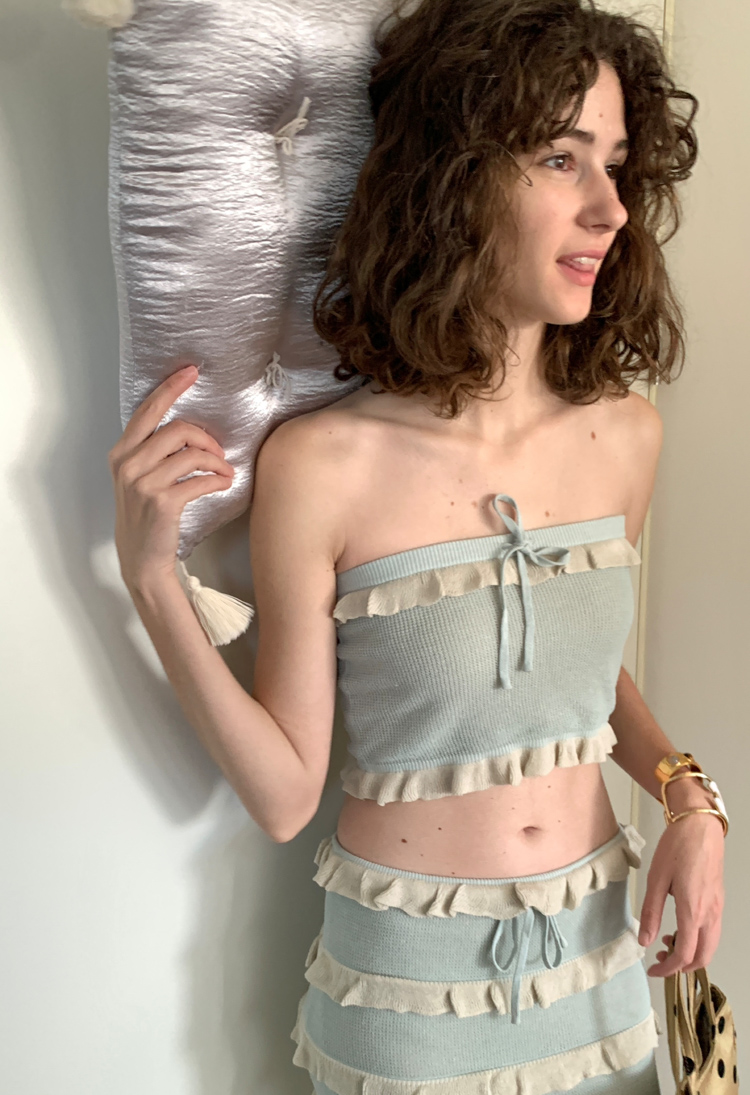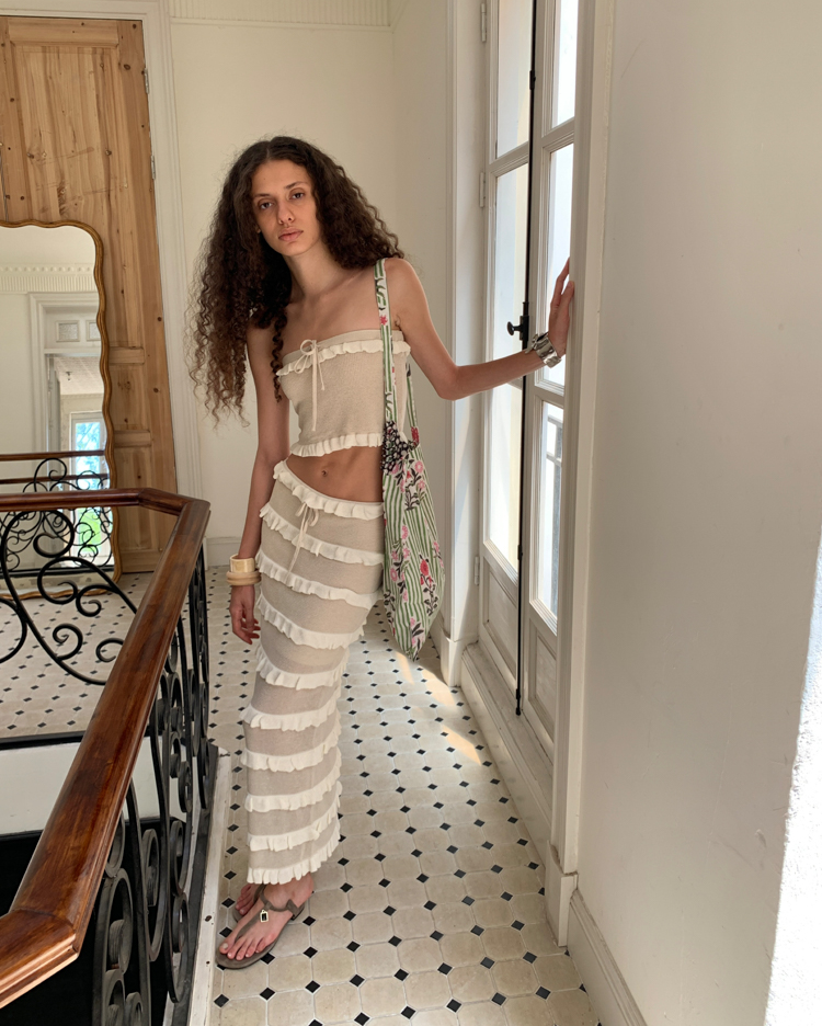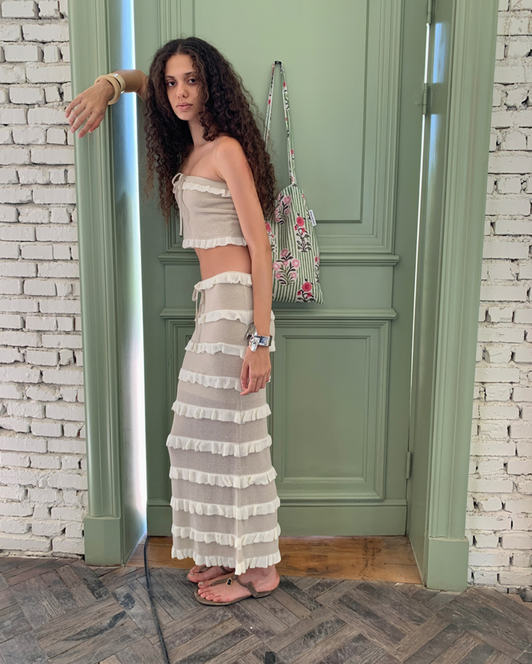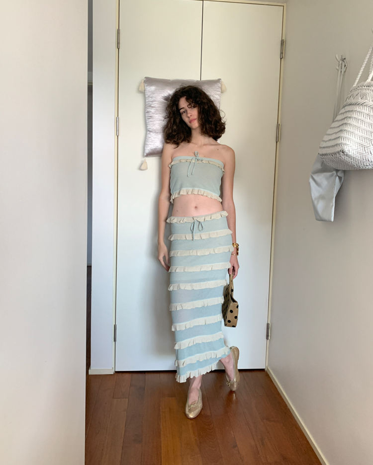 Lotus Leaf Edge Collar Top Layered Cake Skirt Set