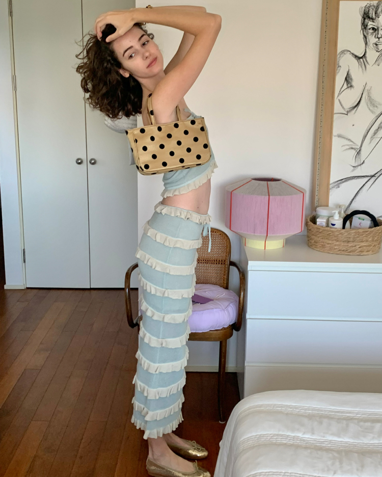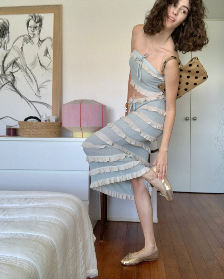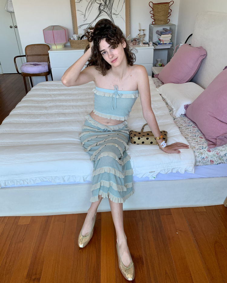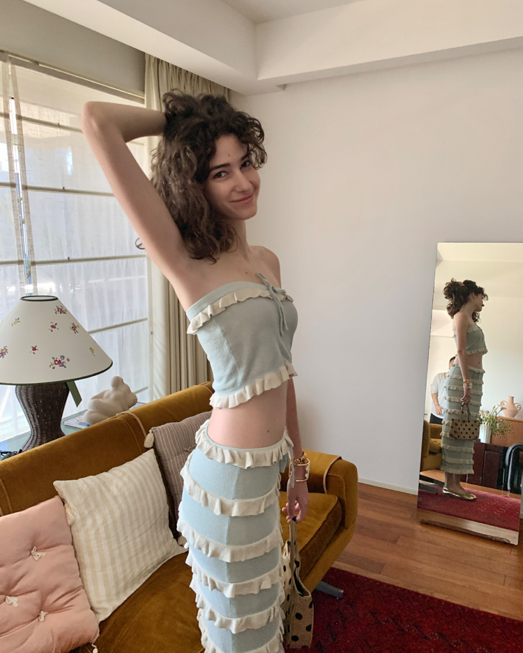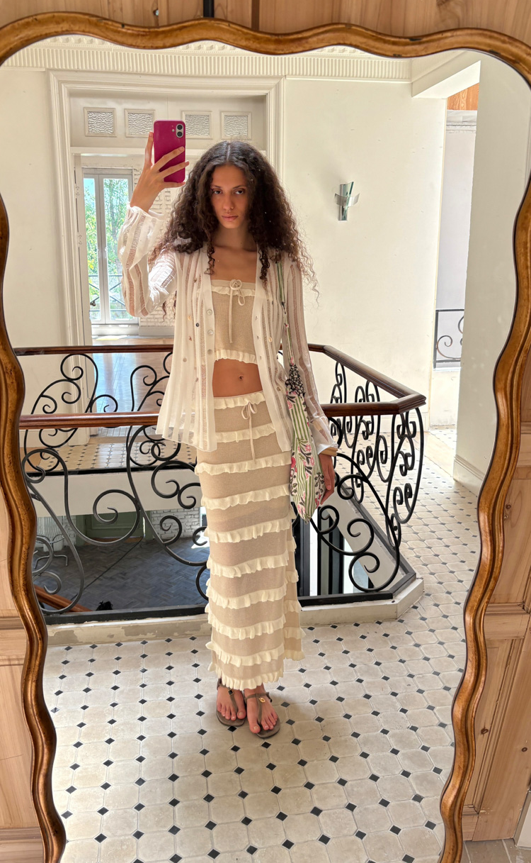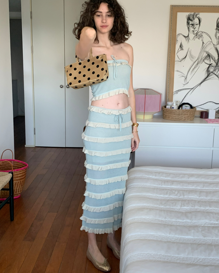 Lotus Leaf Edge Collar Top Layered Cake Skirt Set