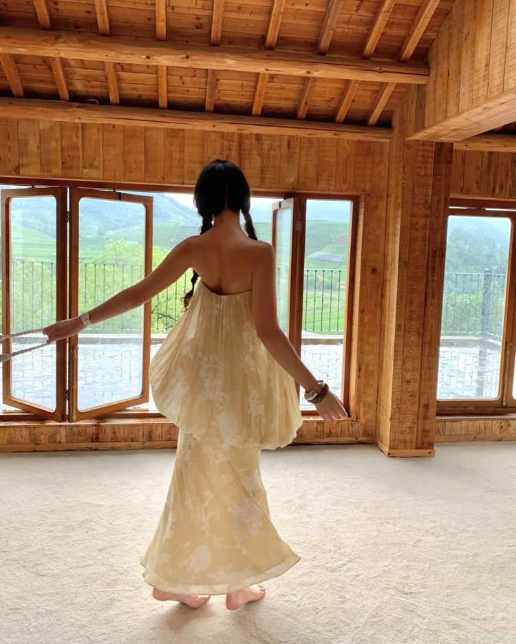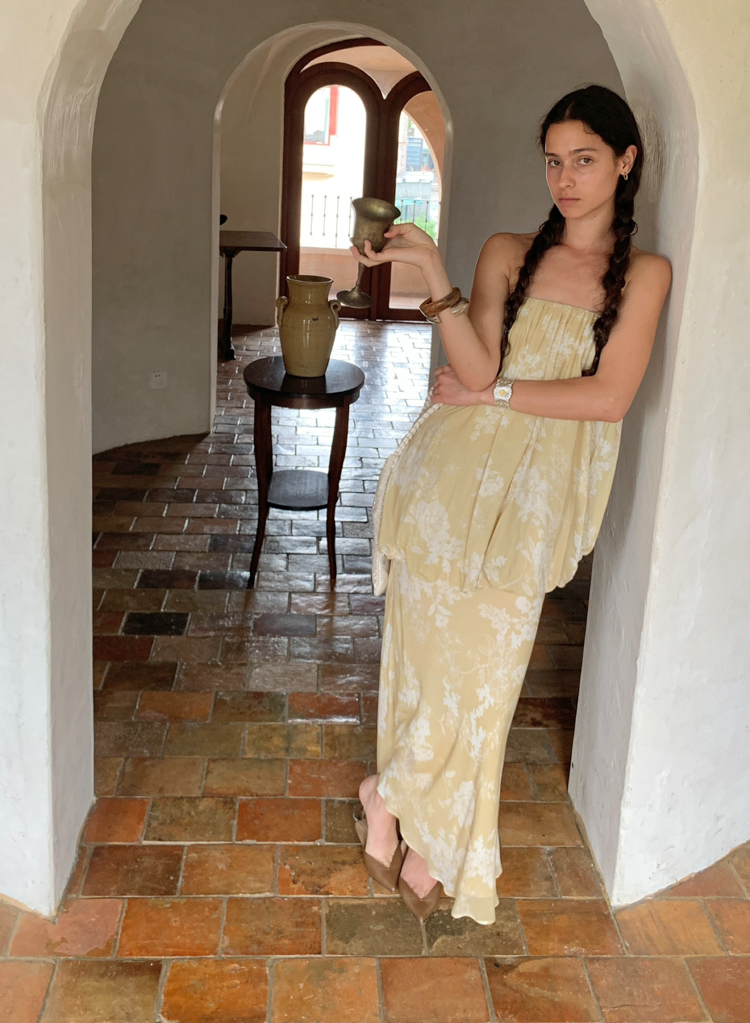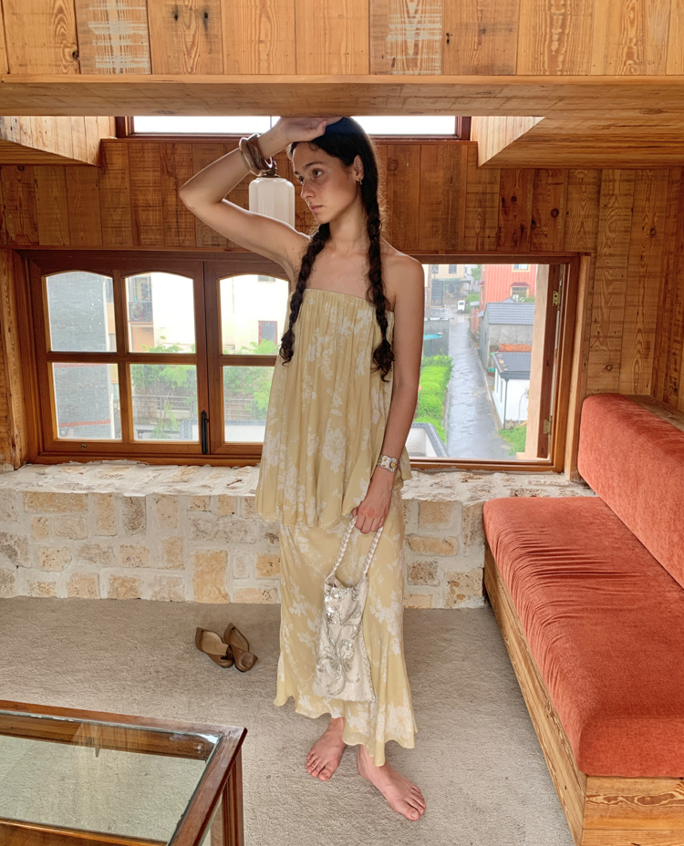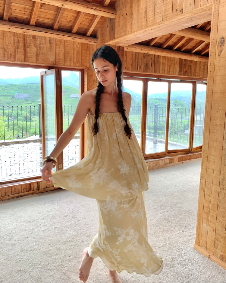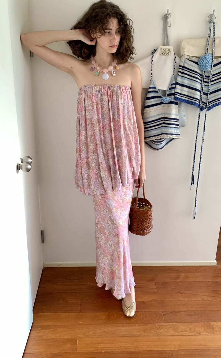 Fake Two-Piece Buds and Chest-Fitting Long Dress