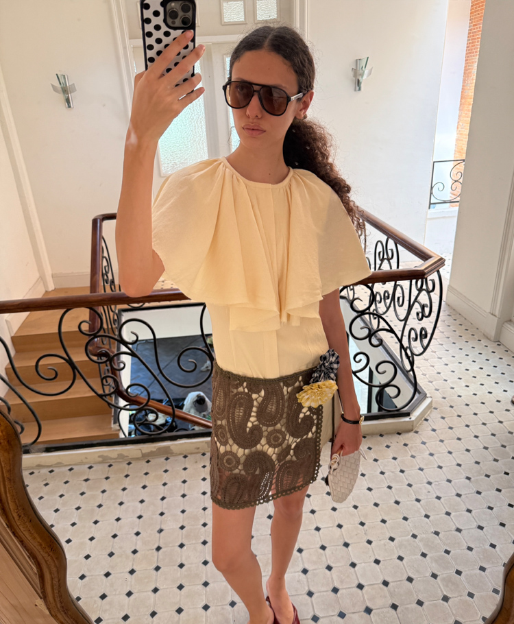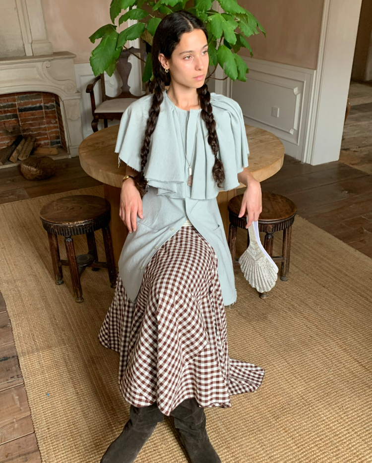 Fabric : Viscose fiber (viscose fiber) 57.1%, polyester 37.2%, linen 5.7%