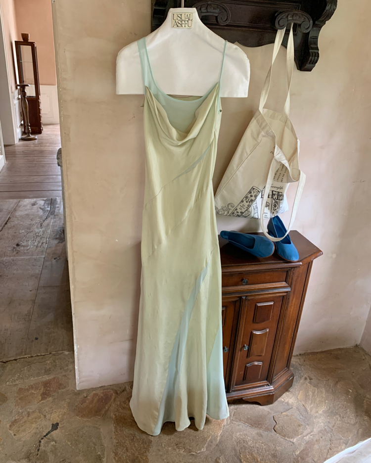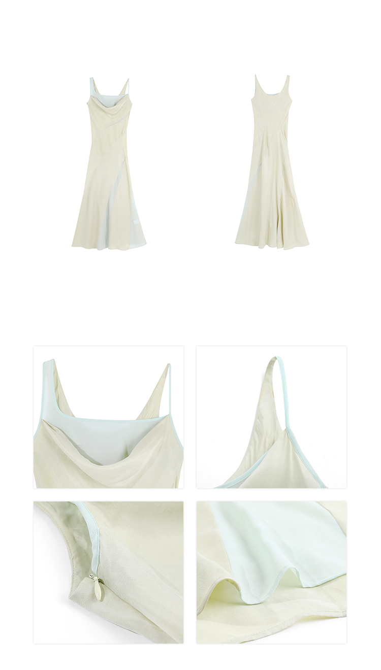 Shoulder Strap Fake Two-Piece Swing-Neck Dress