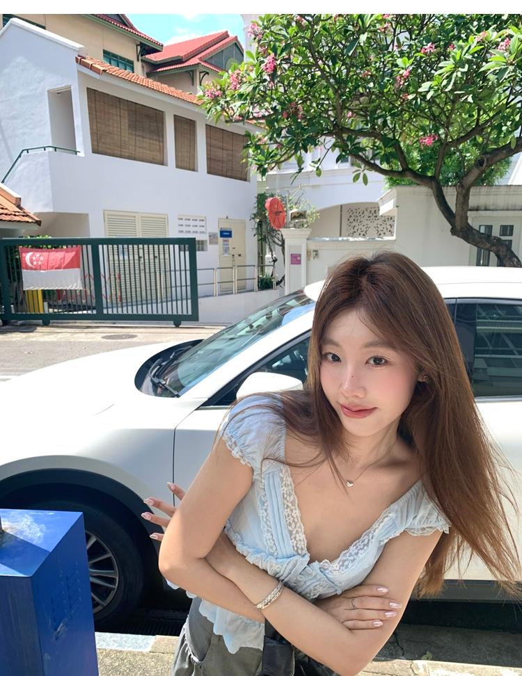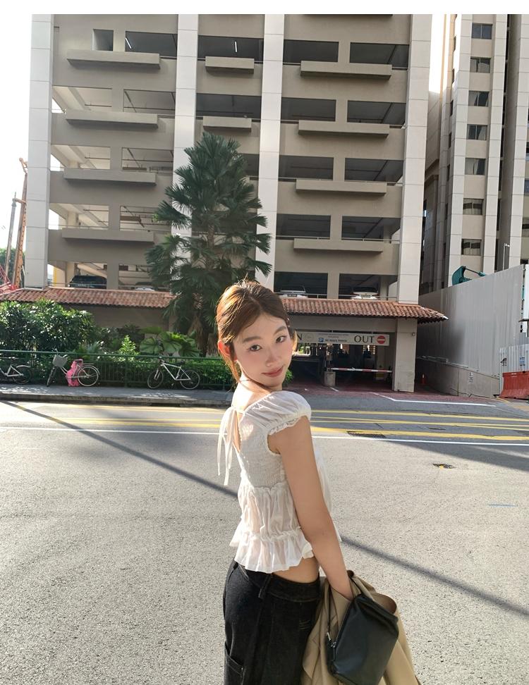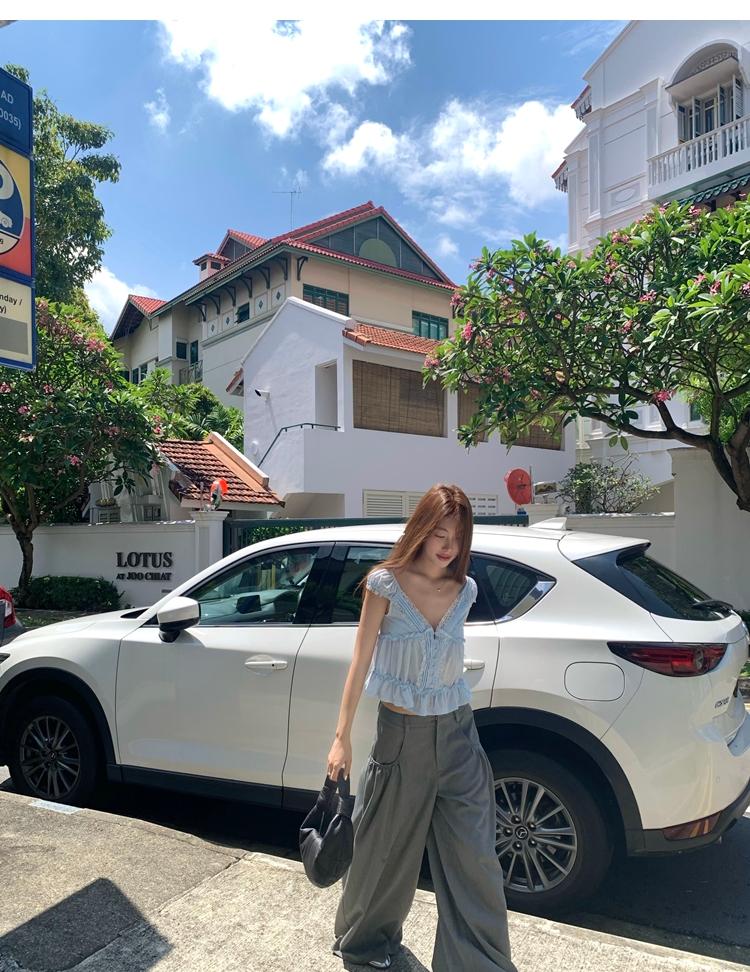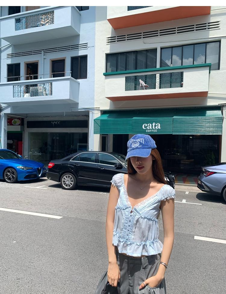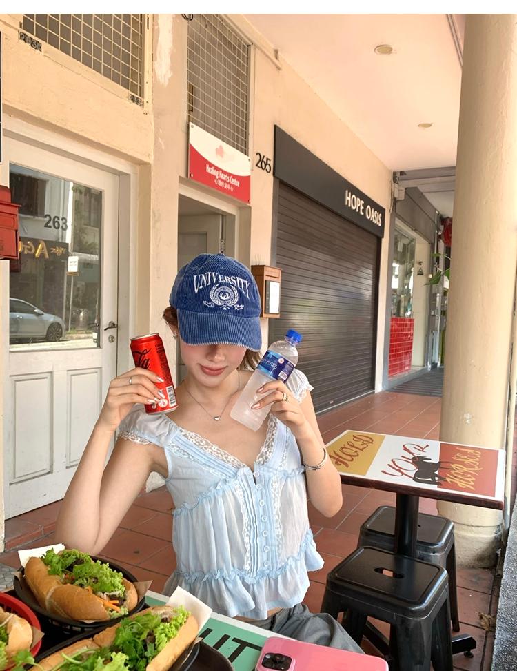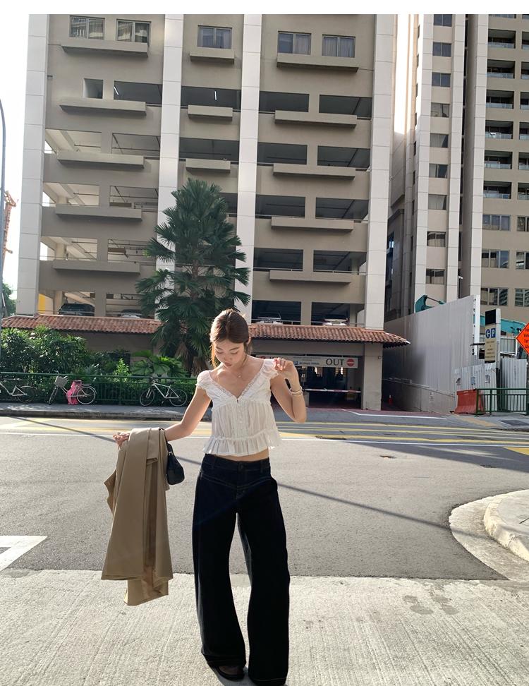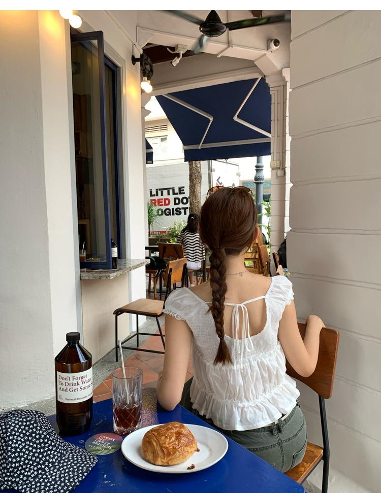 Delicate French lace V-neck back clear lotus leaf edges Top