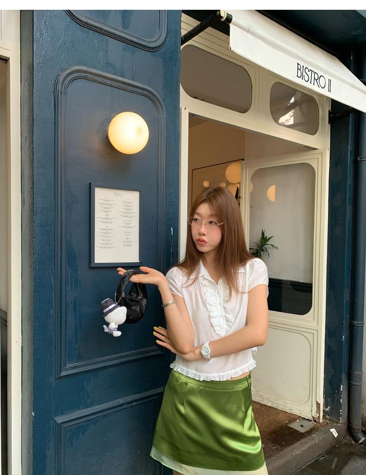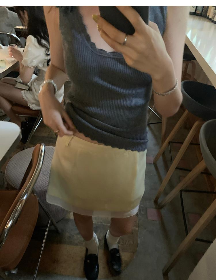 Rosemary Gloss Simplified Mesh Edge A-Shaped Slimming Half Skirt