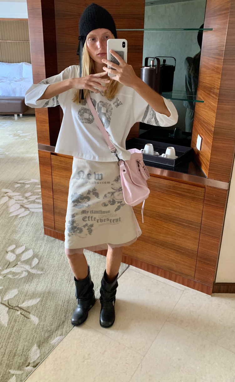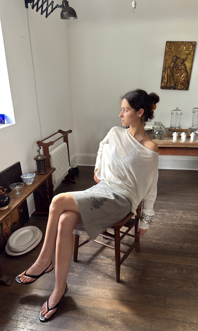 Curly Grass Pattern Vintage Gothic Alphabet Print Double Layer Mesh Skirt