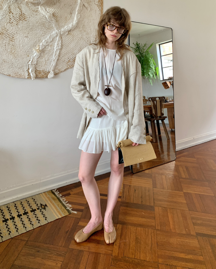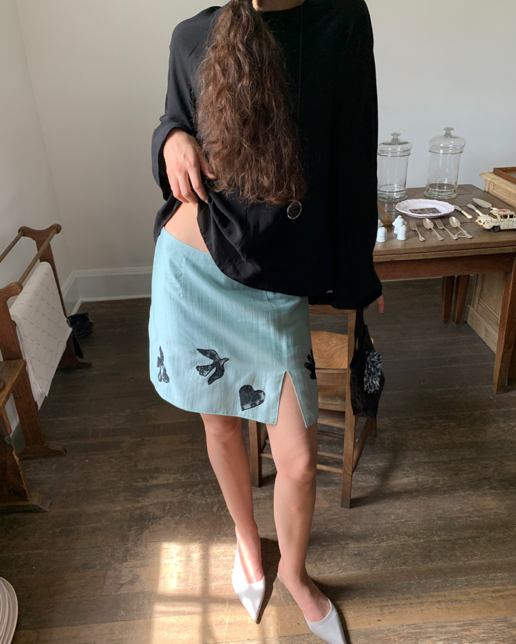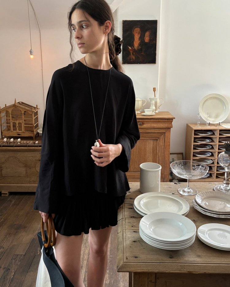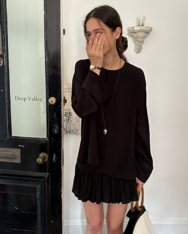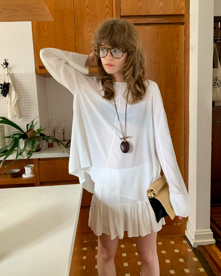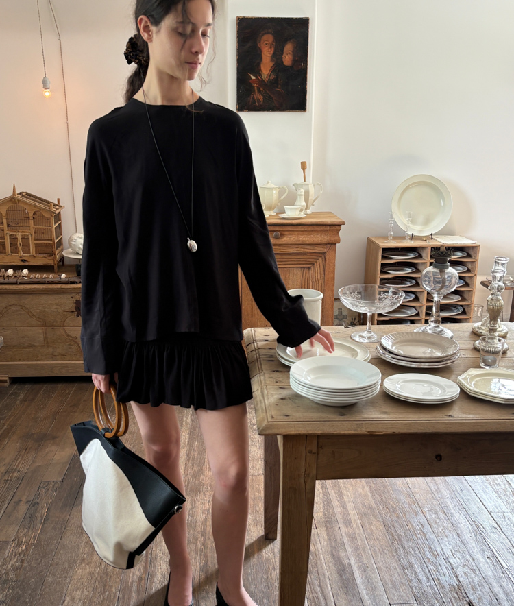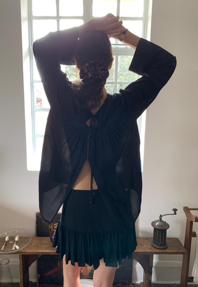 Two-way wear simple round neck backless blouse top ruffle skirt set