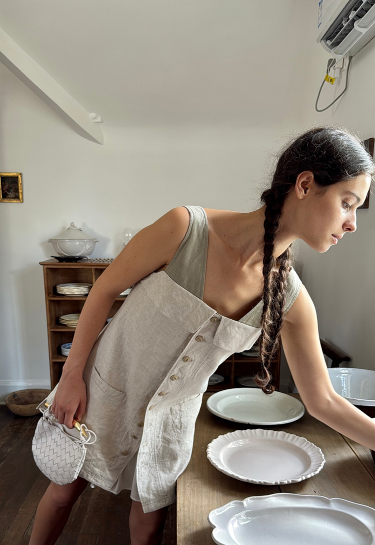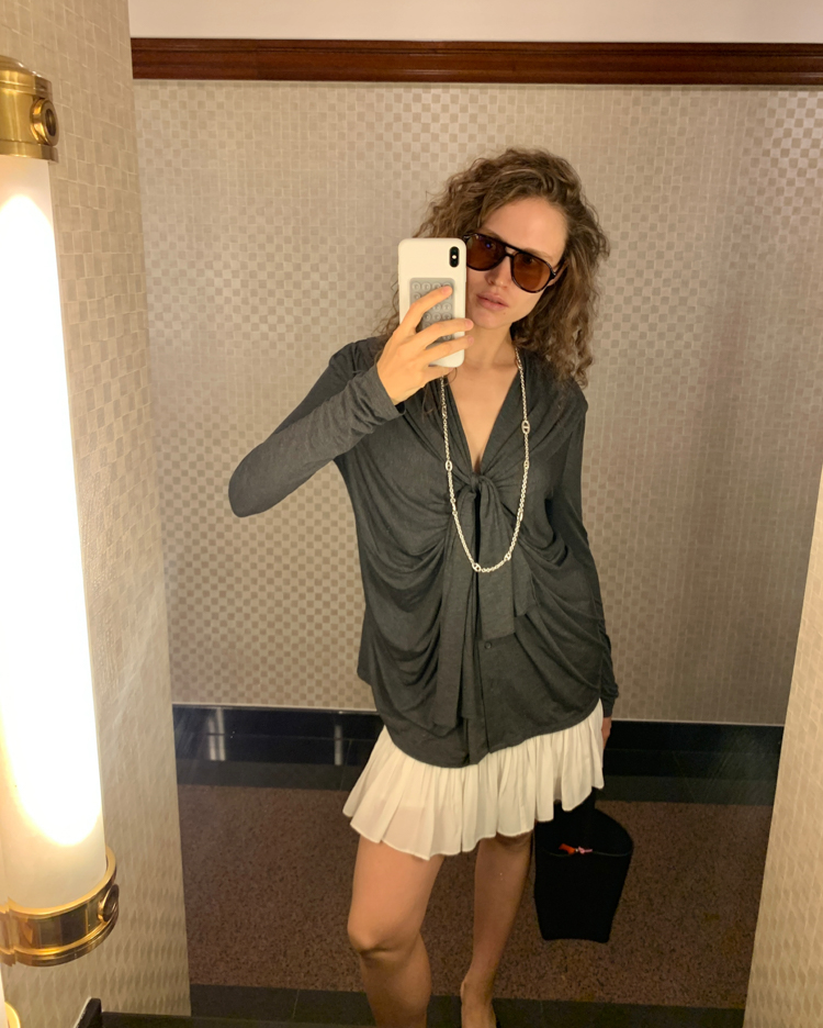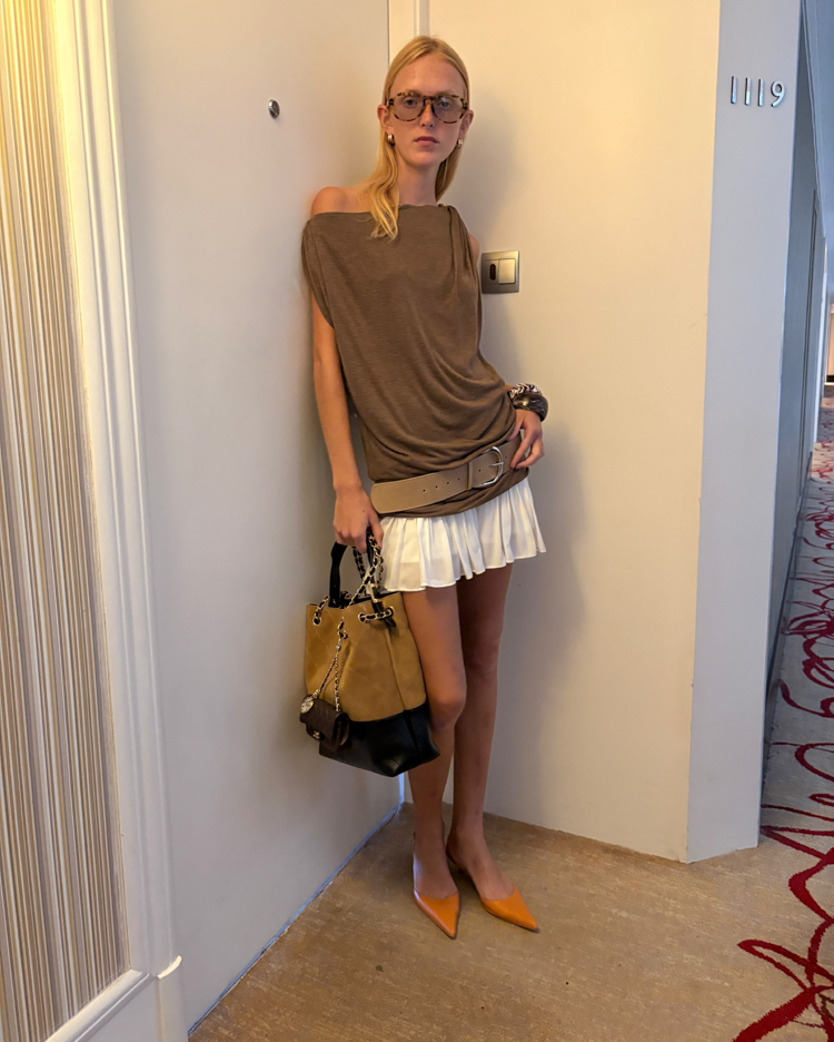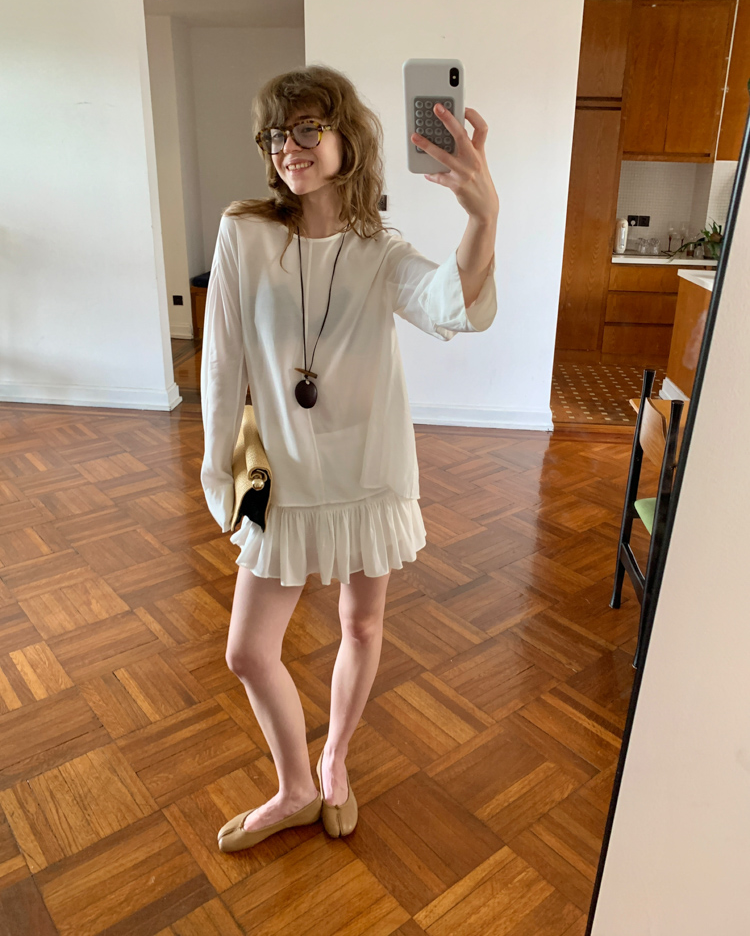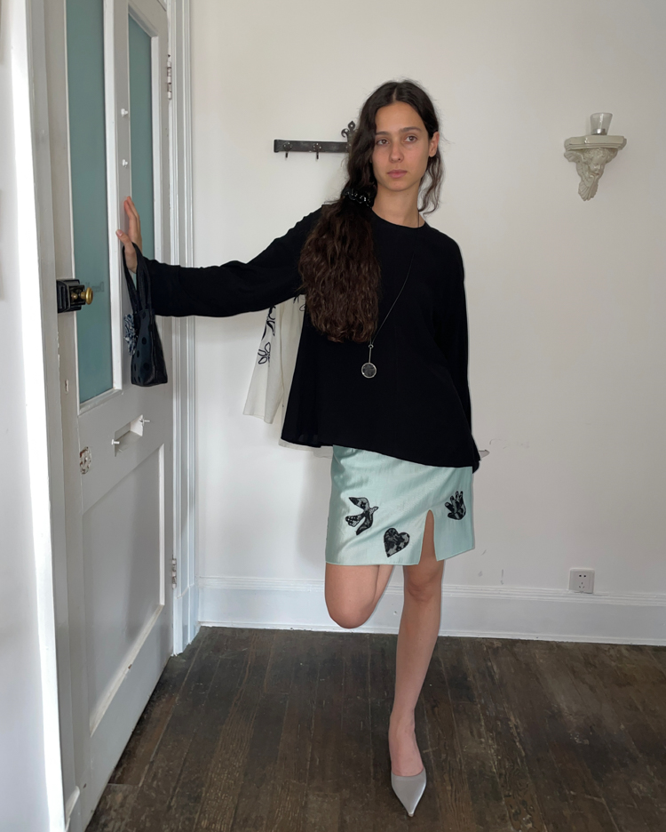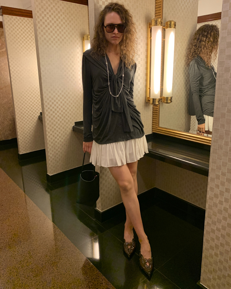 Two-way wear simple round neck backless blouse top ruffle skirt set