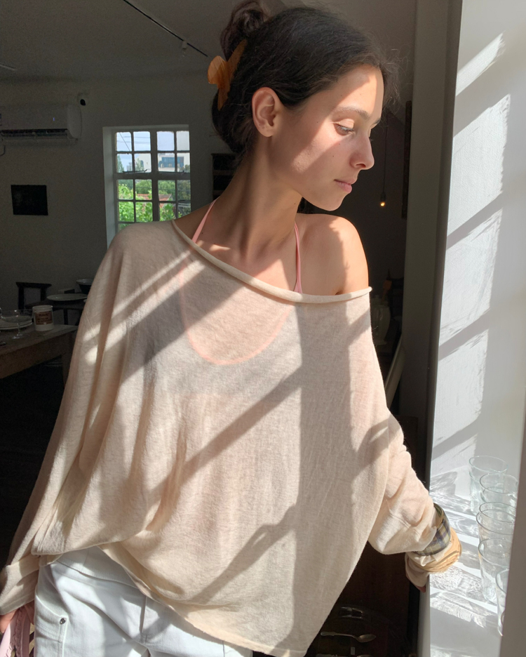 Lightweight Wool Swing Collar Sunscreen Long Sleeve Top