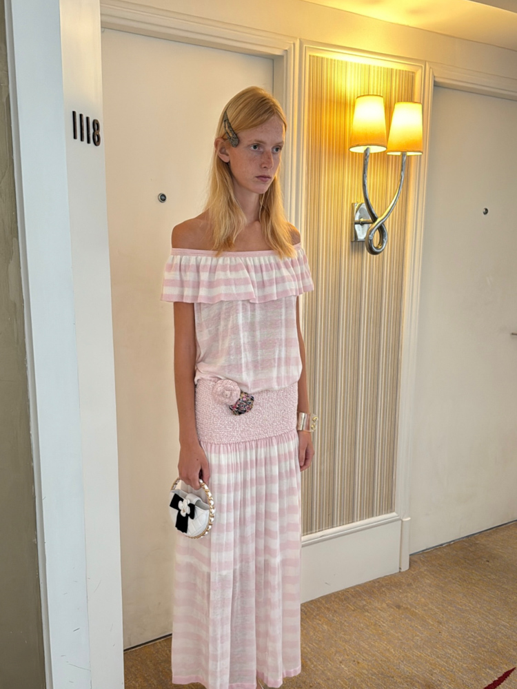 Mulberry silk cotton wool blended lotus leaf striped knitted dress / top
