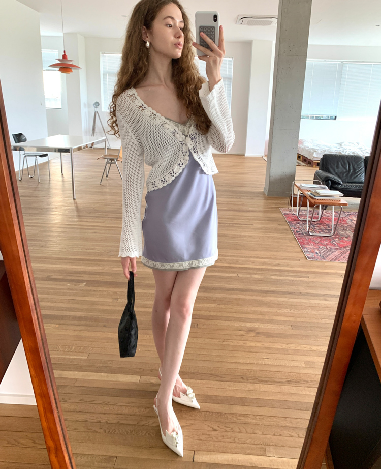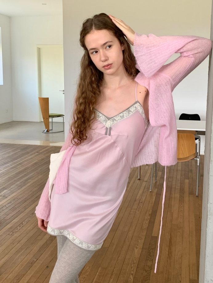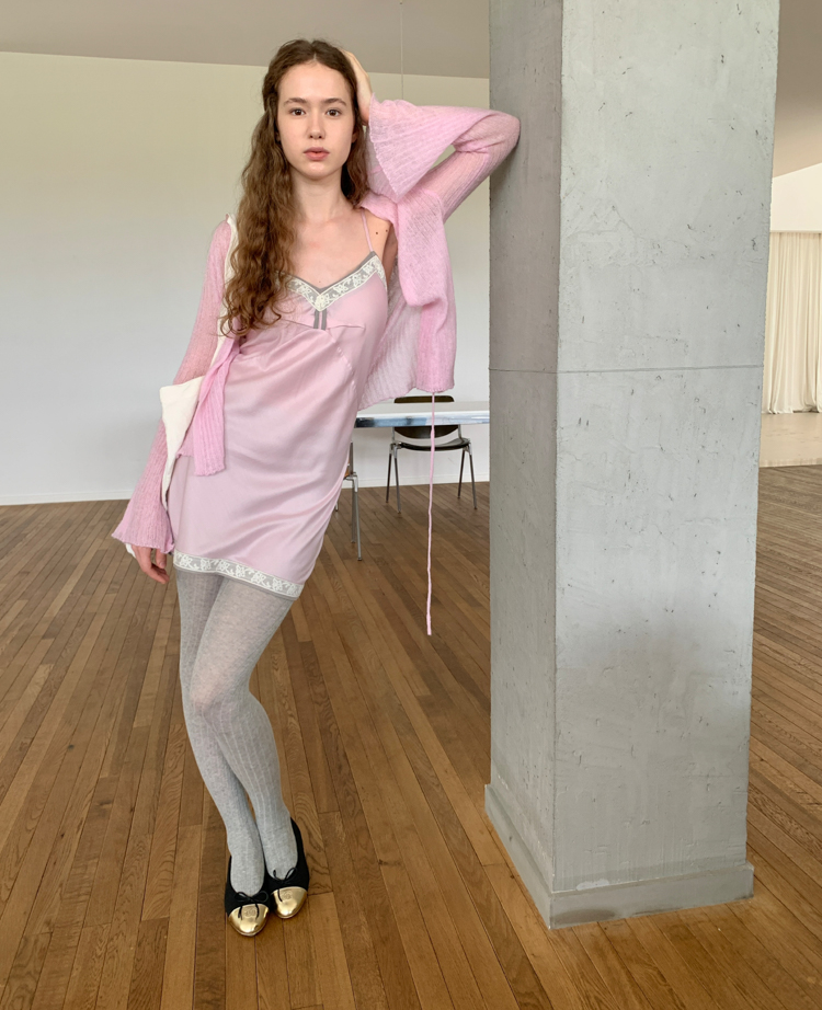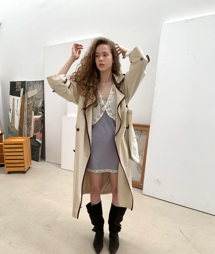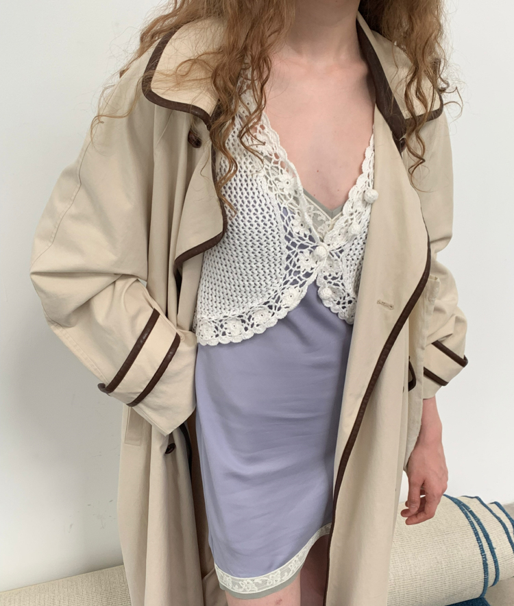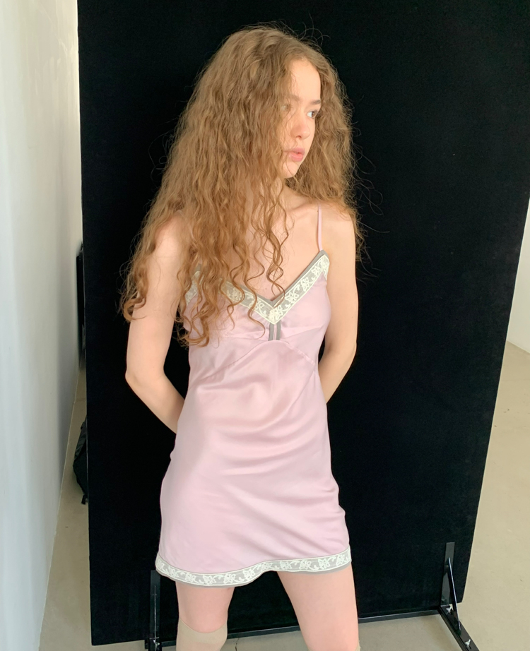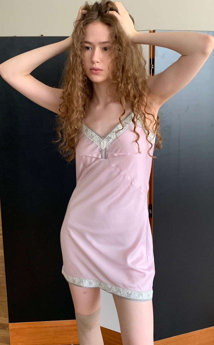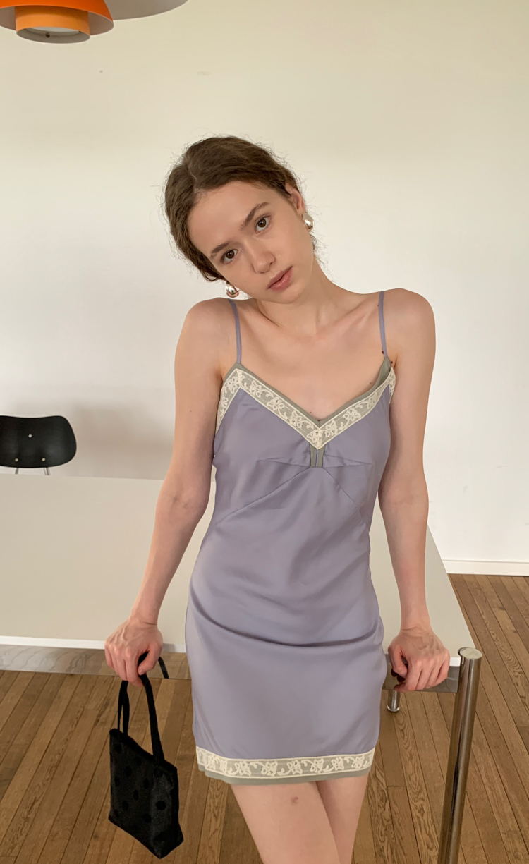 Lyocell Linen Blend Lace Contrast Color French Slip Dress