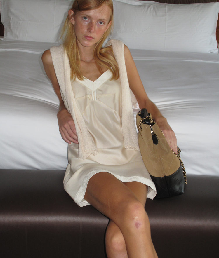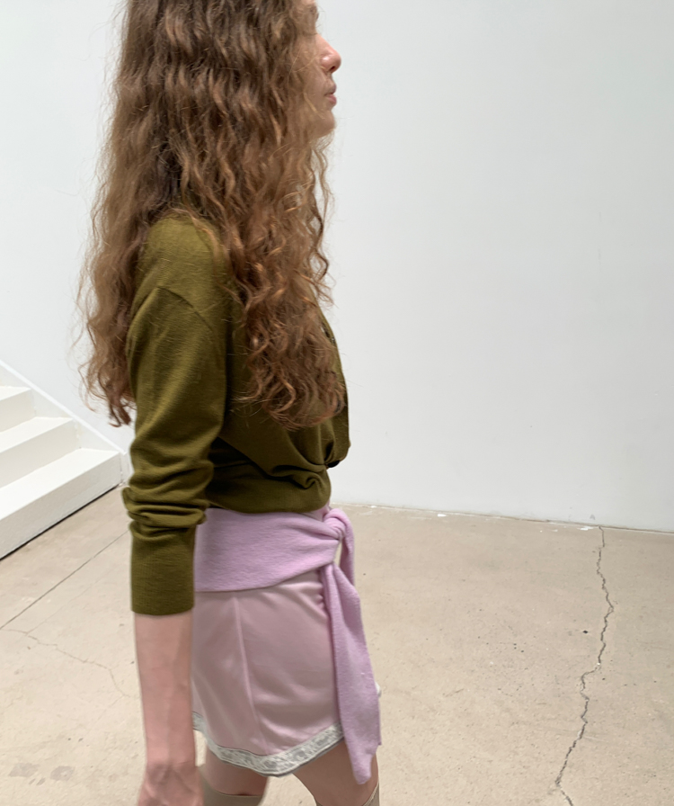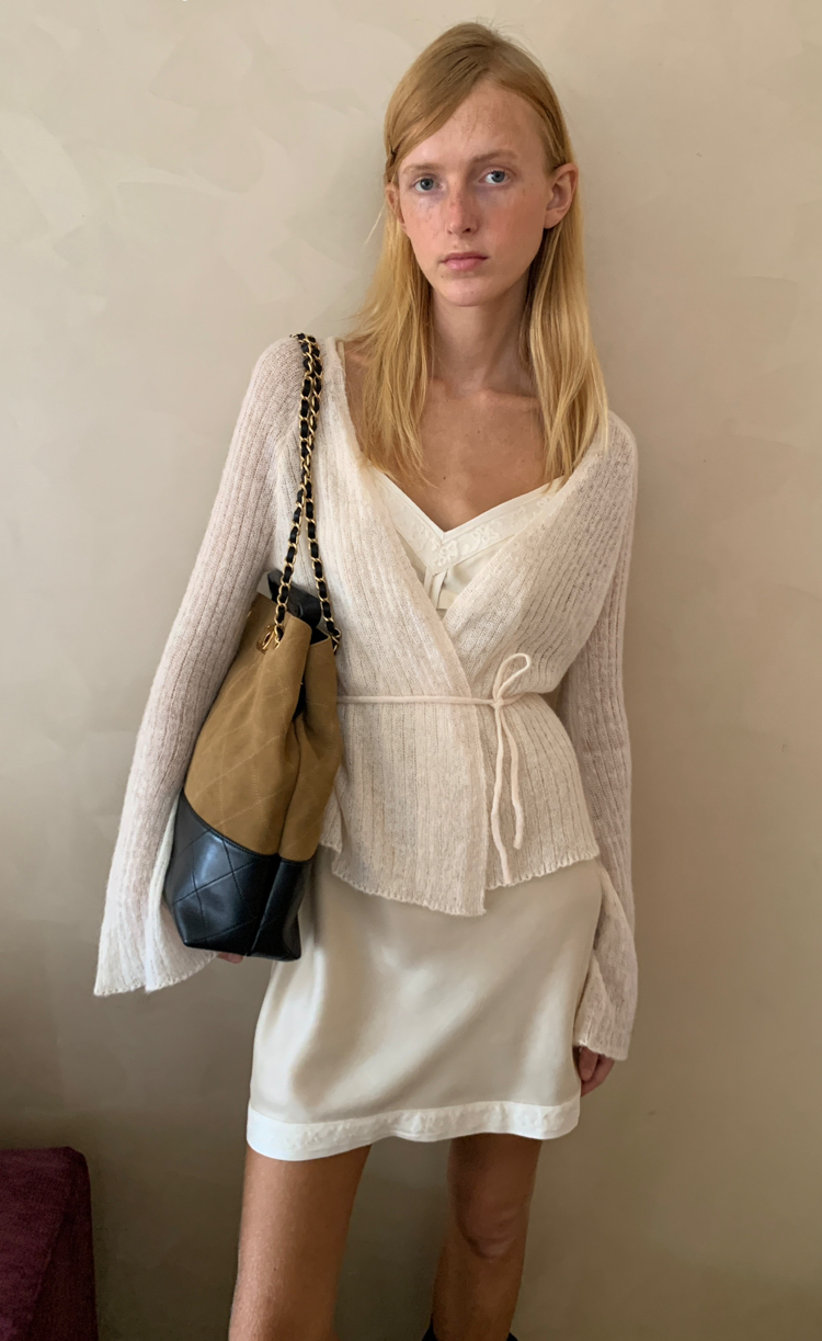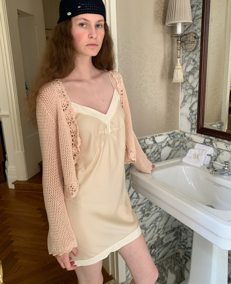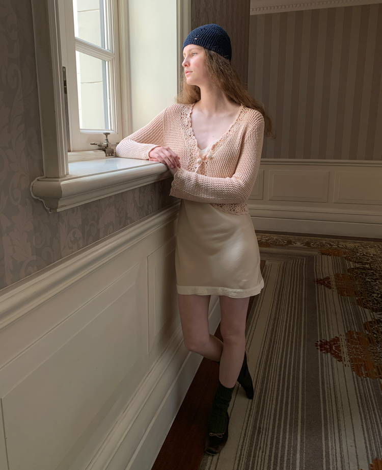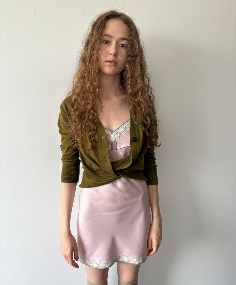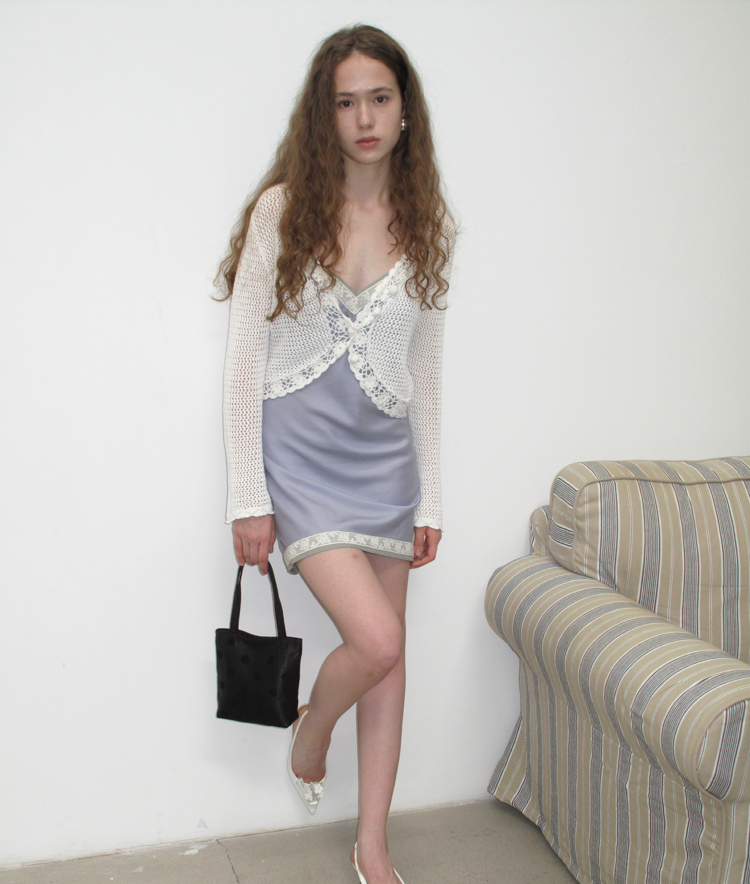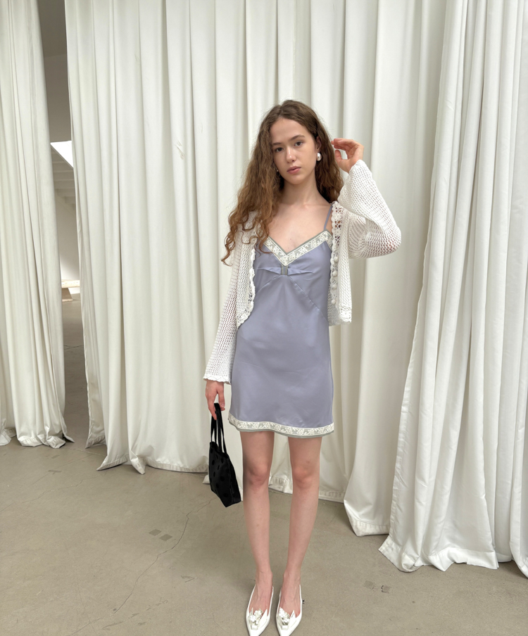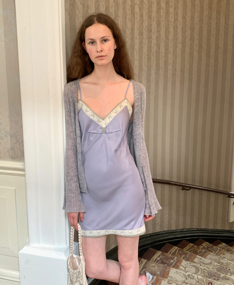 Lyocell Linen Blend Lace Contrast Color French Slip Dress