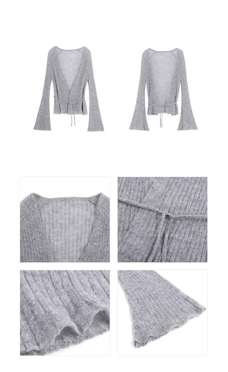 Cotton Wool Blended Airy Striped Retro Flared Lace-Up Slimming Cardigan