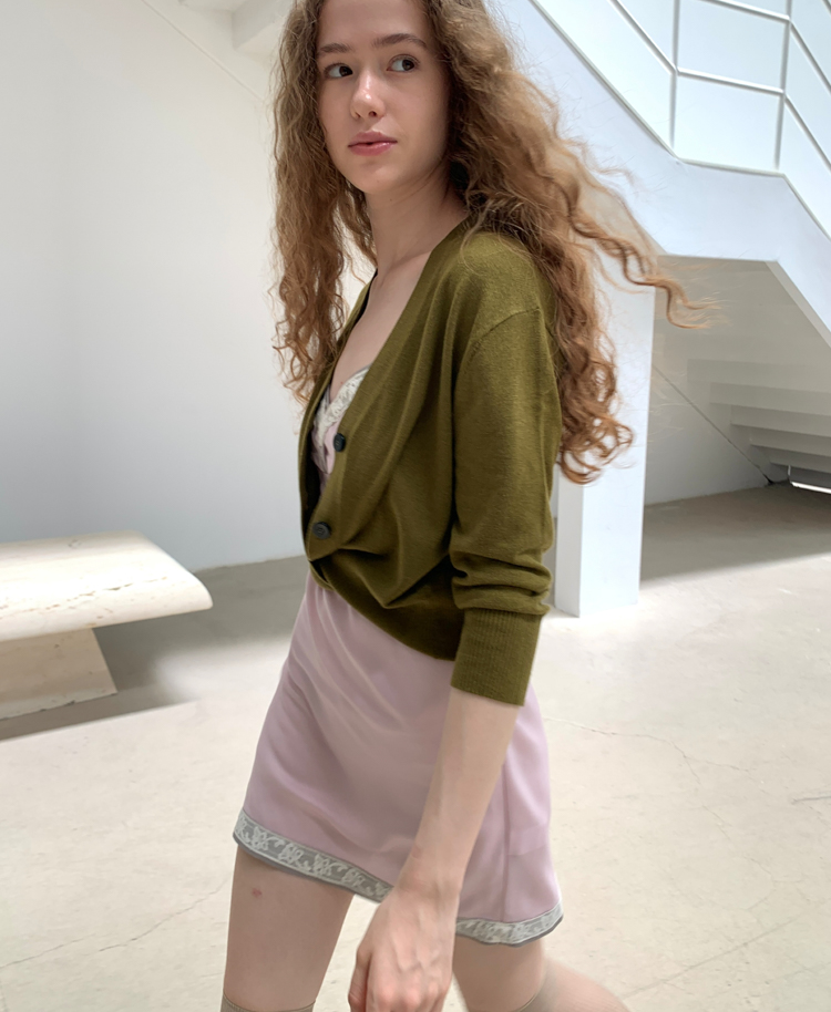Wool Blend Multiple Cross Twisted Mid-Sleeve Knitted Cardigan