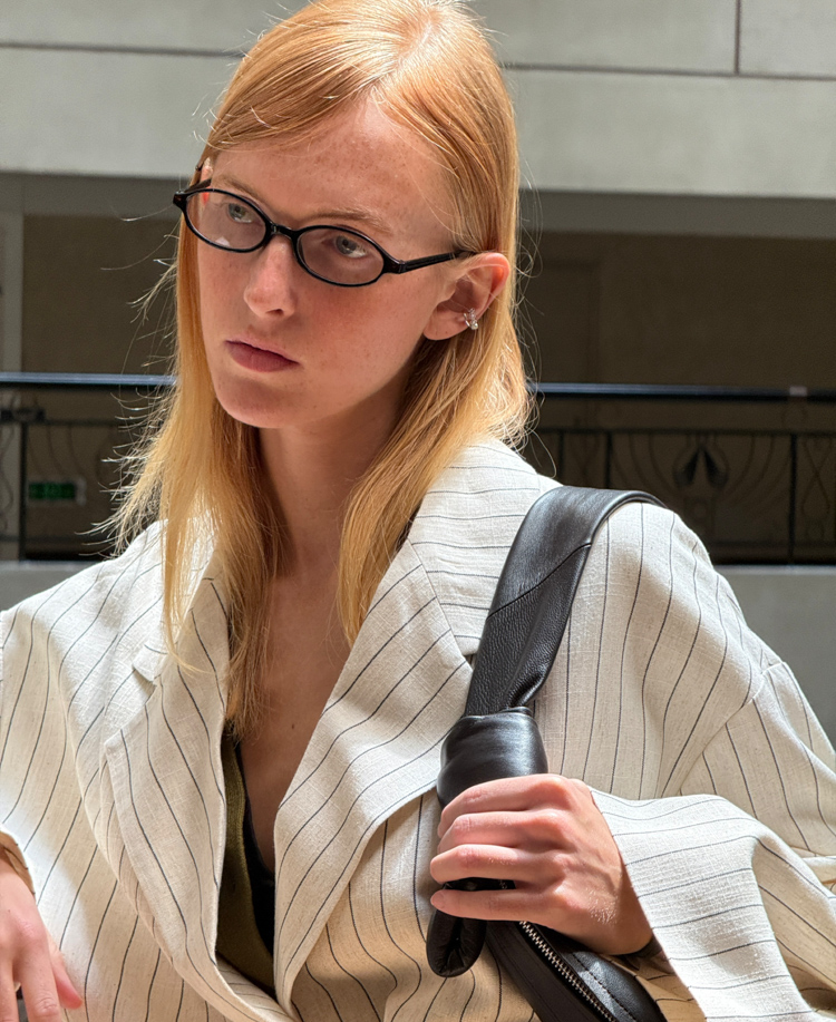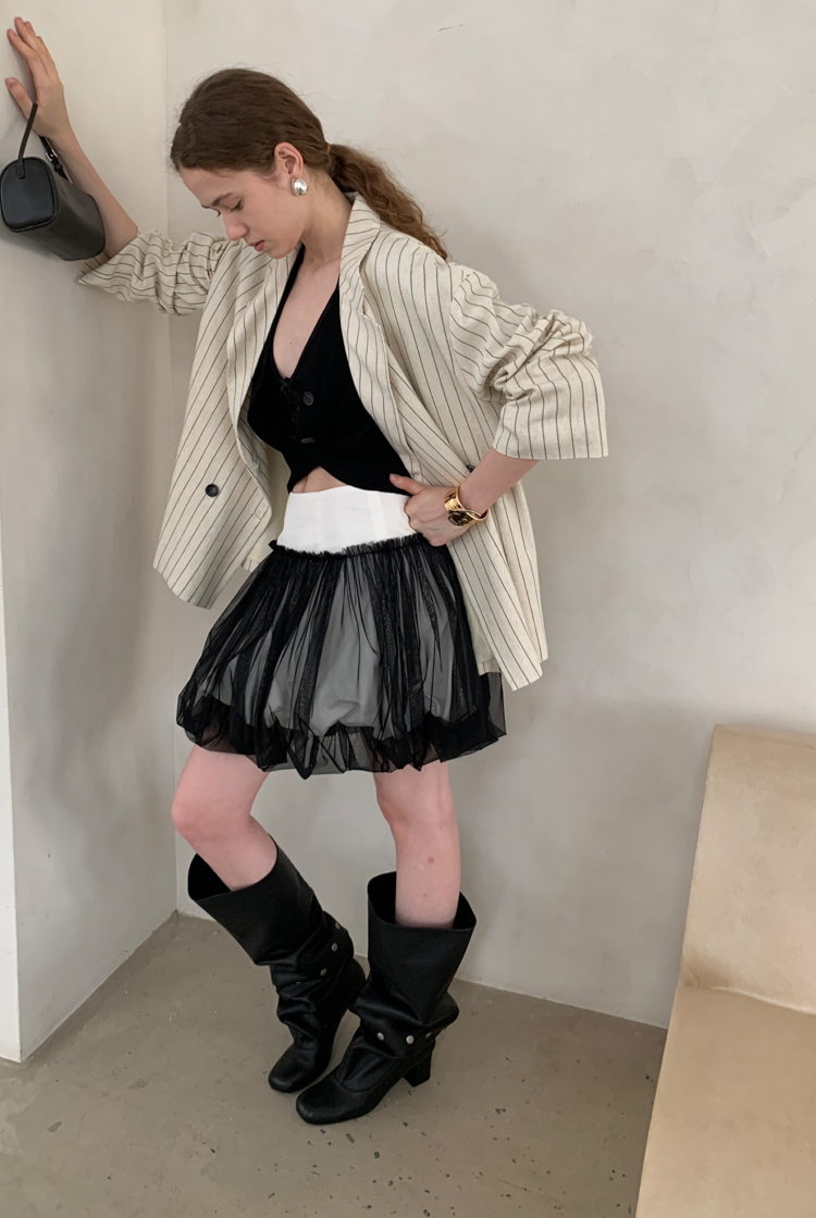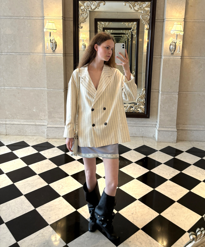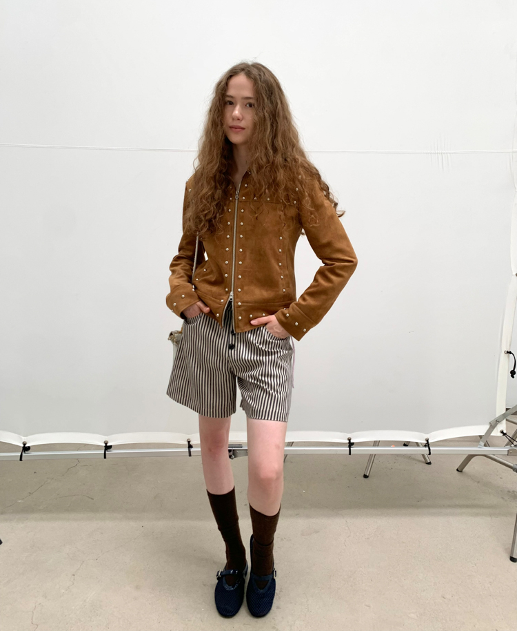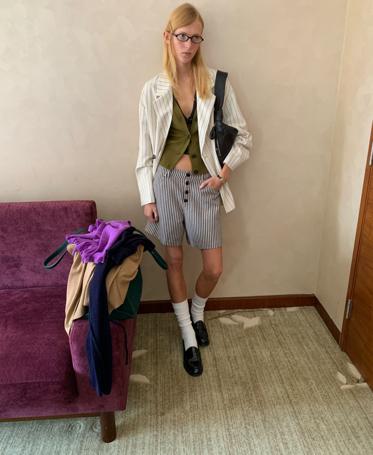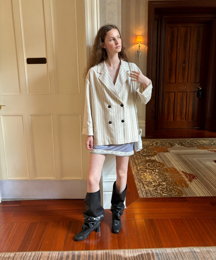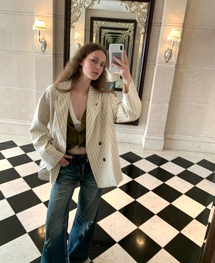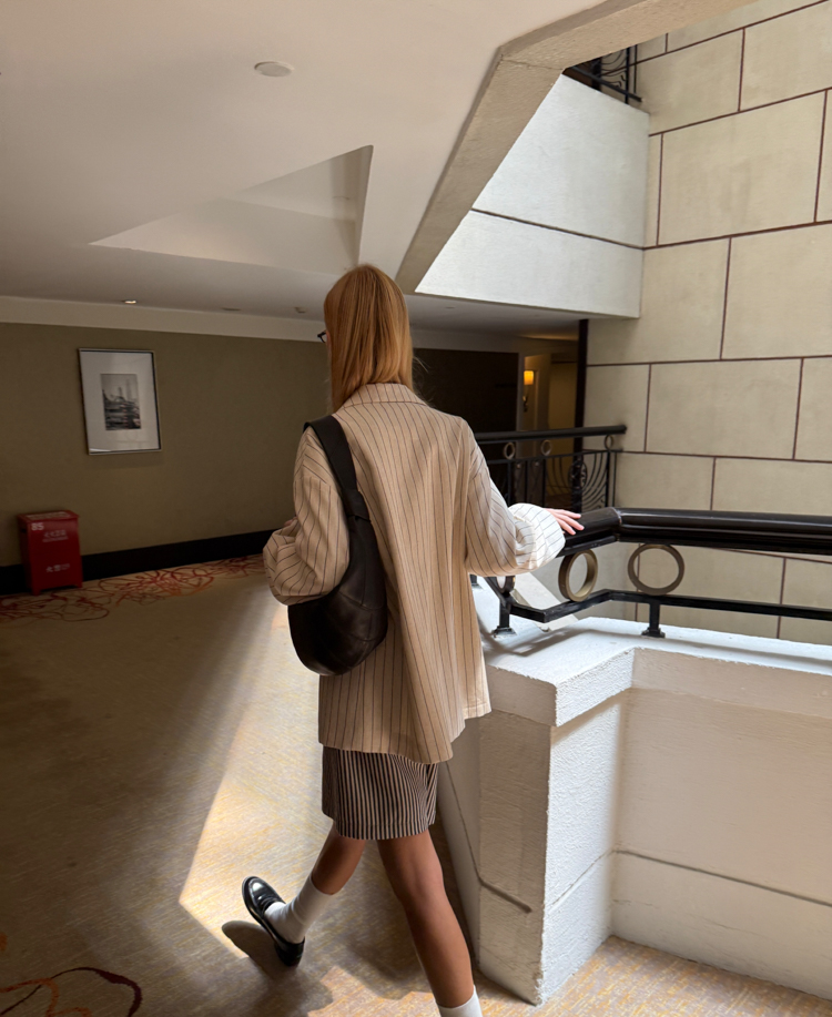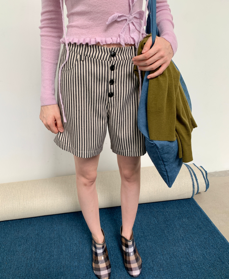 linen blend oversize double placket drop shoulder striped suit & shorts