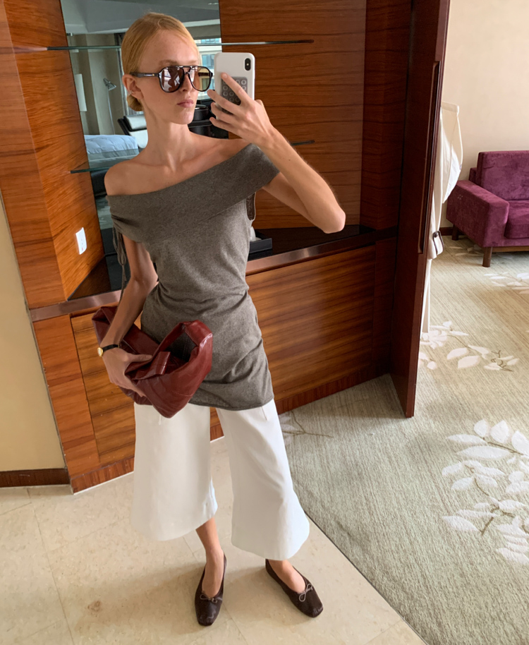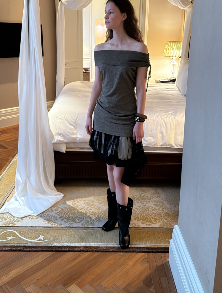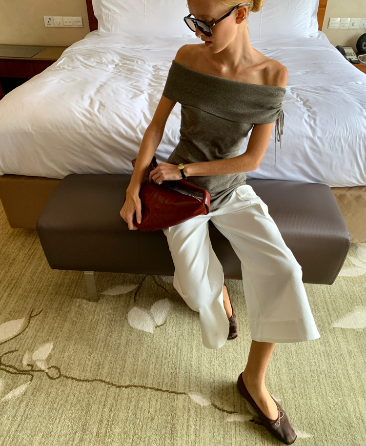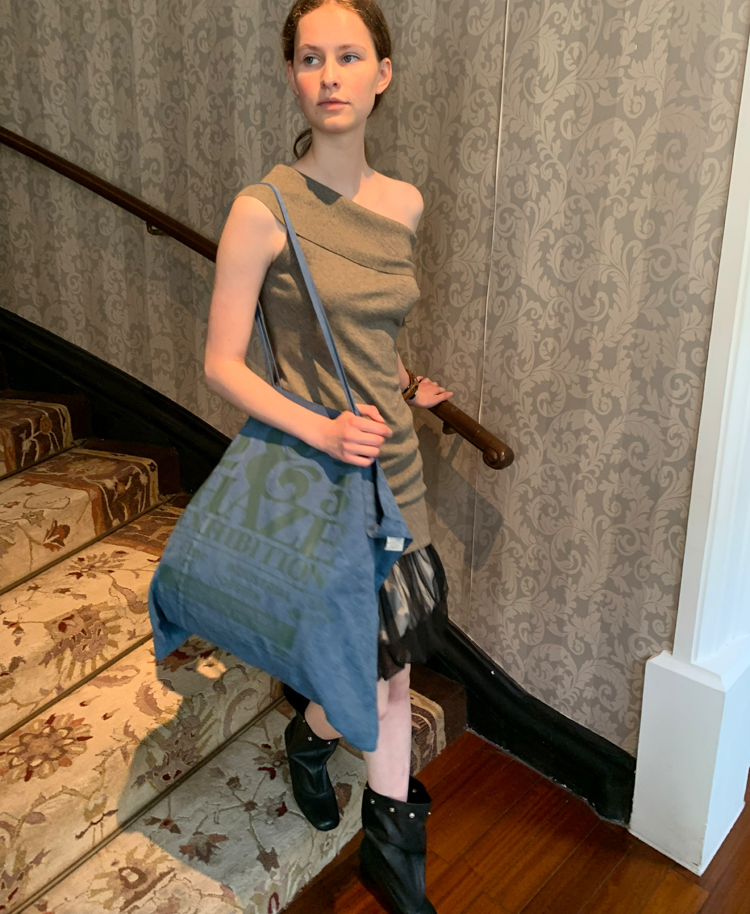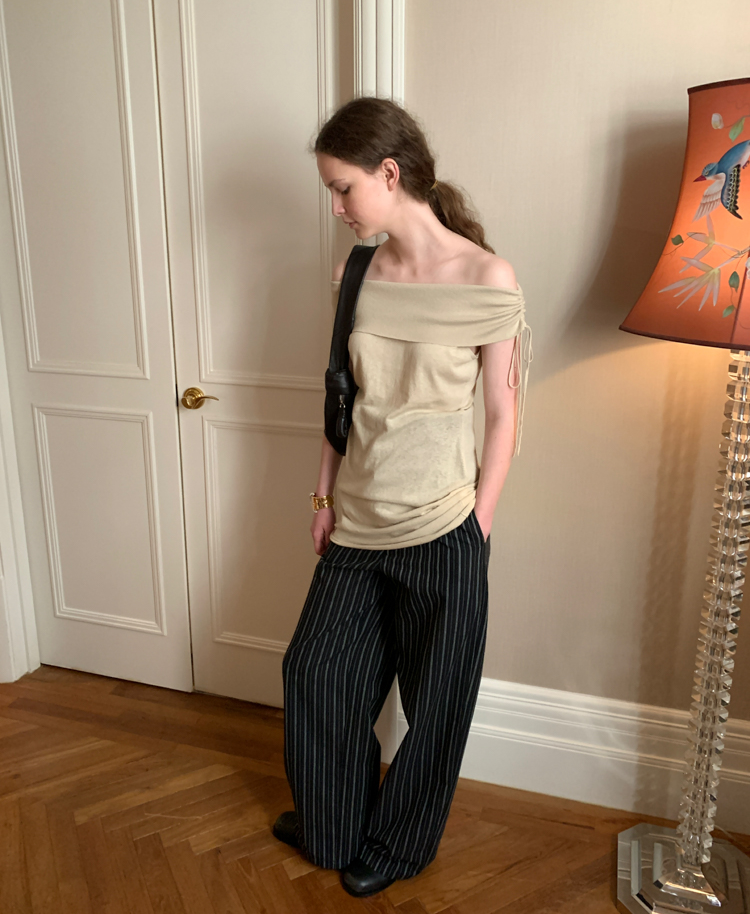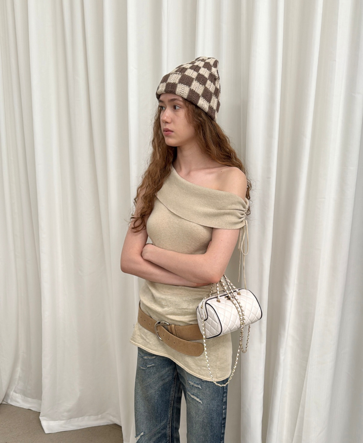 linen blend one shoulder lapel drawstring multi-wear knitted top