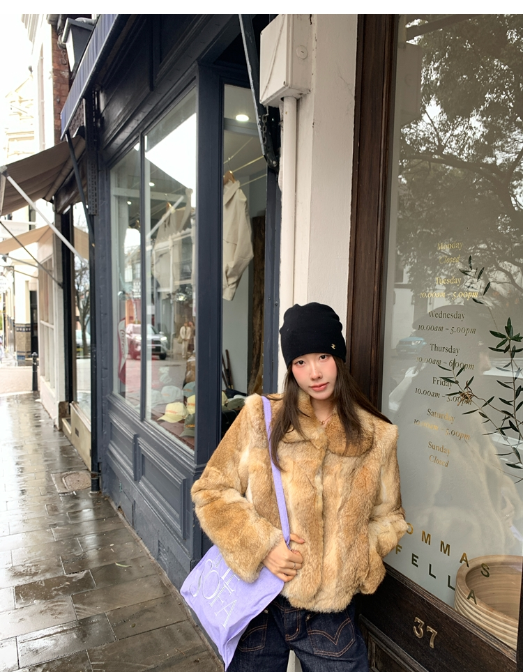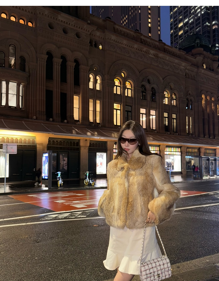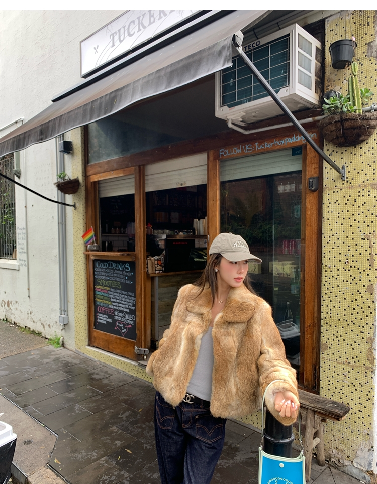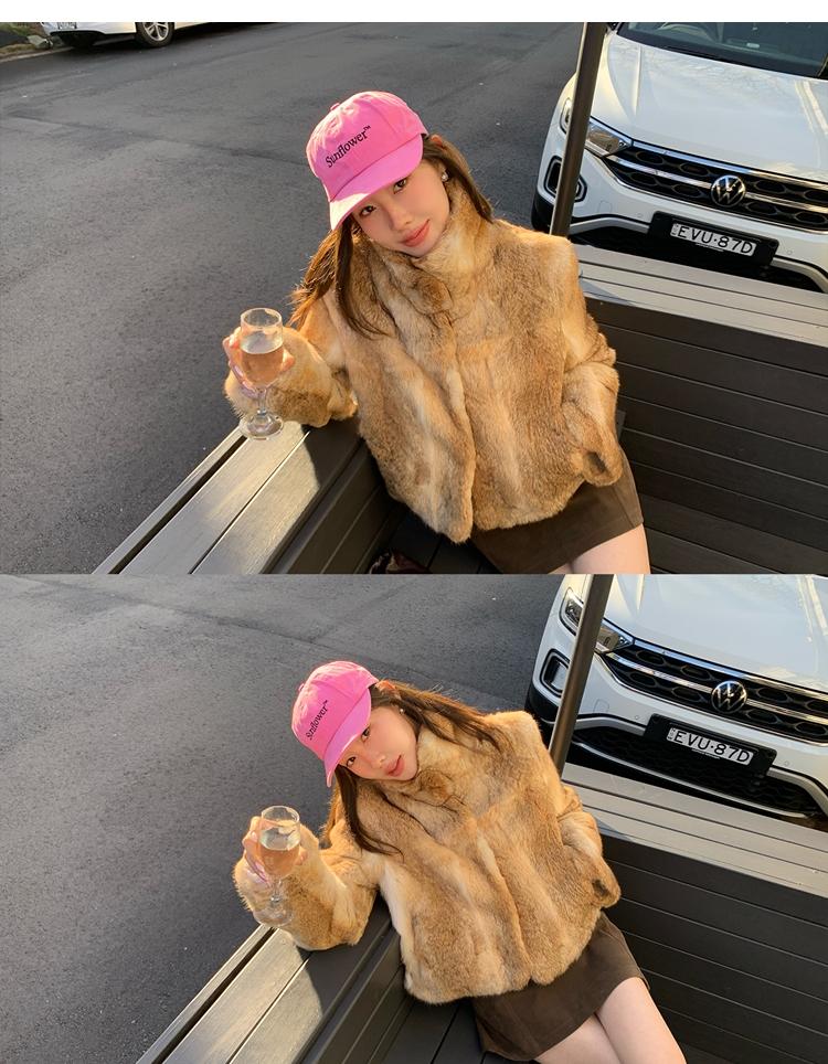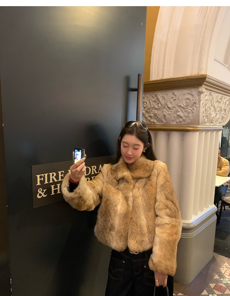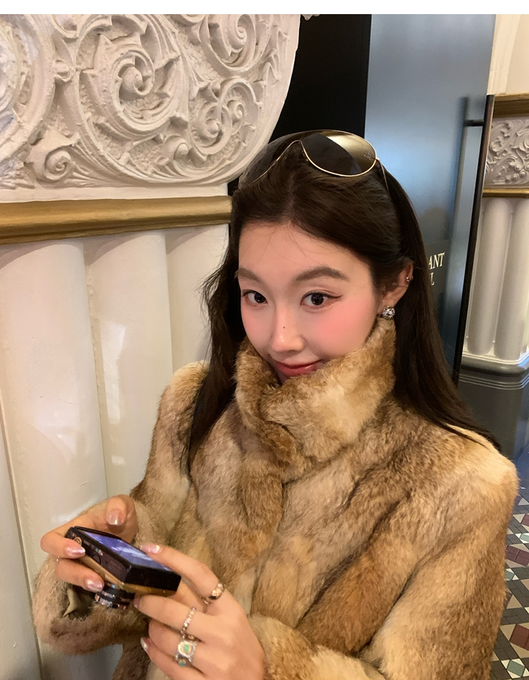 dyed rabbit doll collar fur coat