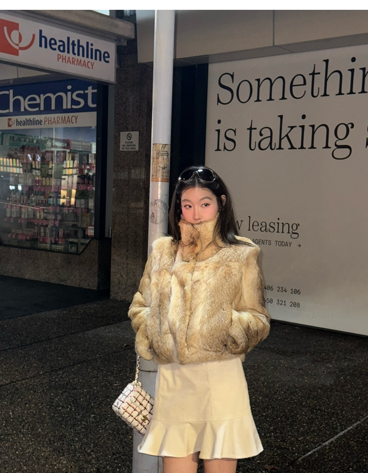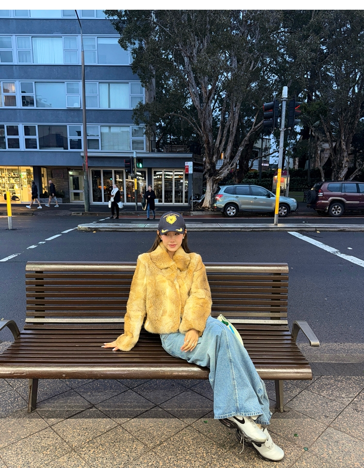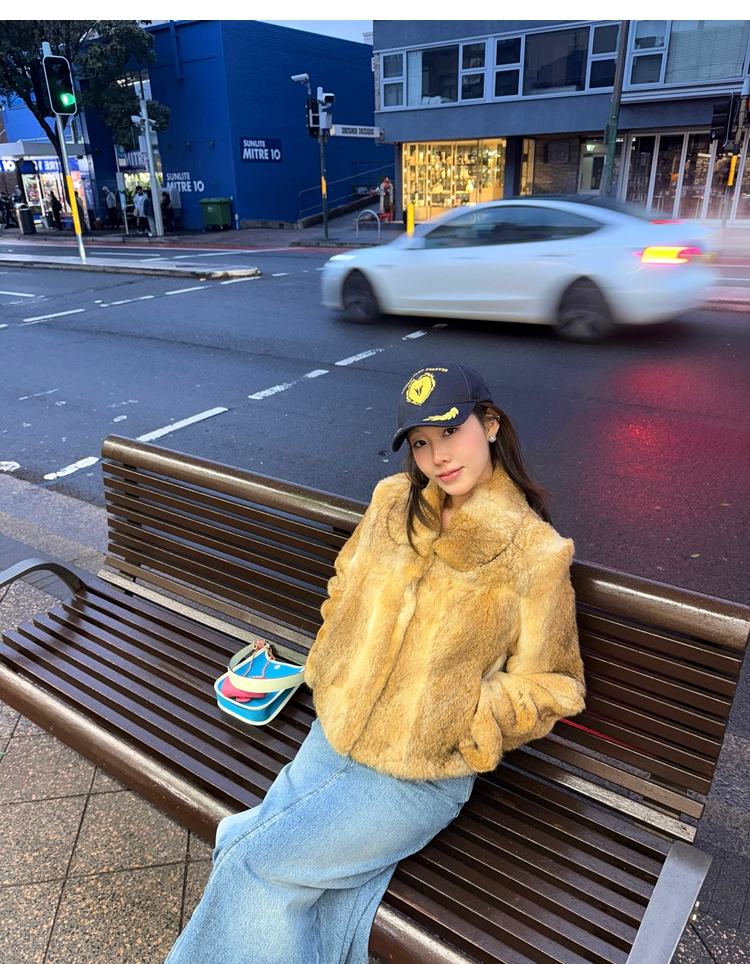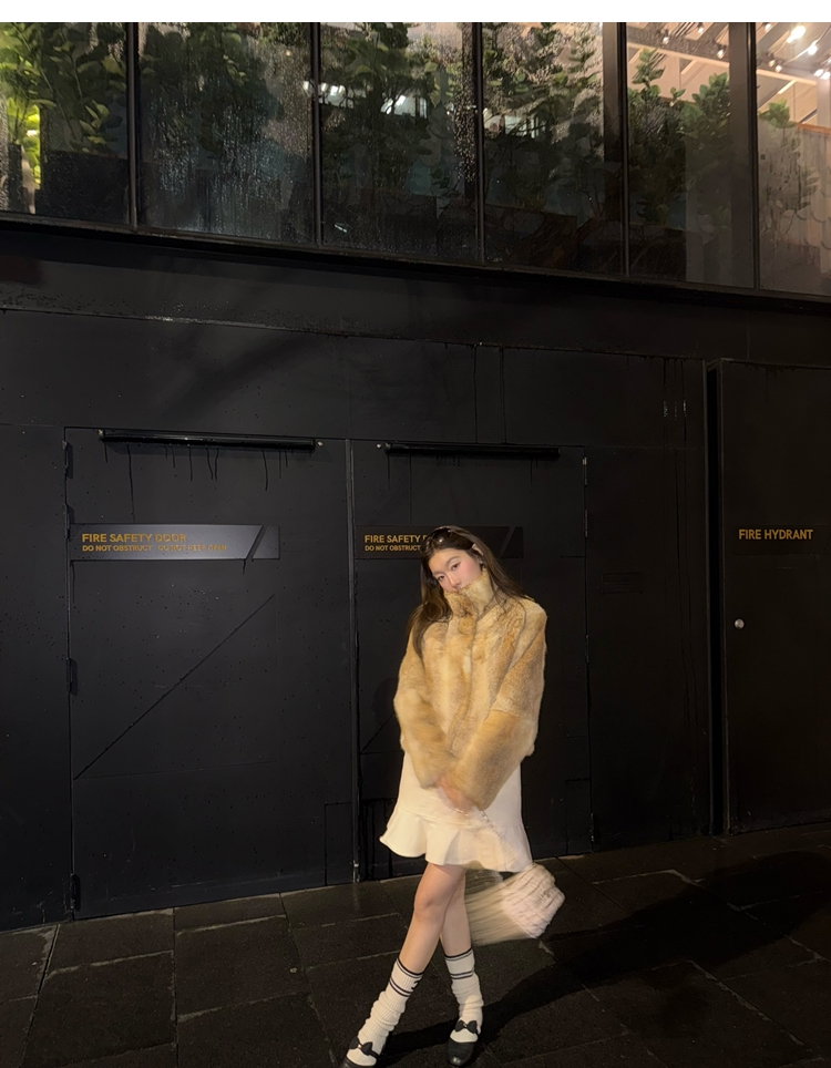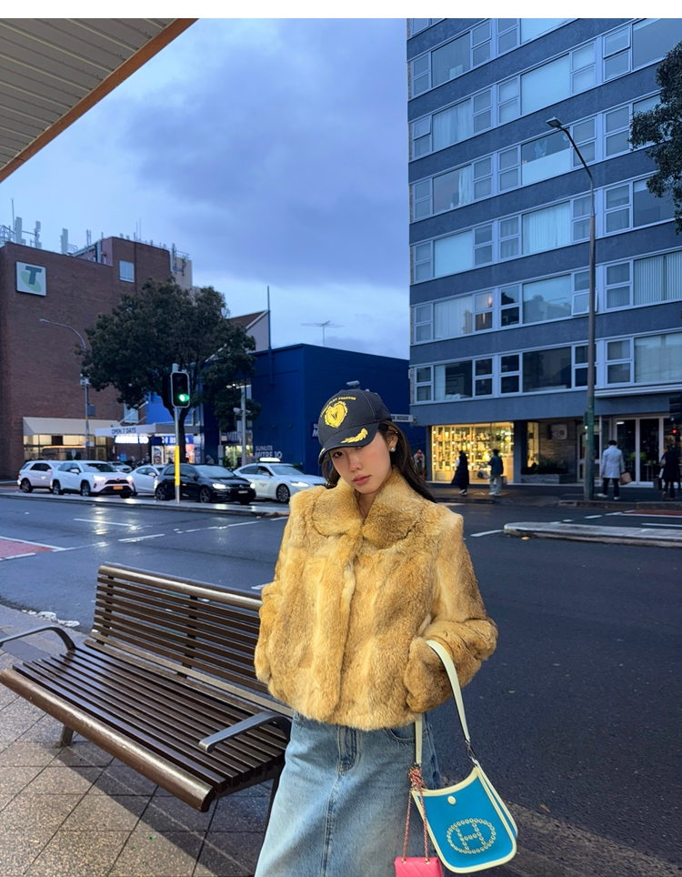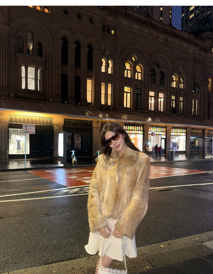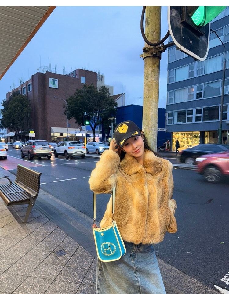 dyed rabbit doll collar fur coat