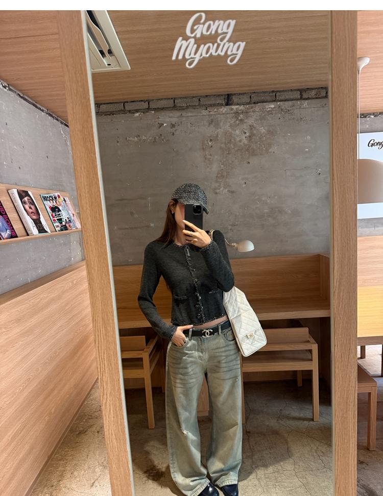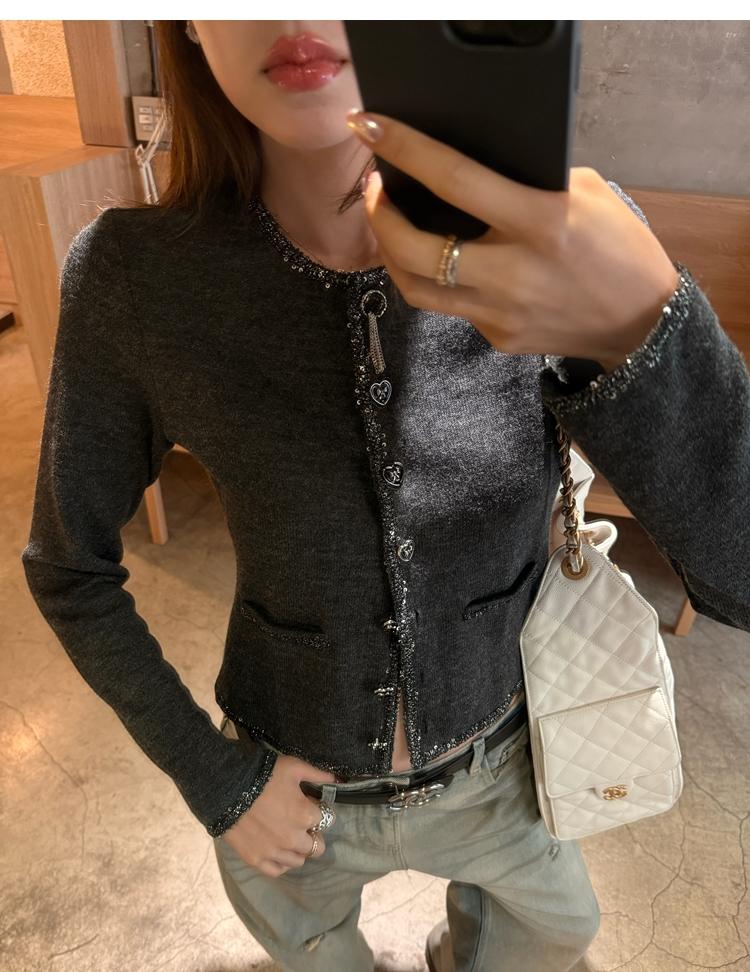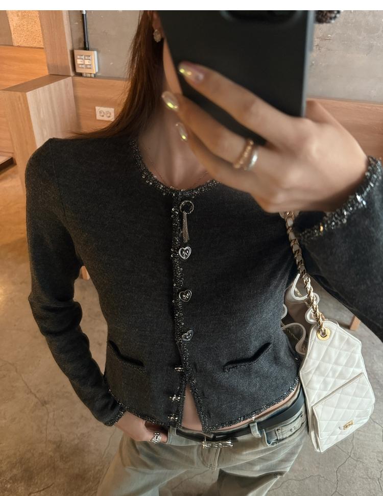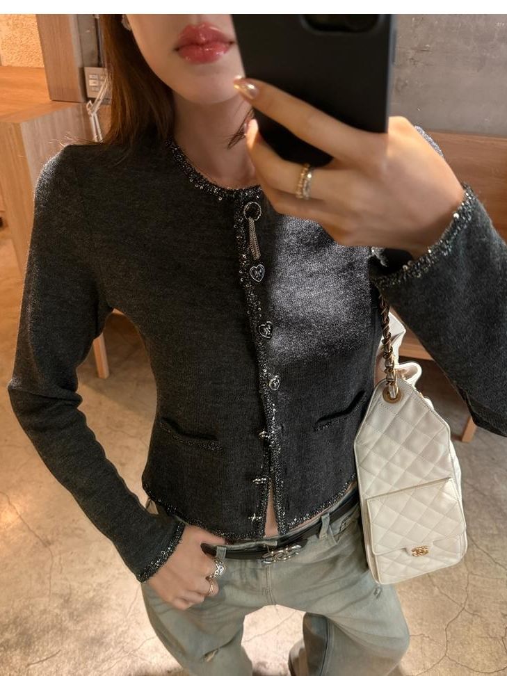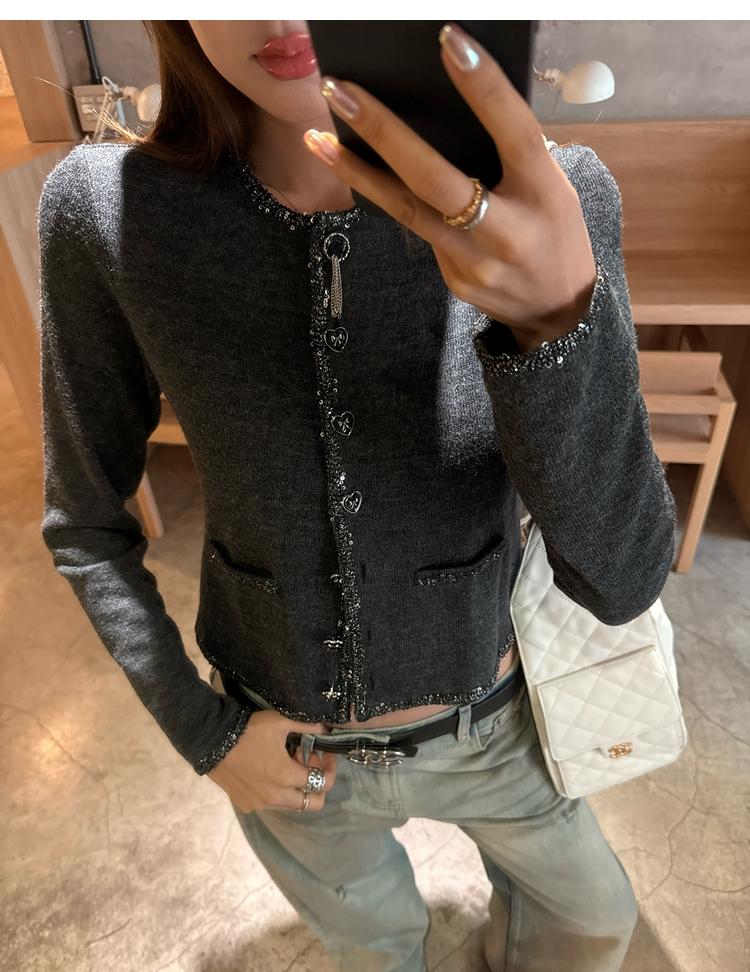Paris Thousand Gold French Sequin Ribbon Knitted Cardigan