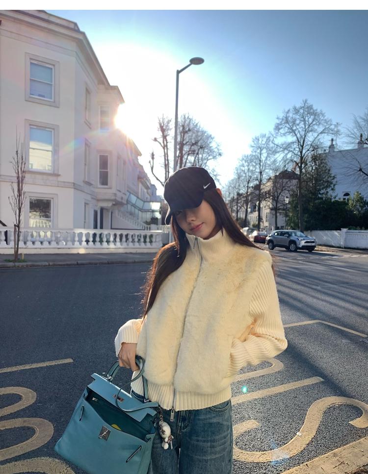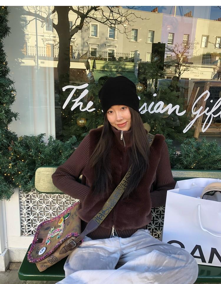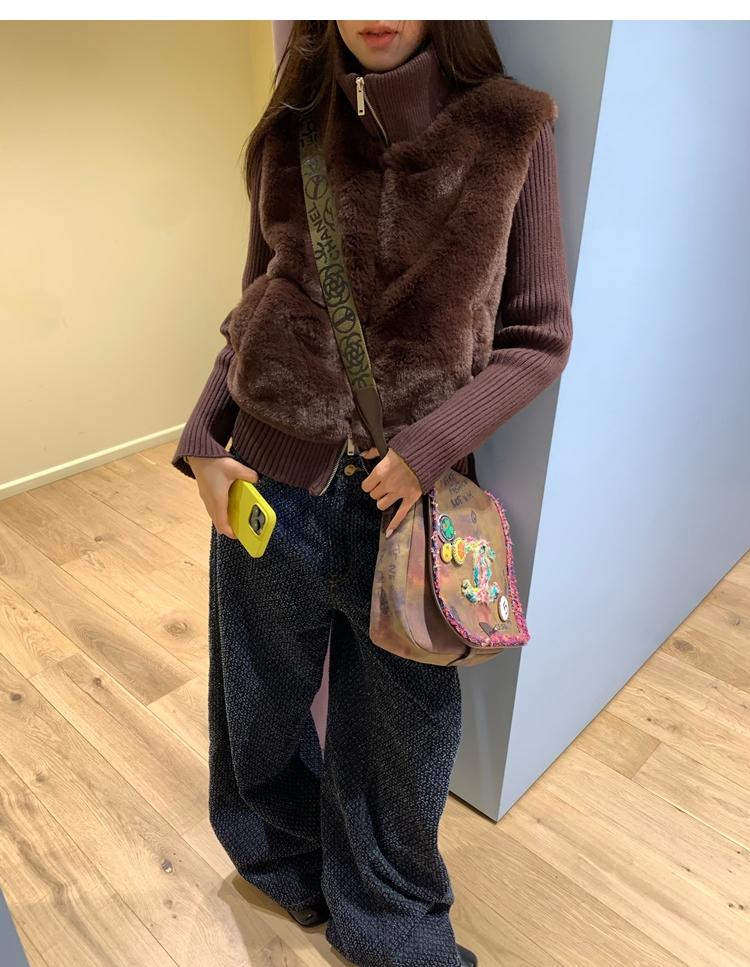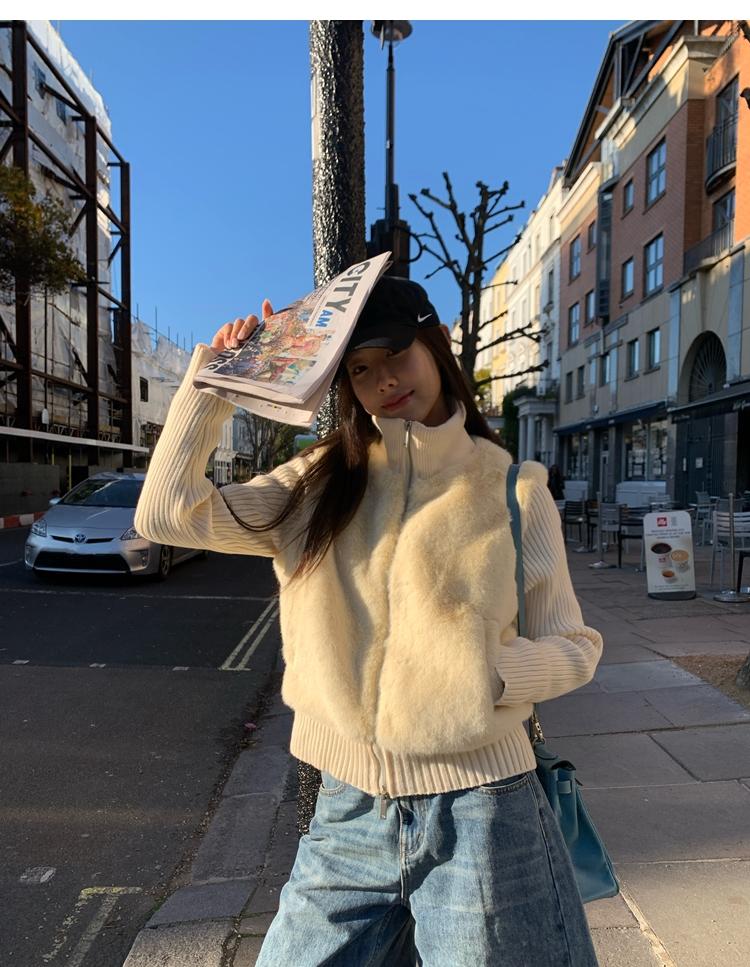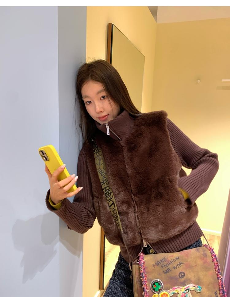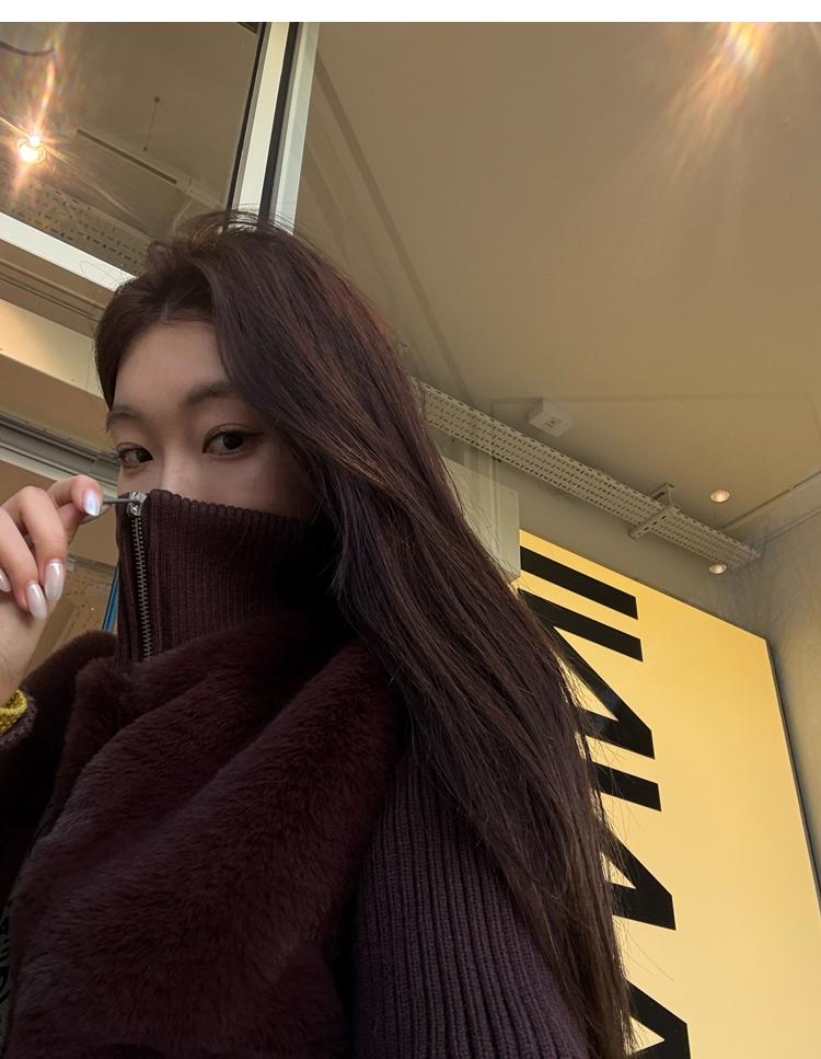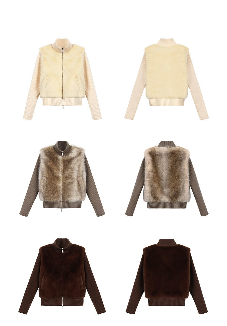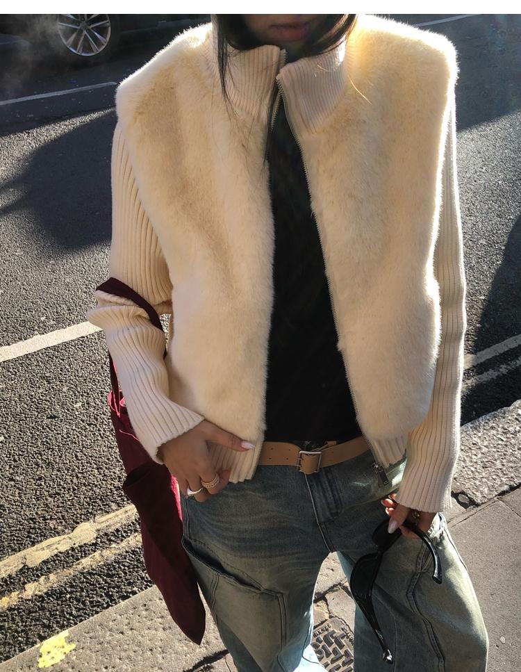 Shibuya Love Retro Knitted Spliced Ring Fur Fake Two-Piece Coat