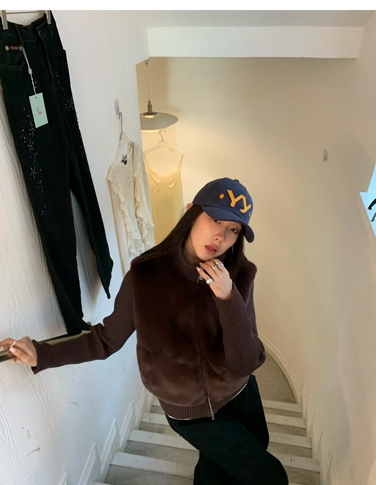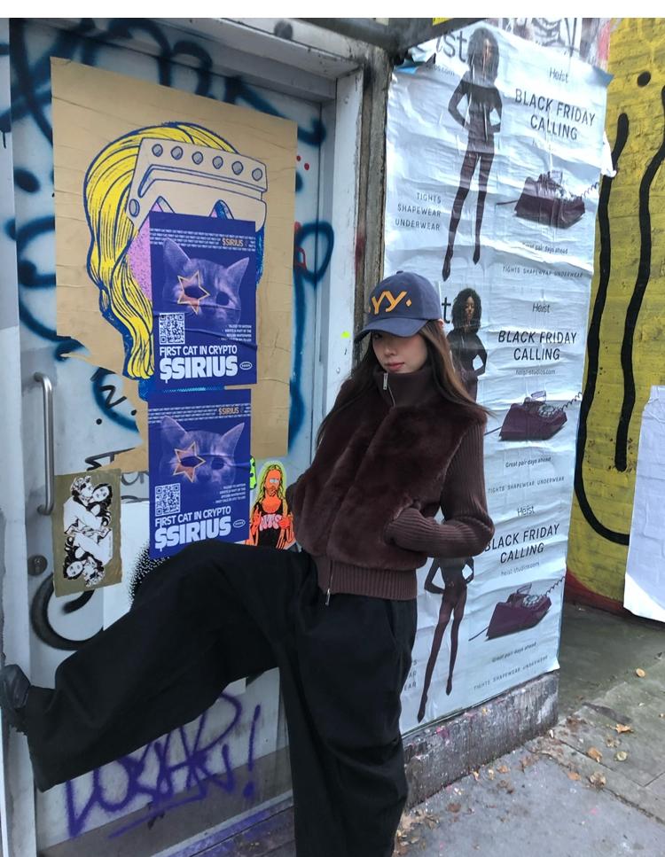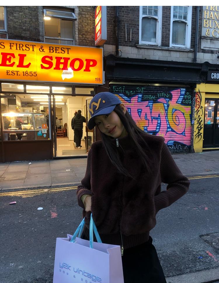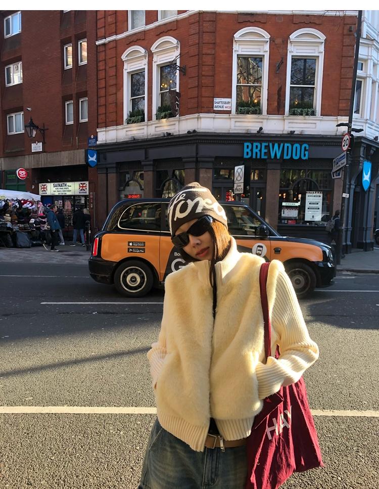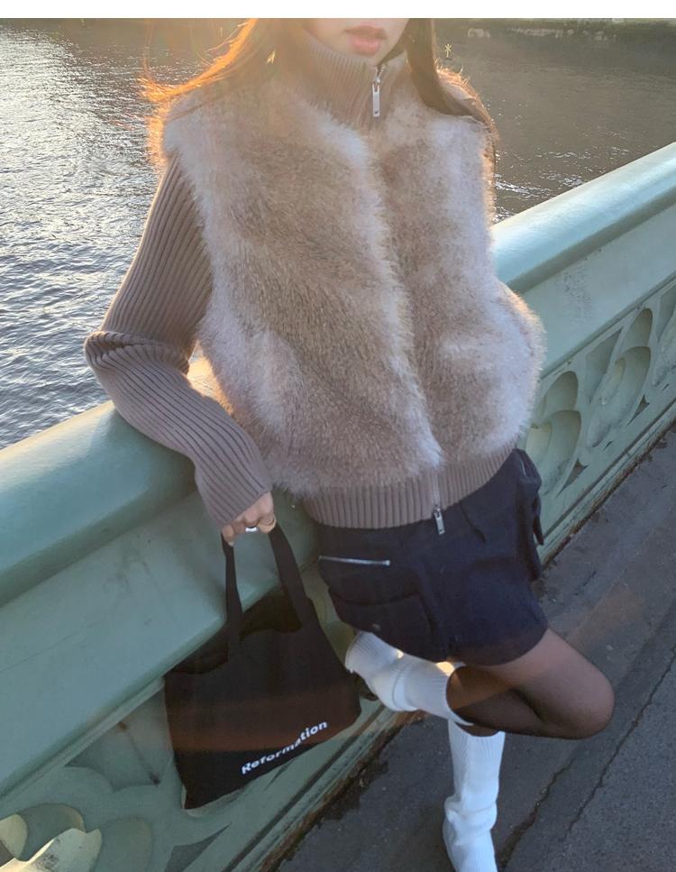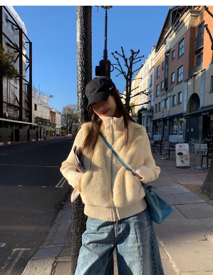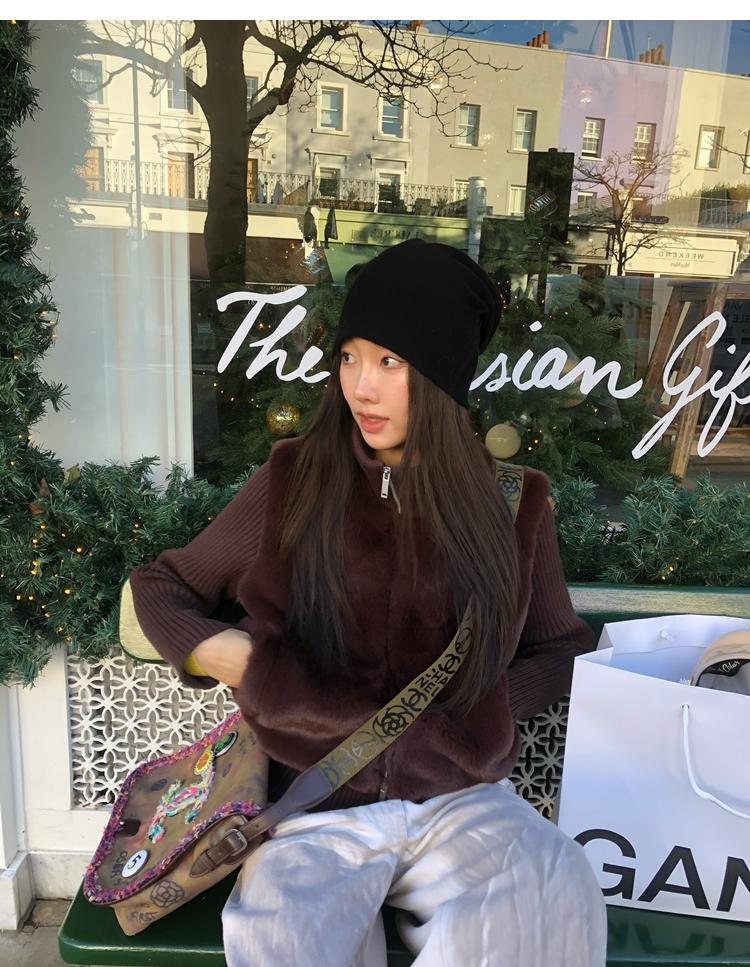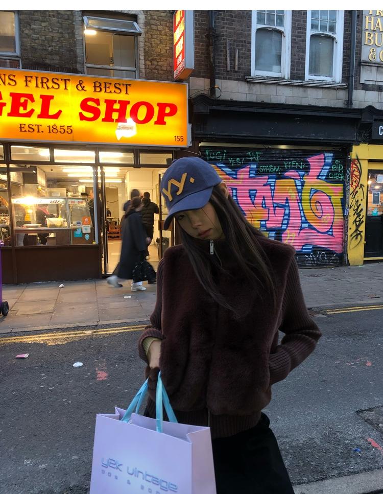 Shibuya Love Retro Knitted Spliced Ring Fur Fake Two-Piece Coat
