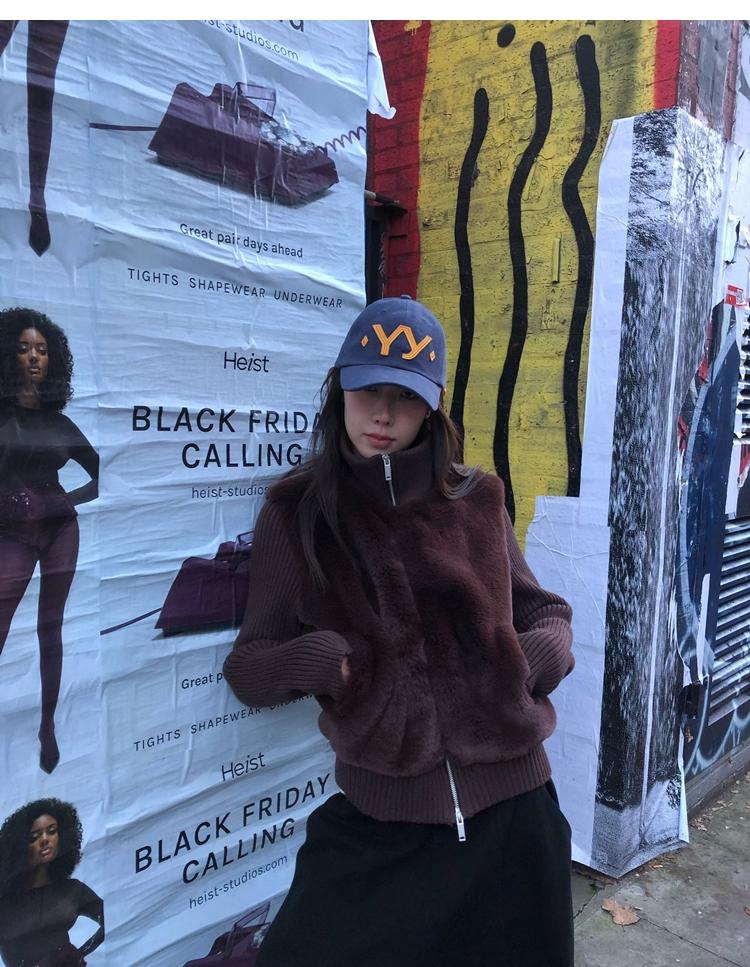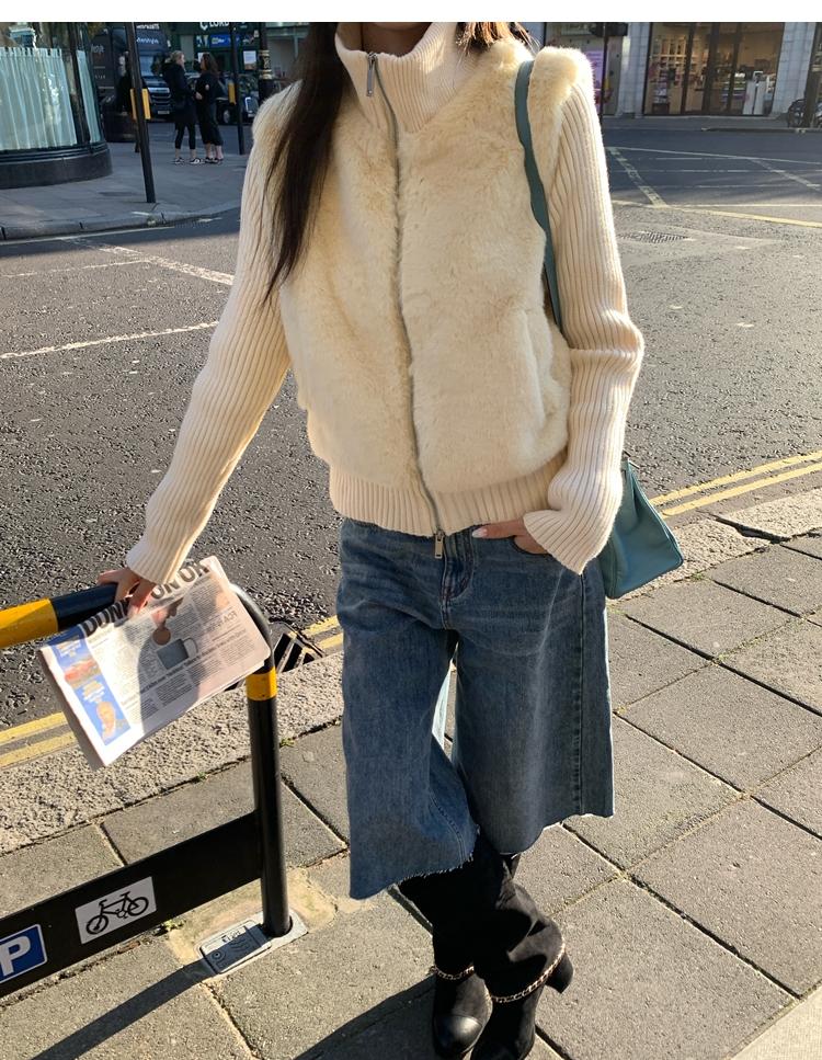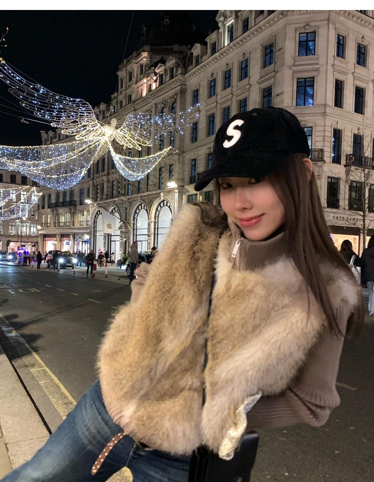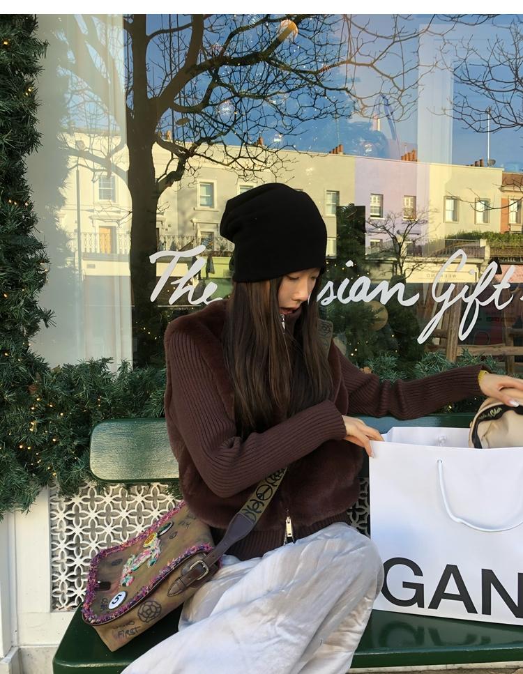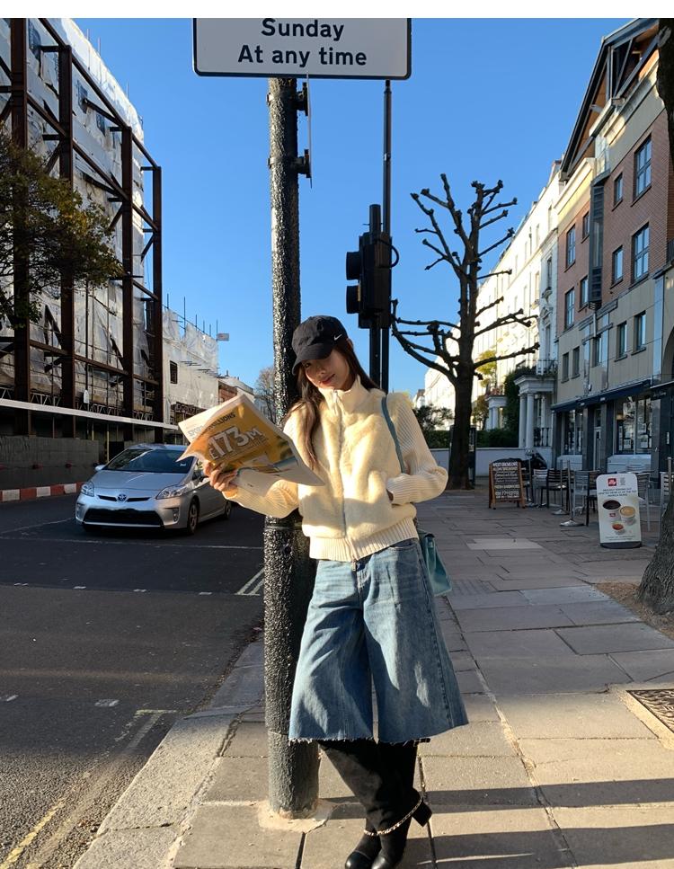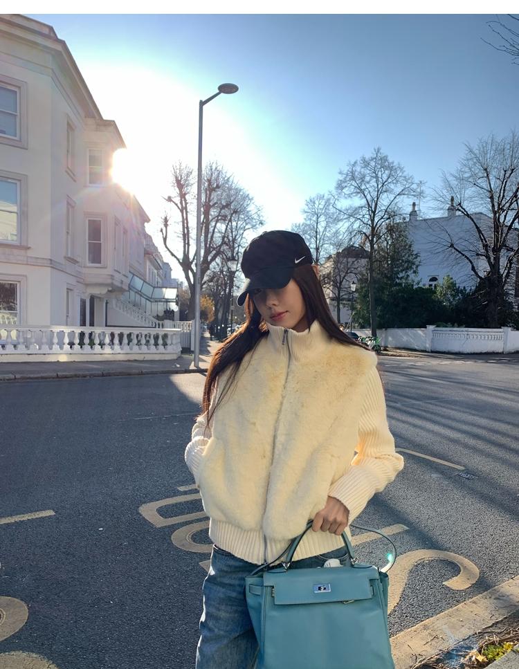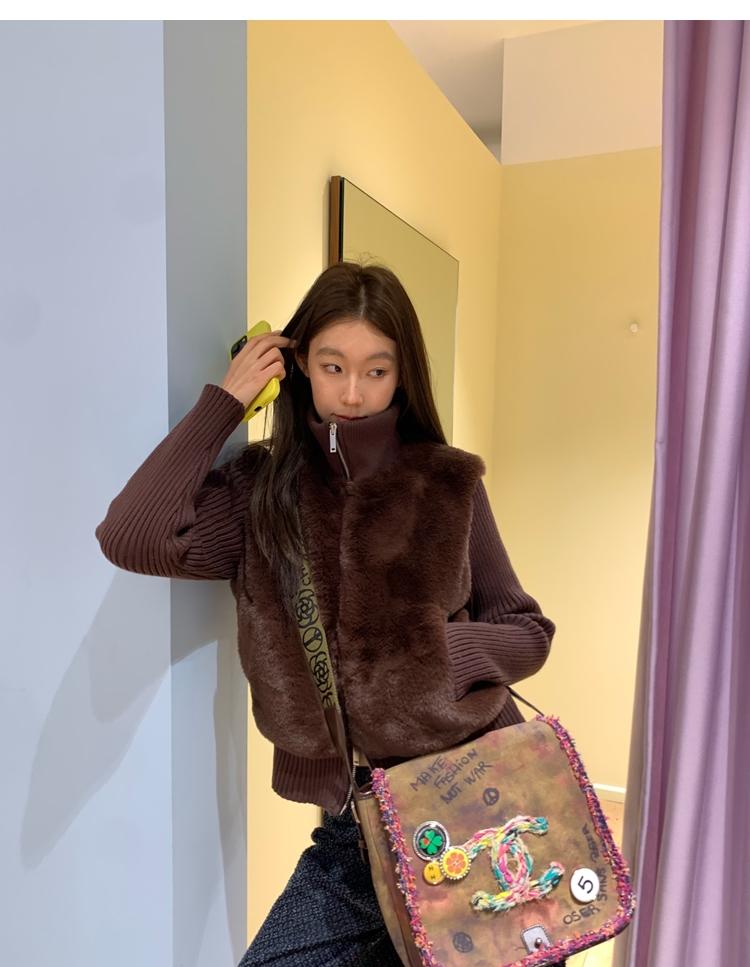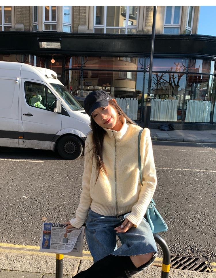Shibuya Love Retro Knitted Spliced Ring Fur Fake Two-Piece Coat