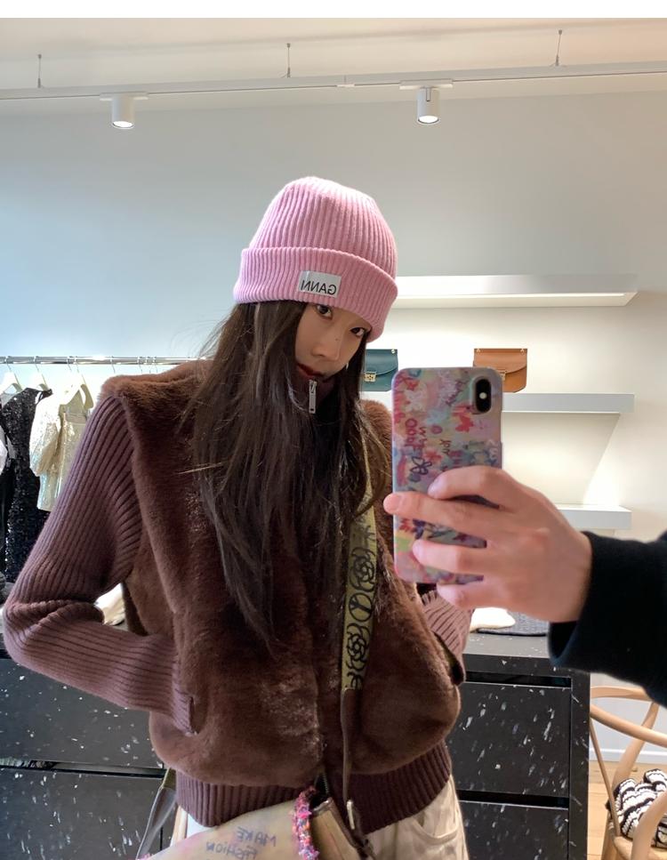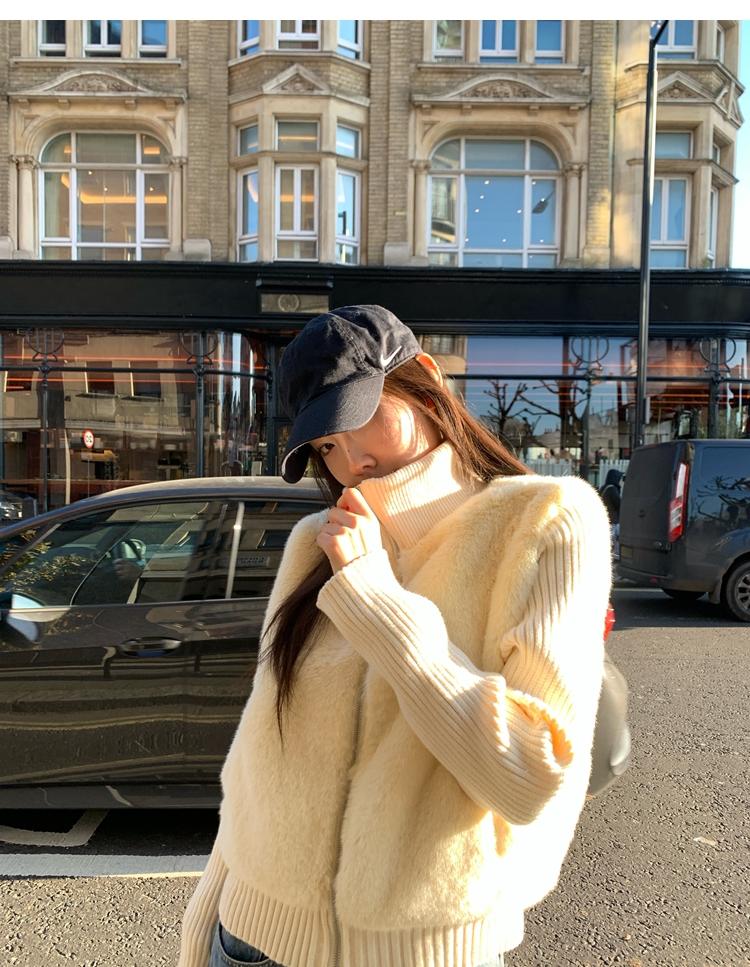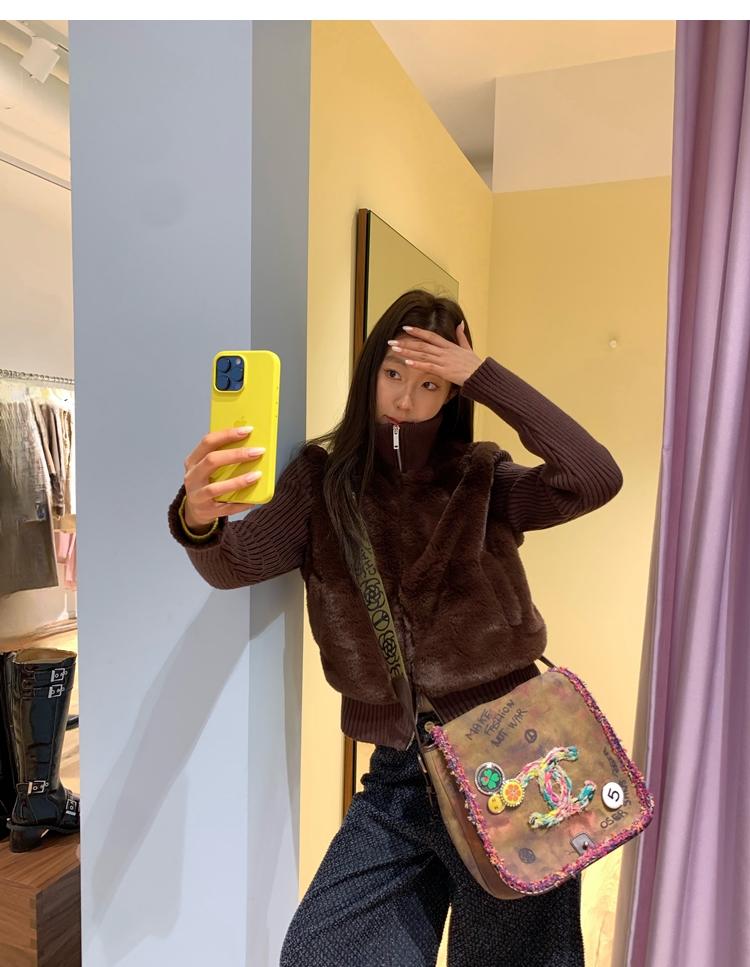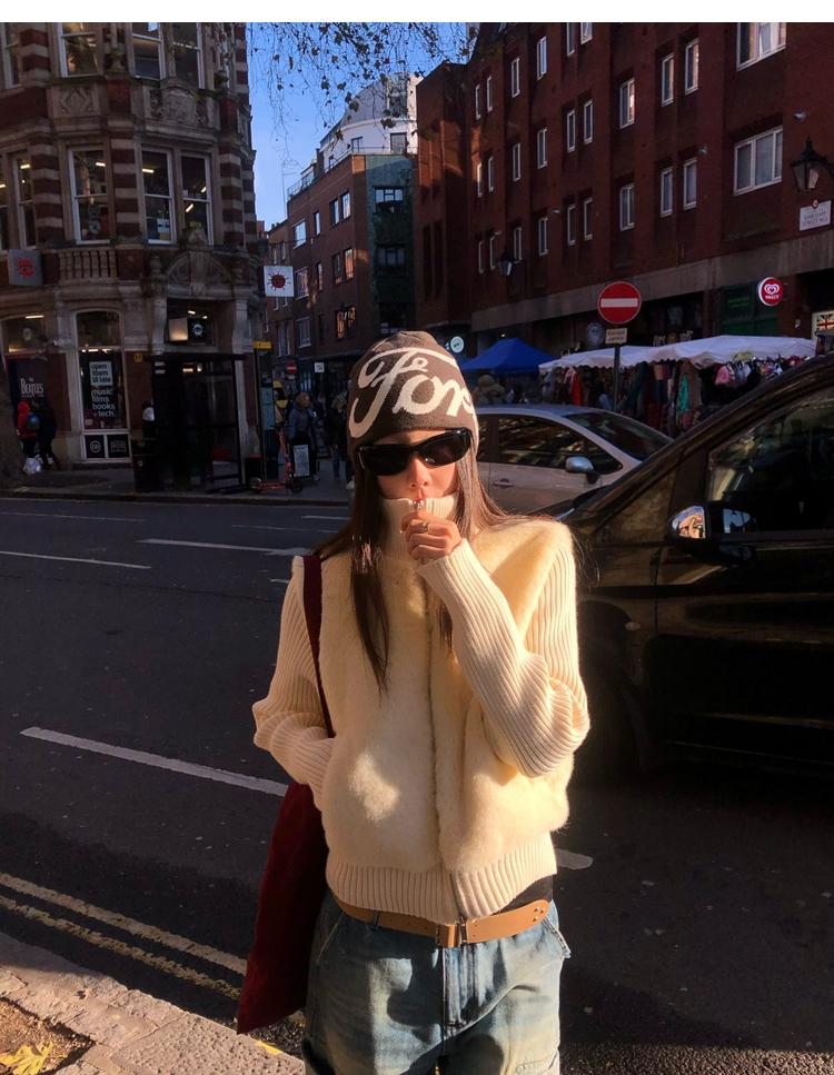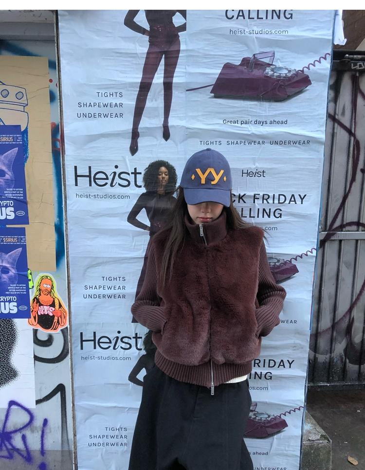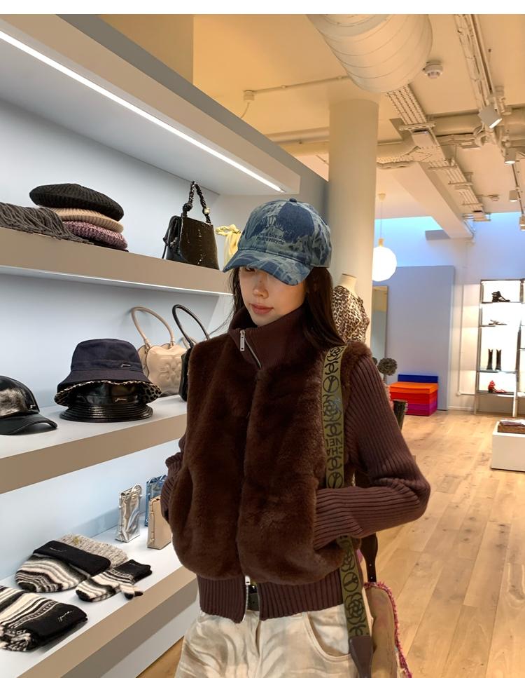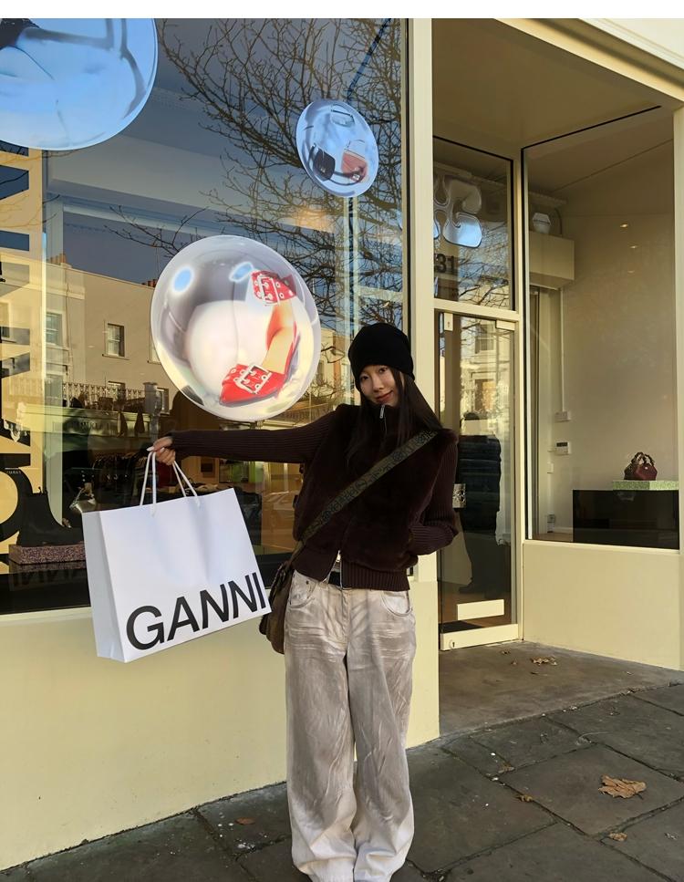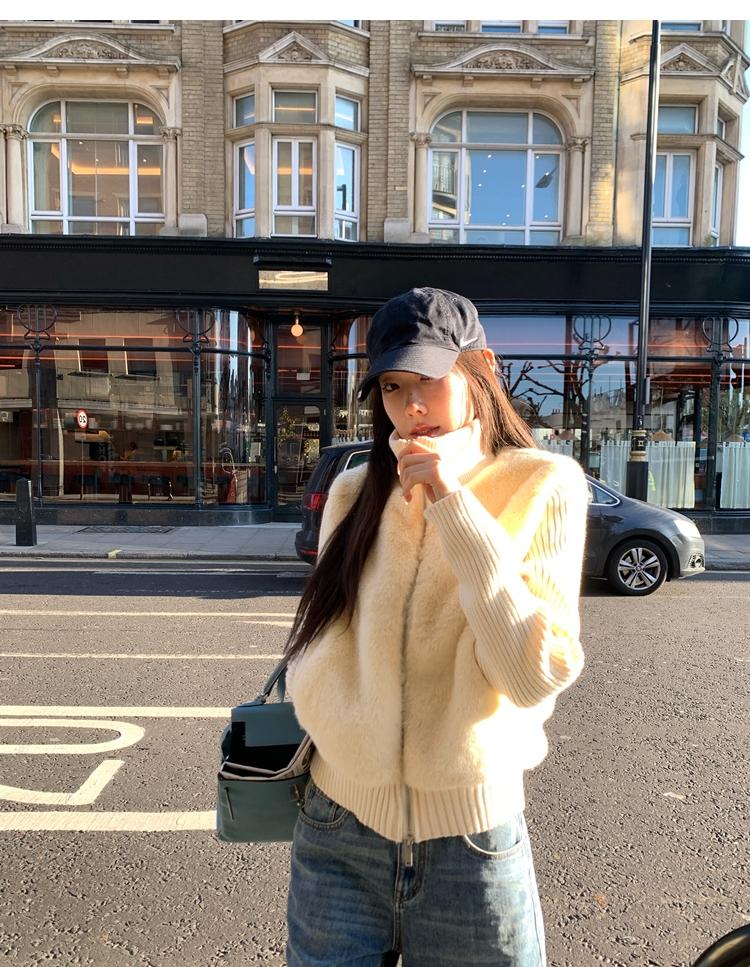 Shibuya Love Retro Knitted Spliced Ring Fur Fake Two-Piece Coat