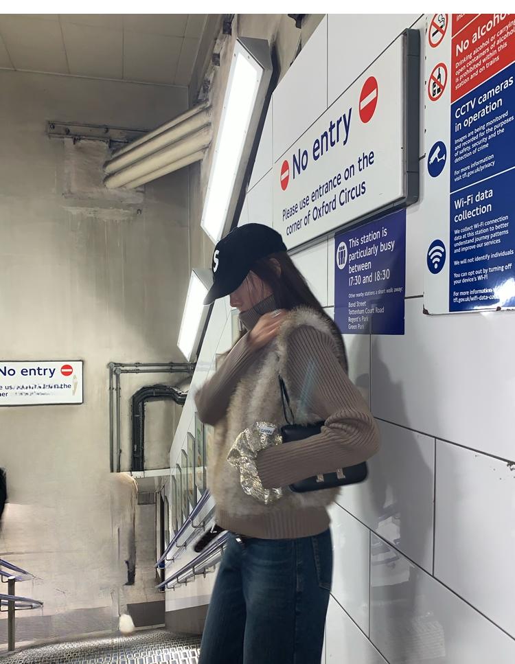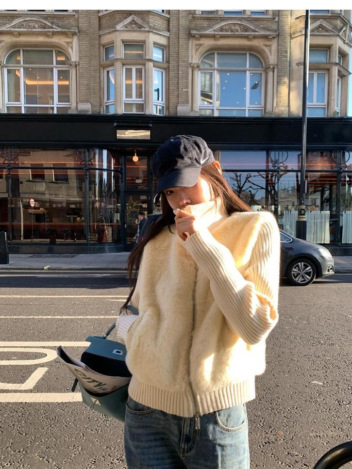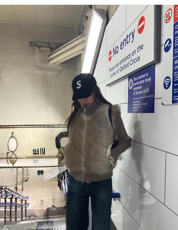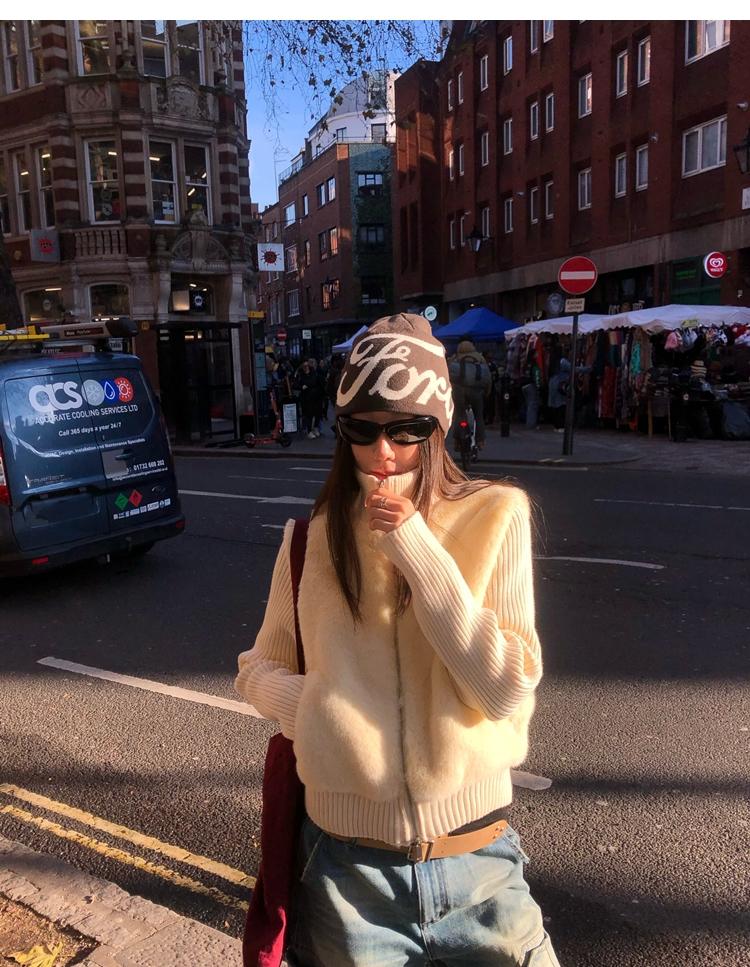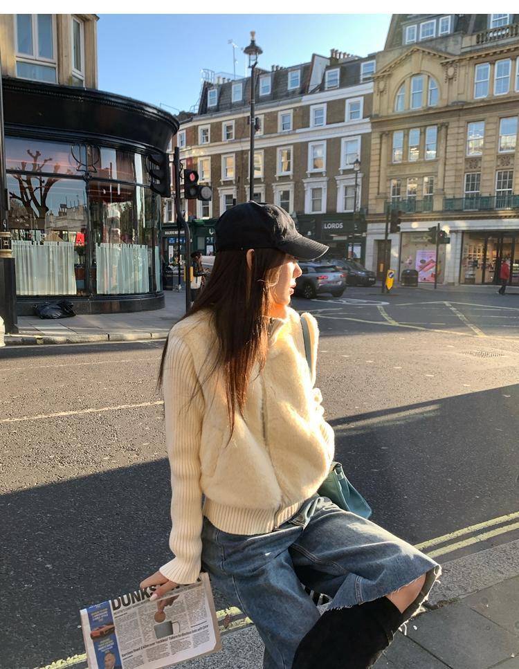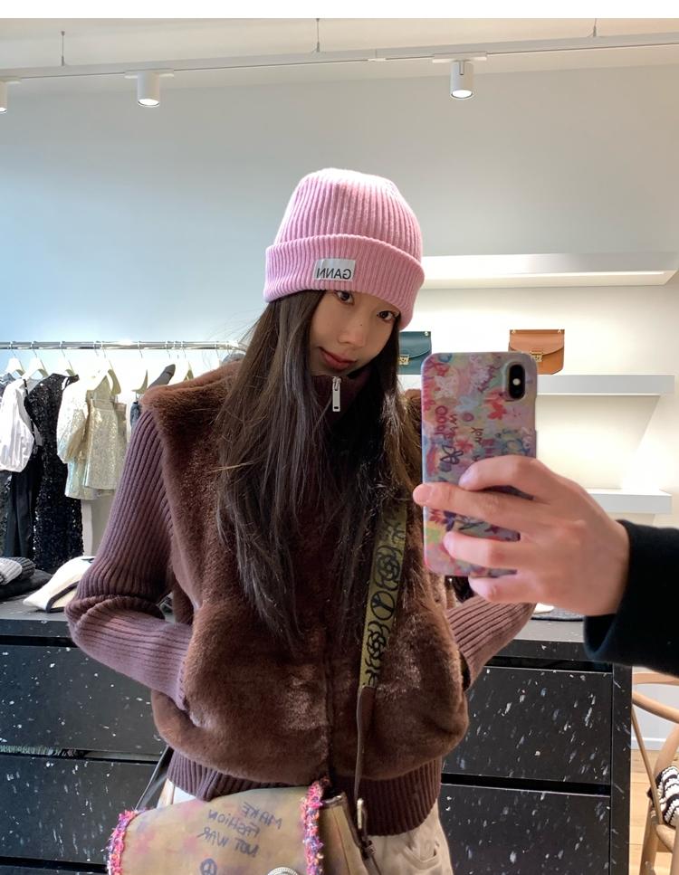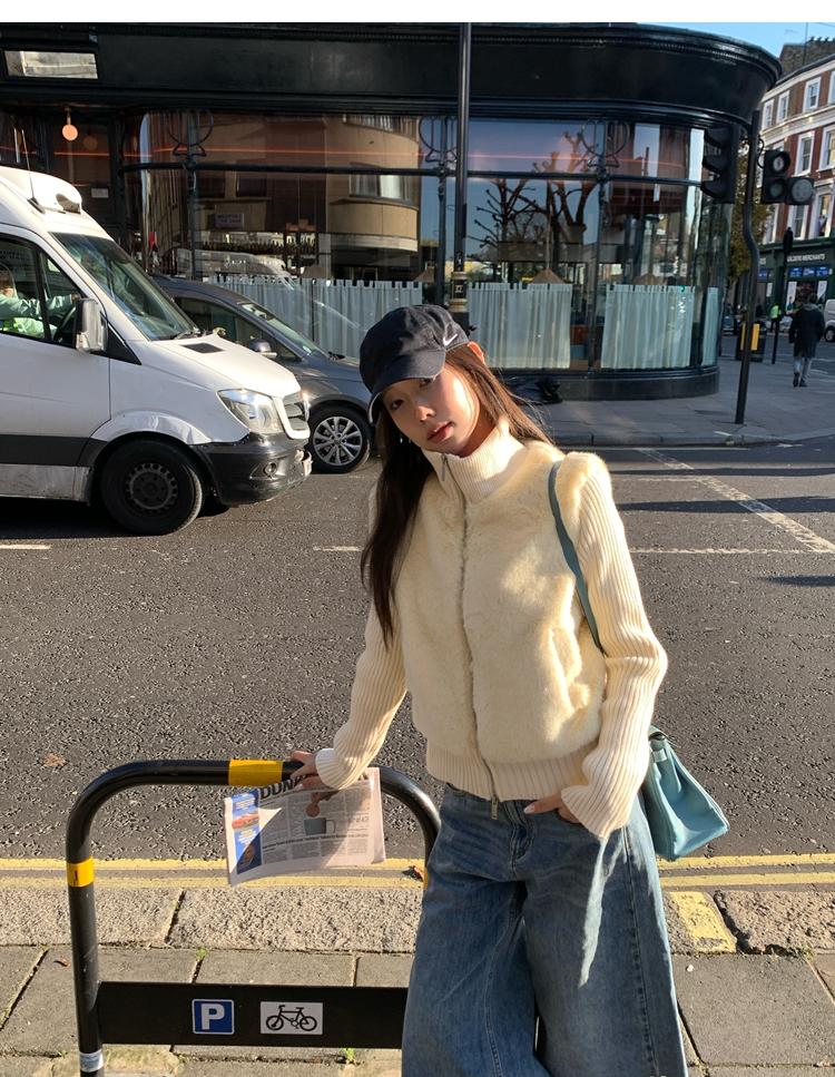 Shibuya Love Retro Knitted Spliced Ring Fur Fake Two-Piece Coat