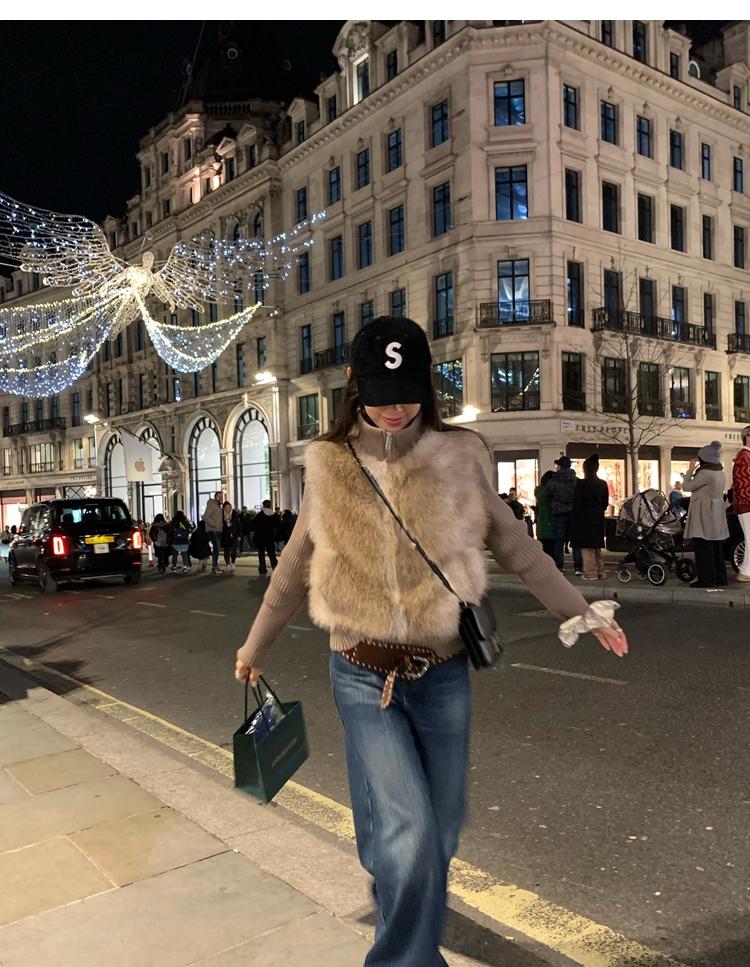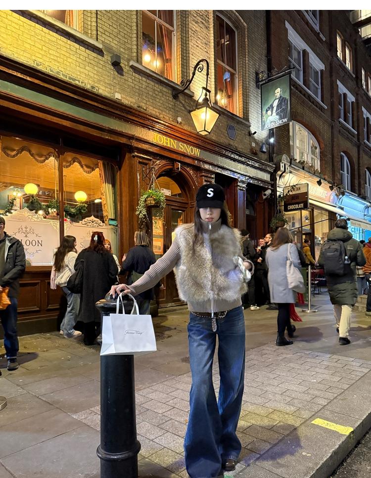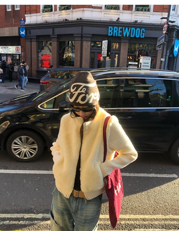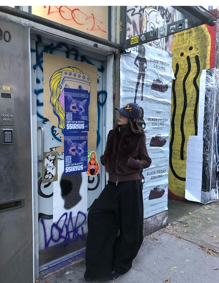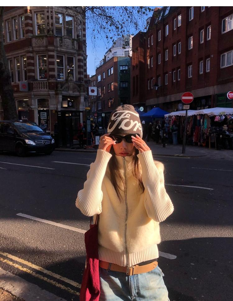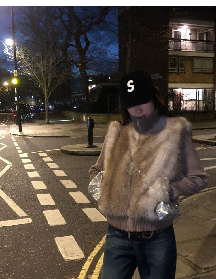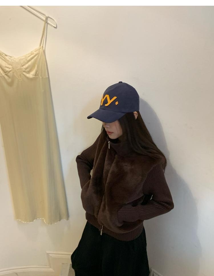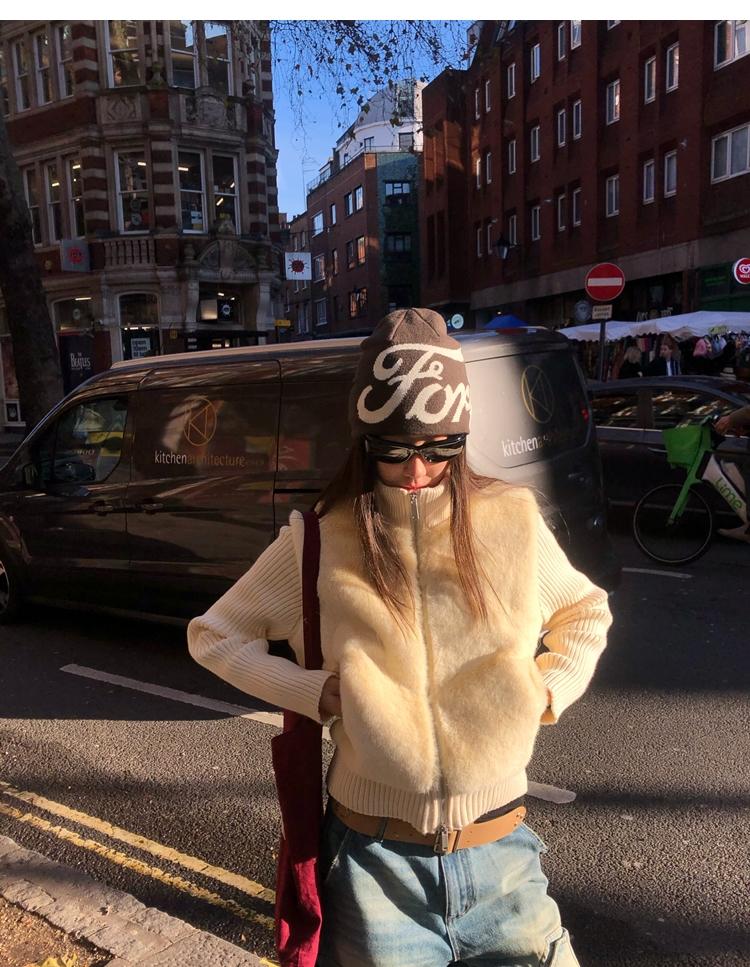 Shibuya Love Retro Knitted Spliced Ring Fur Fake Two-Piece Coat