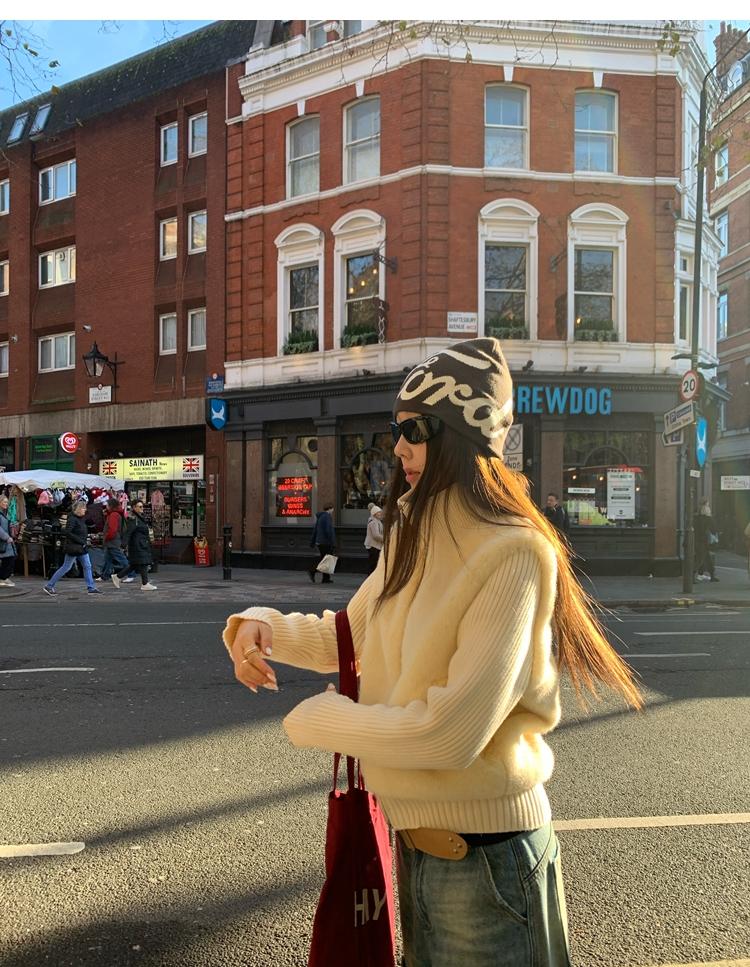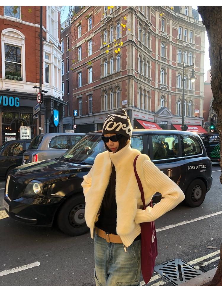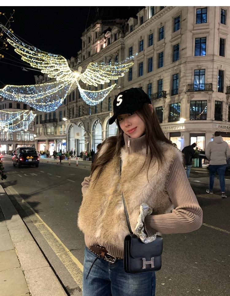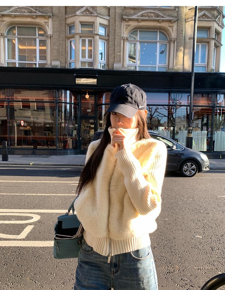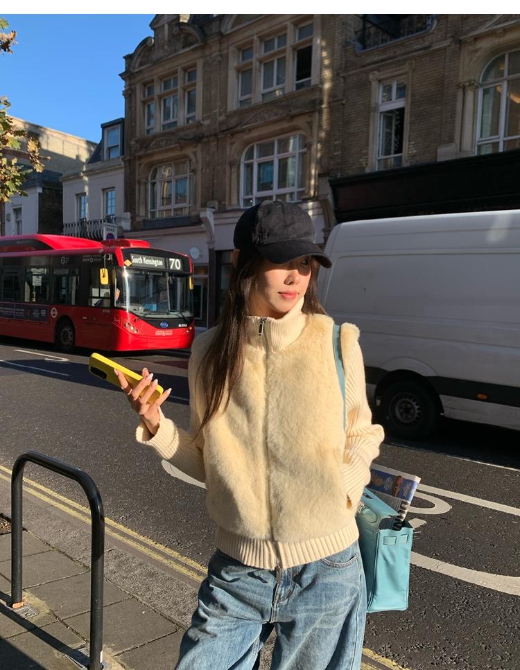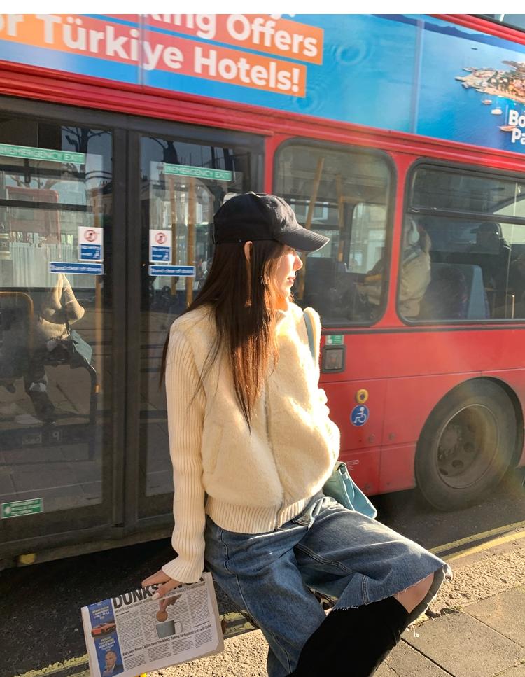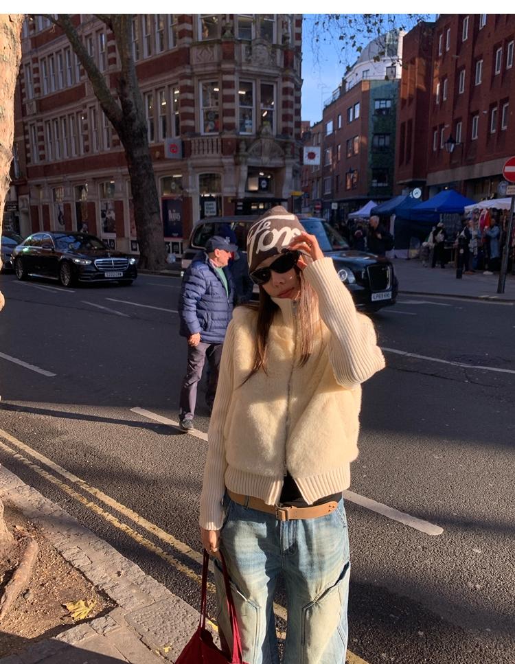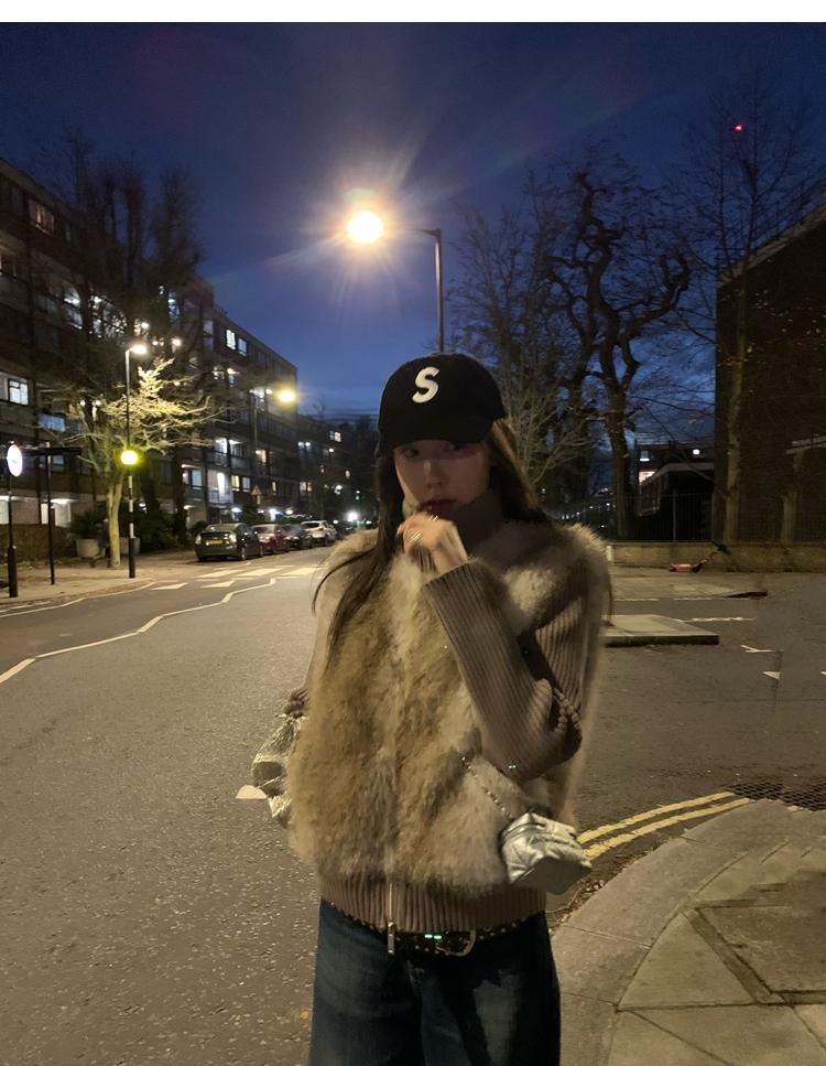 Shibuya Love Retro Knitted Spliced Ring Fur Fake Two-Piece Coat