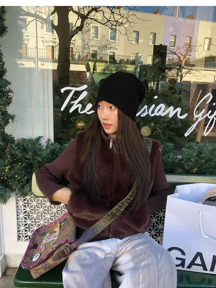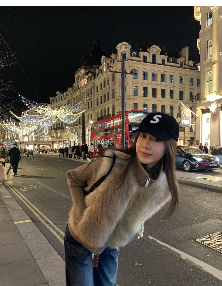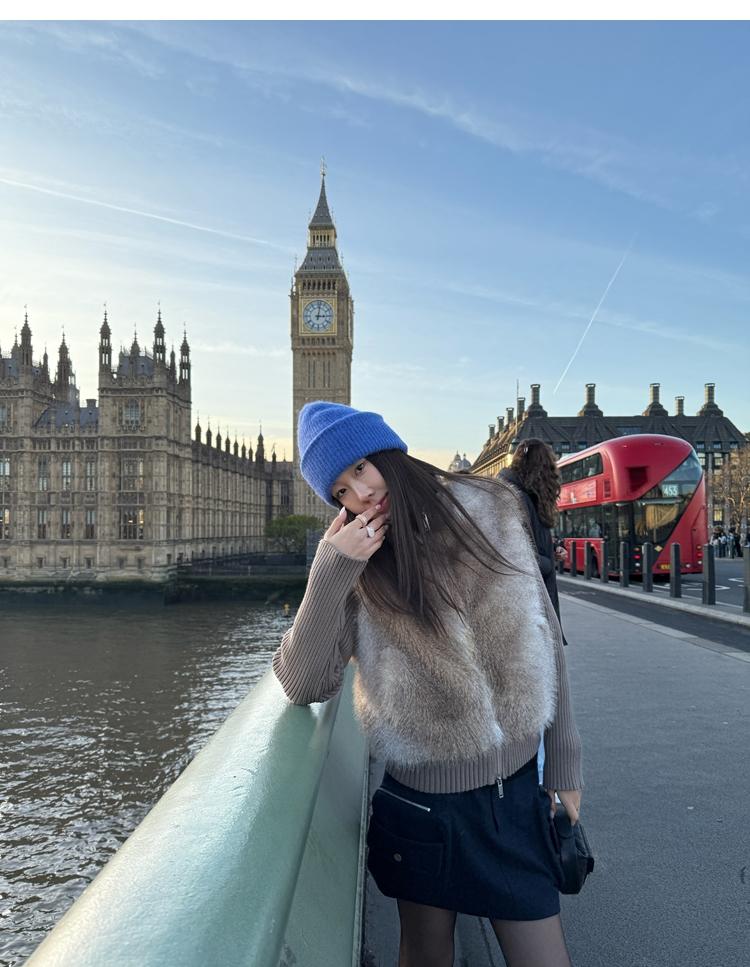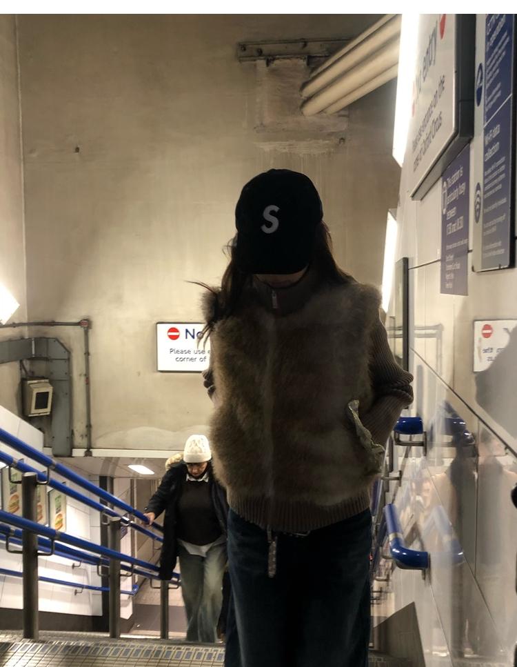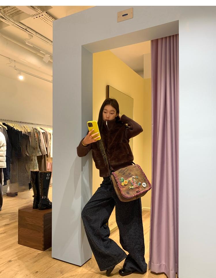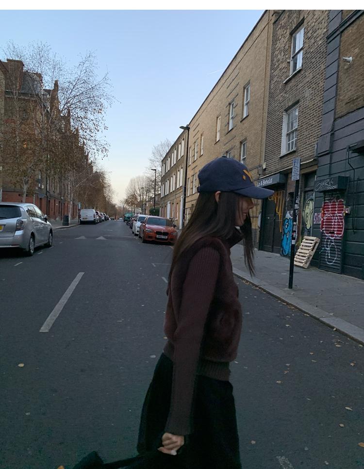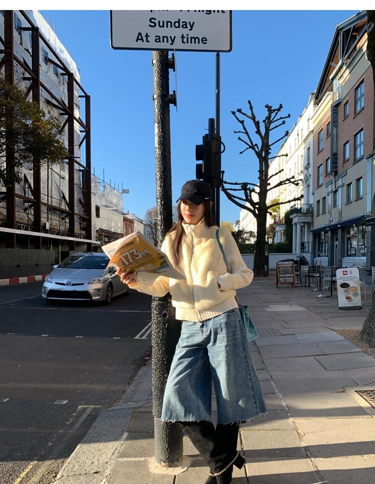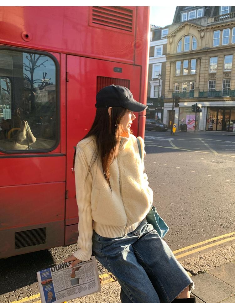 Shibuya Love Retro Knitted Spliced Ring Fur Fake Two-Piece Coat