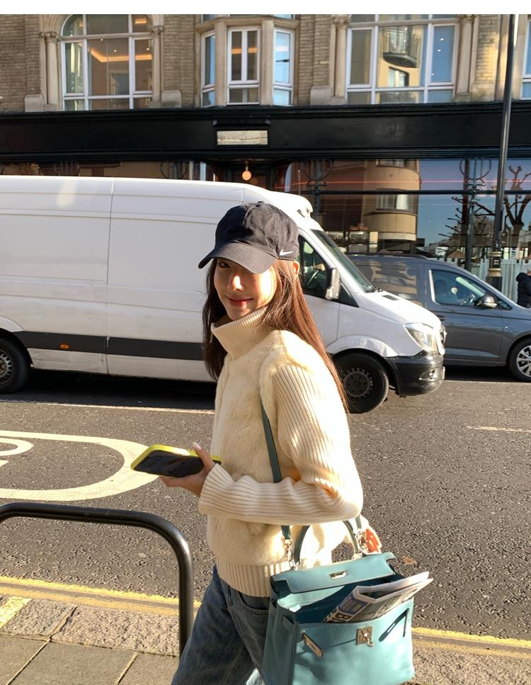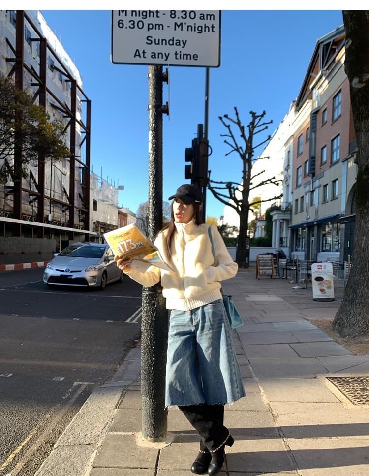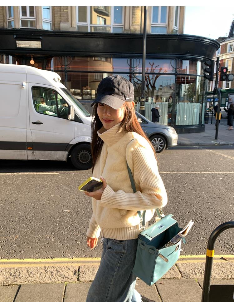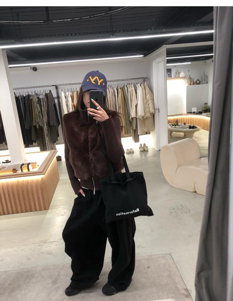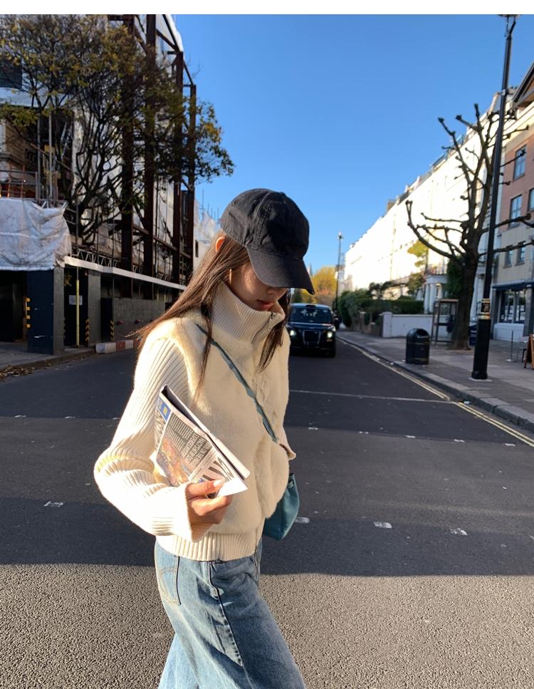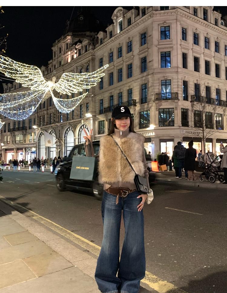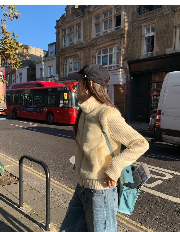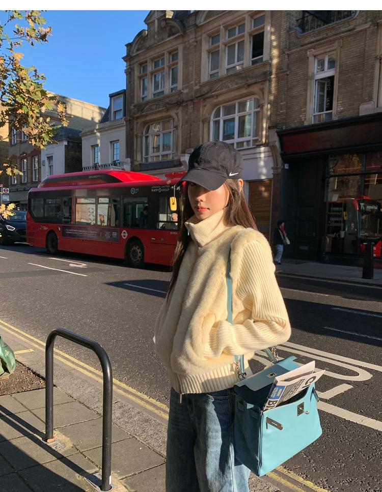 Shibuya Love Retro Knitted Spliced Ring Fur Fake Two-Piece Coat