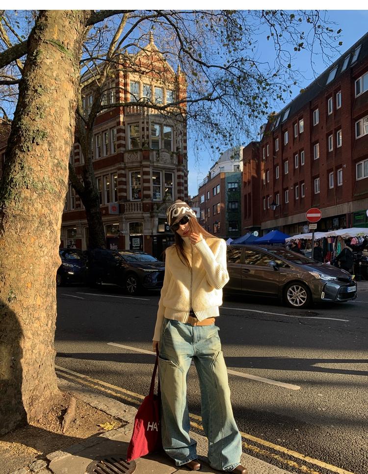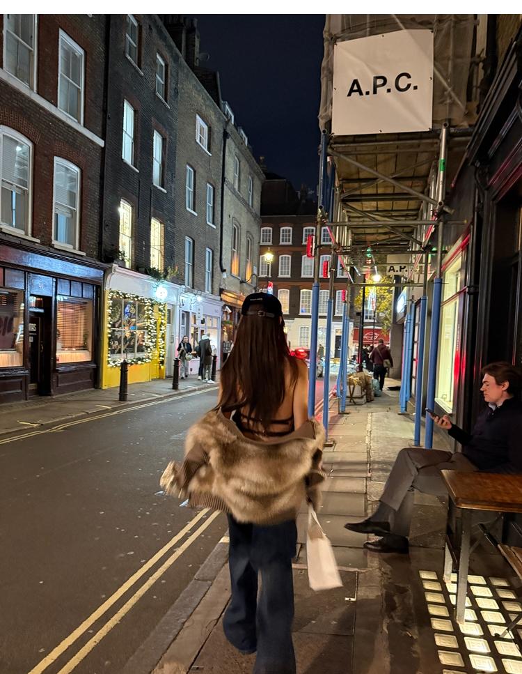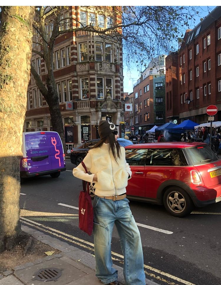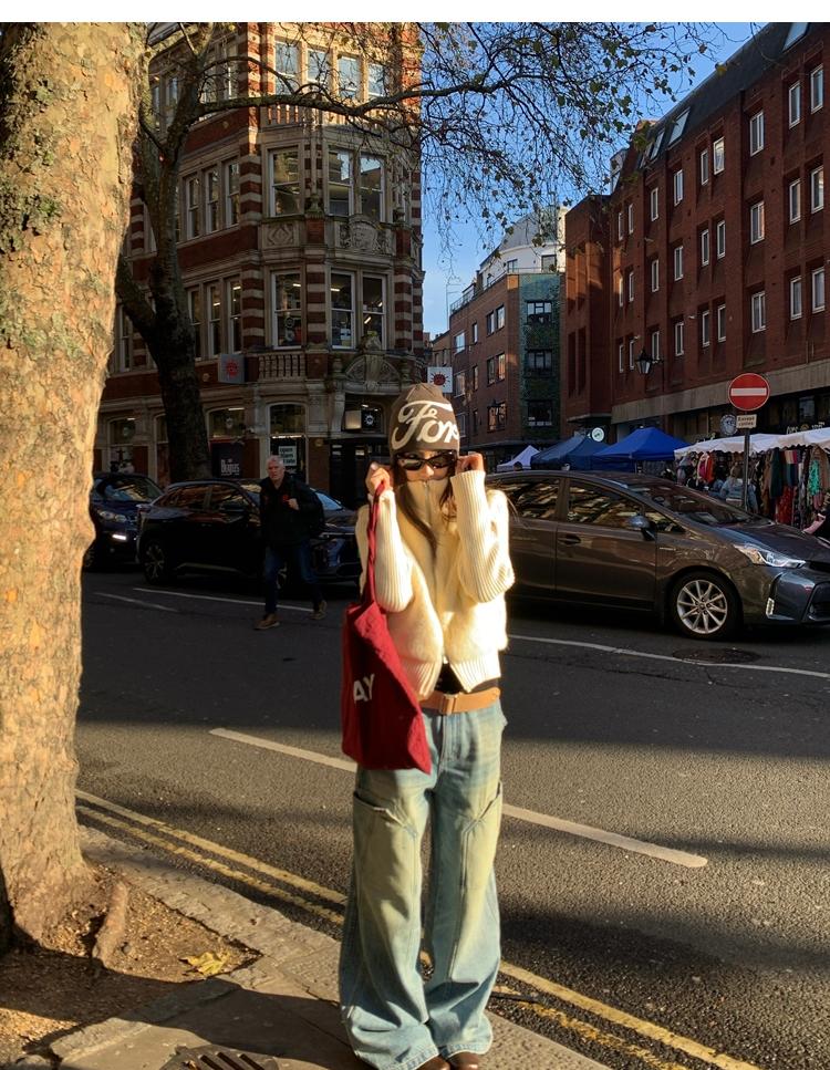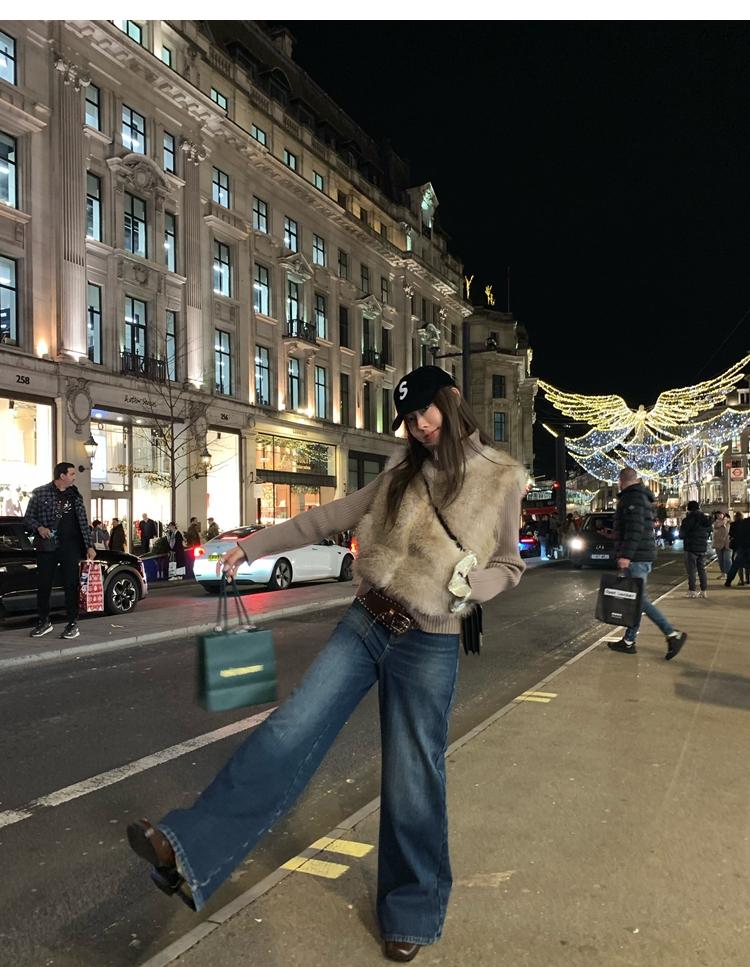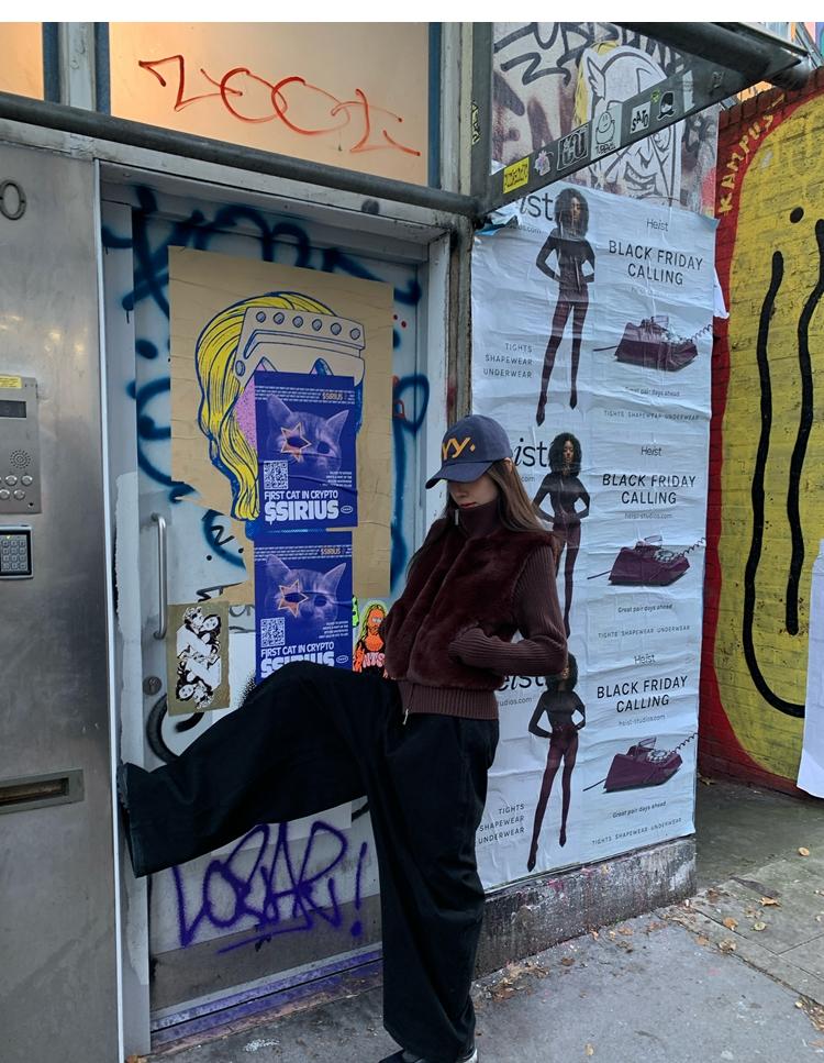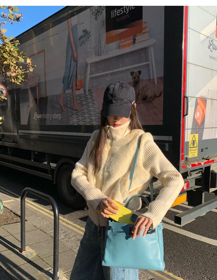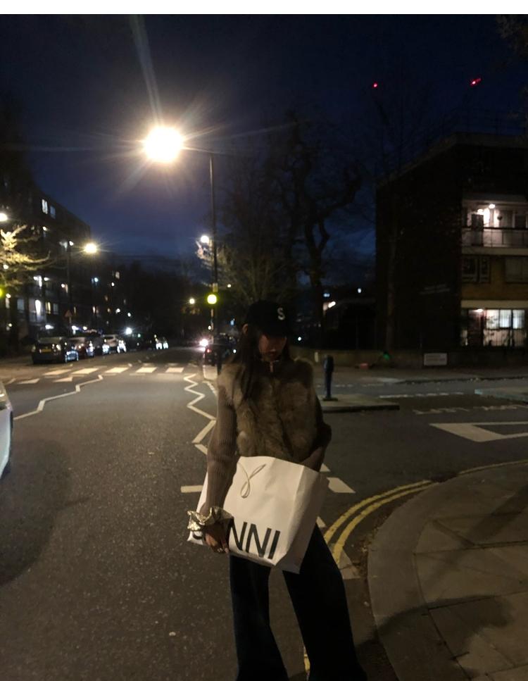 Shibuya Love Retro Knitted Spliced Ring Fur Fake Two-Piece Coat