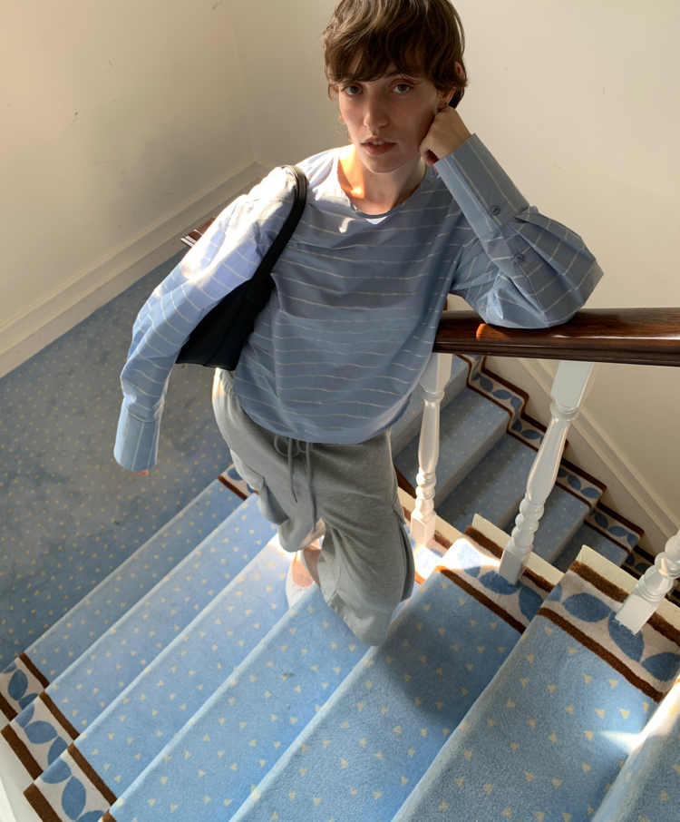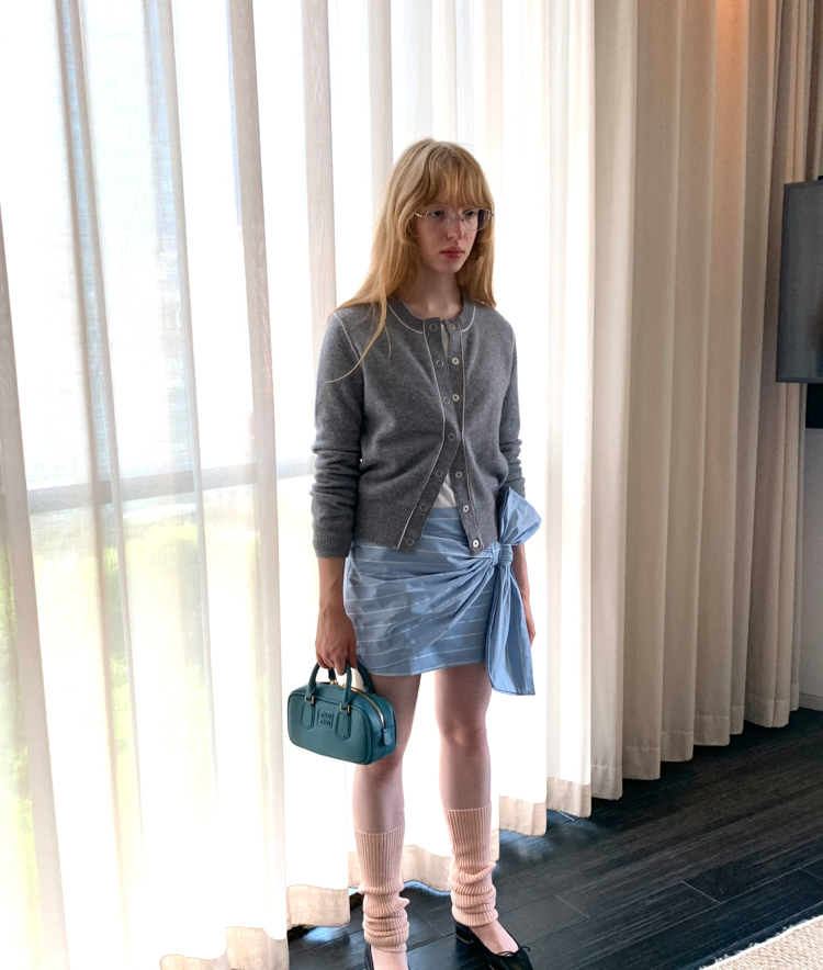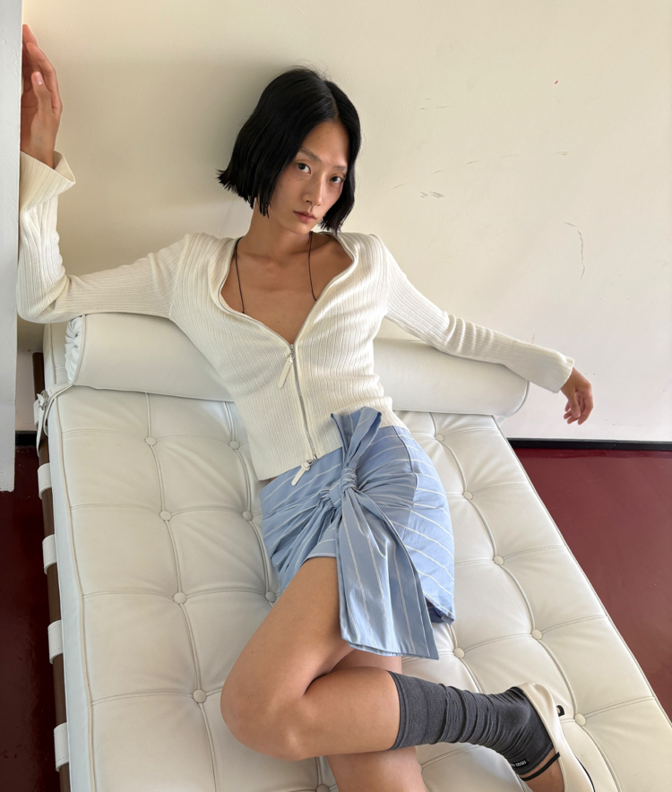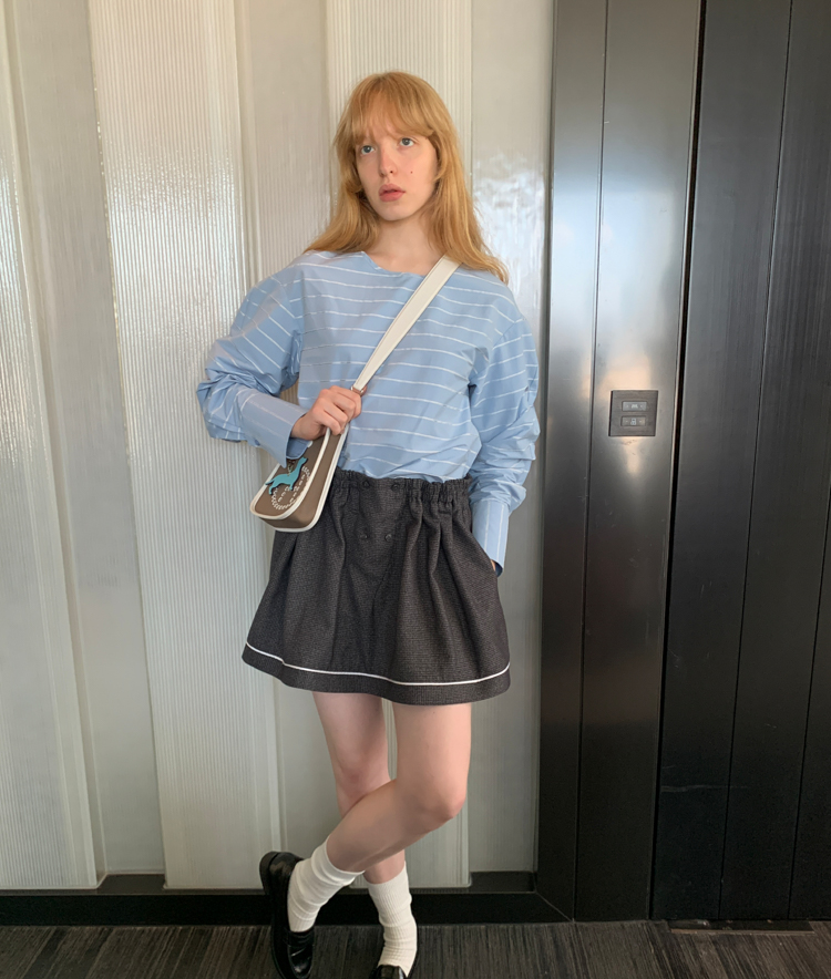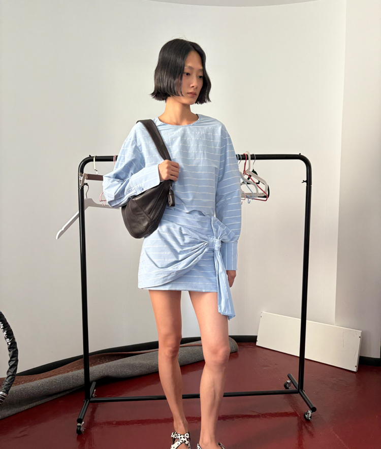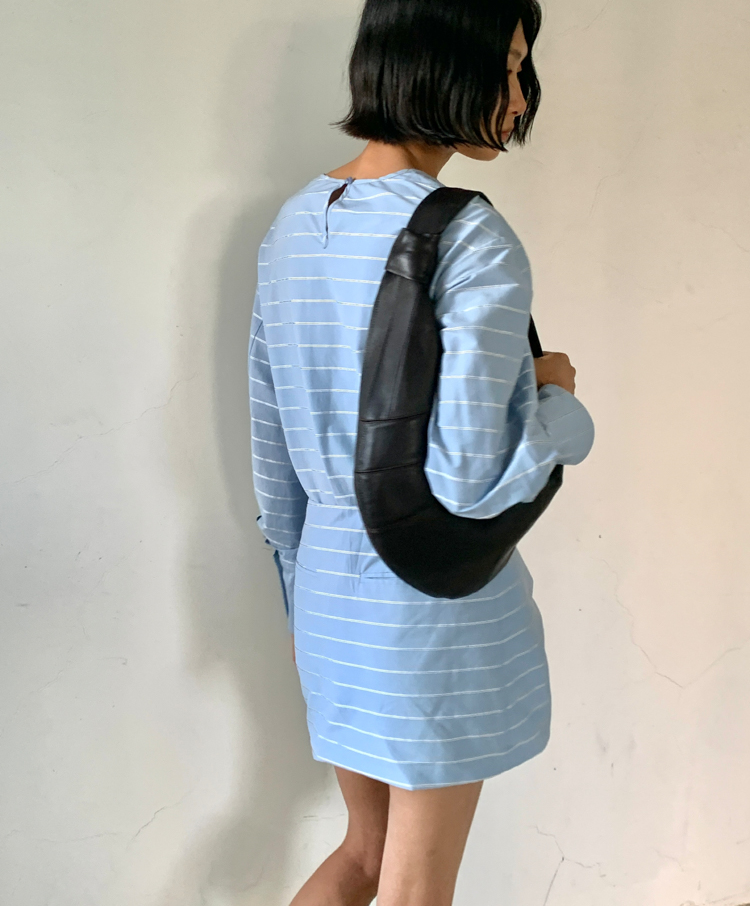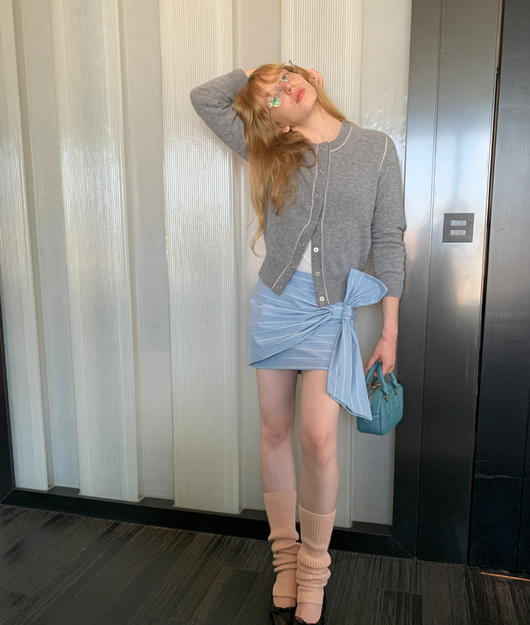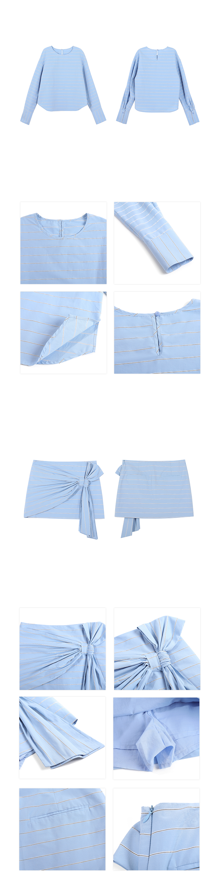 early autumn round neck stripes Nordic simple shirt / bow shape skirt