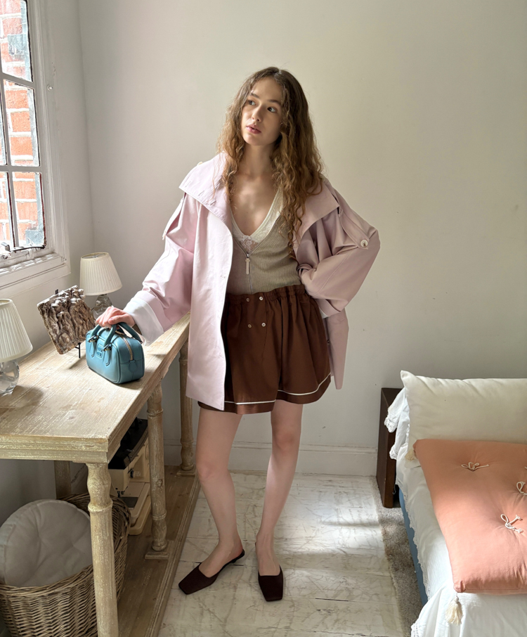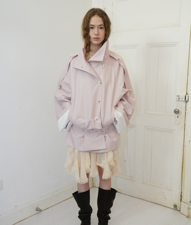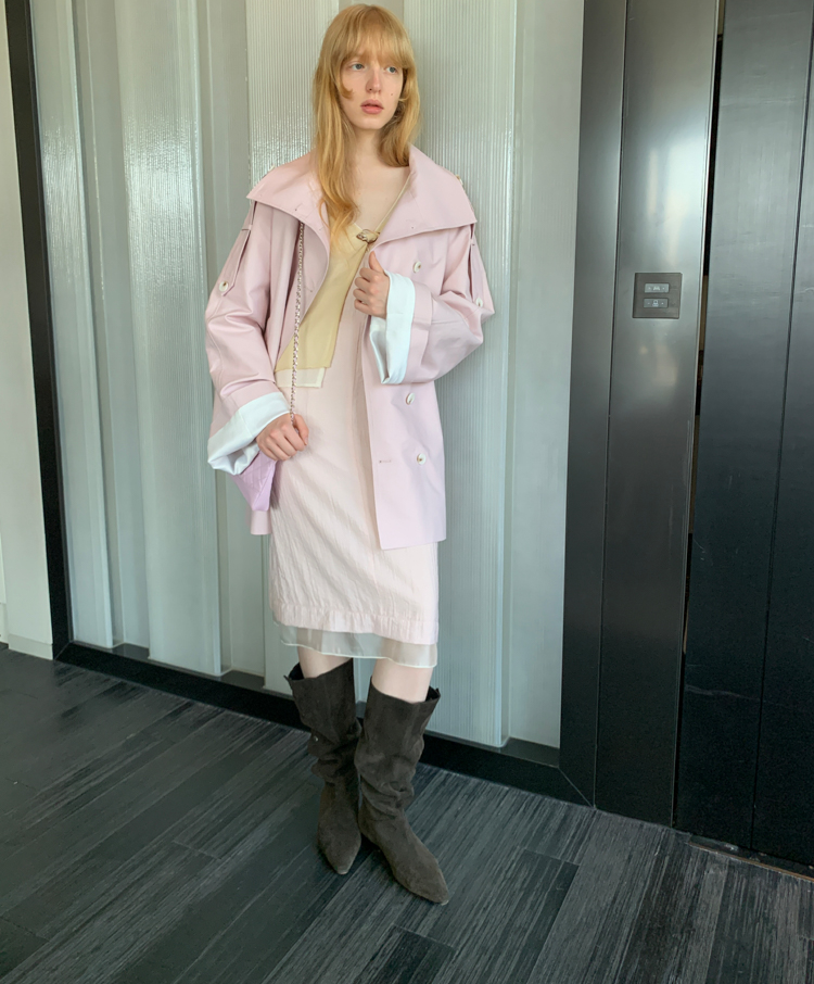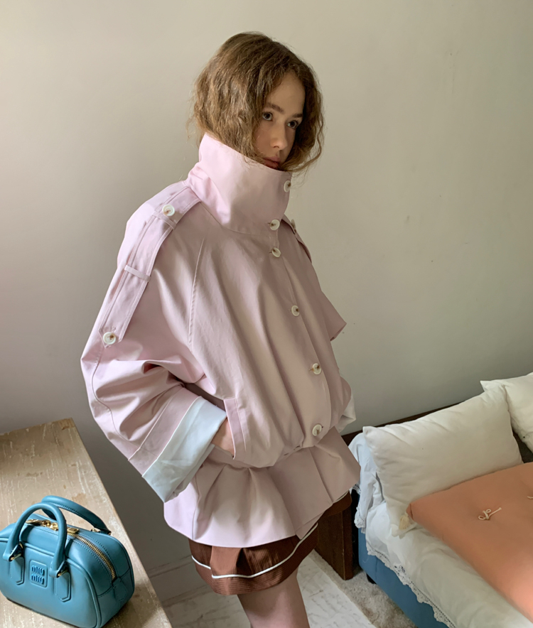 pure cotton niche gray pink stand collar single breasted mid-length windbreaker