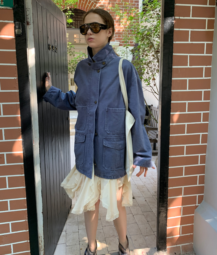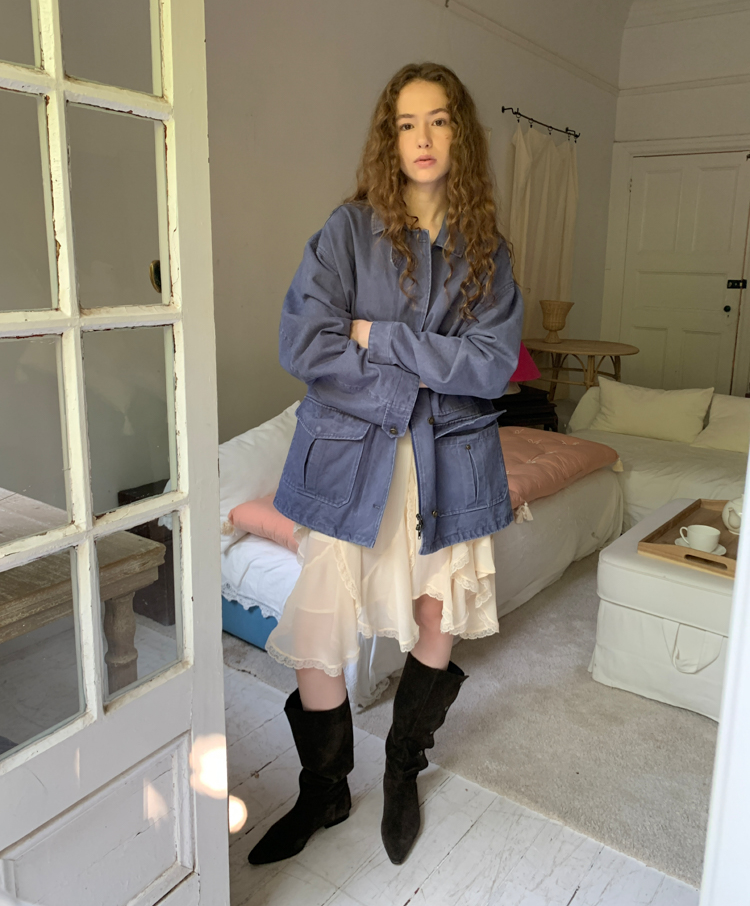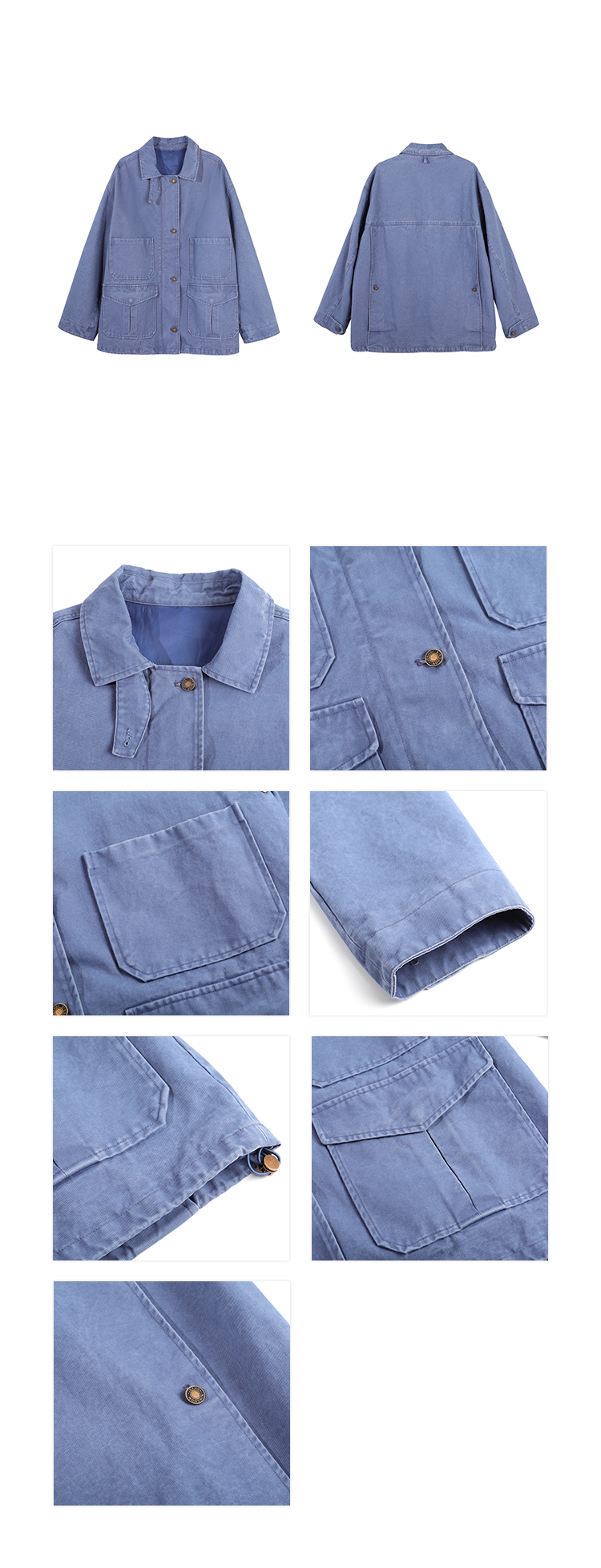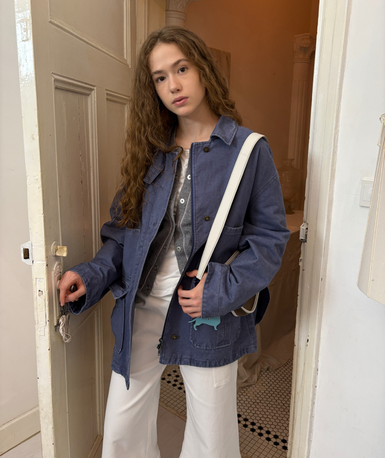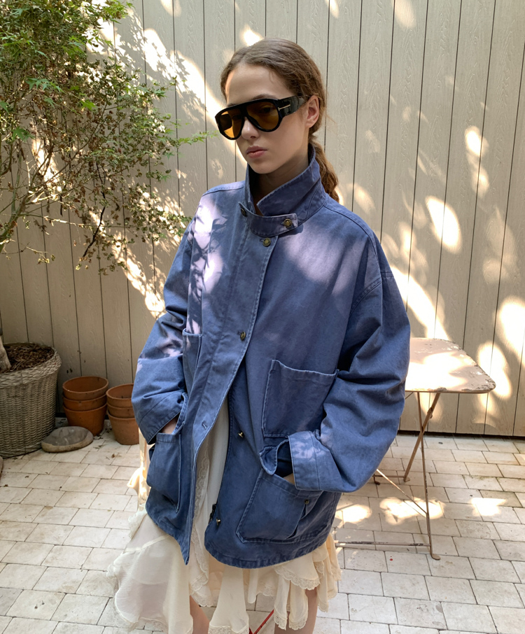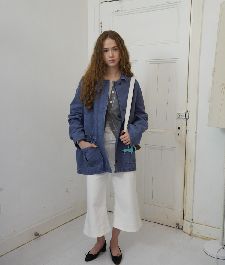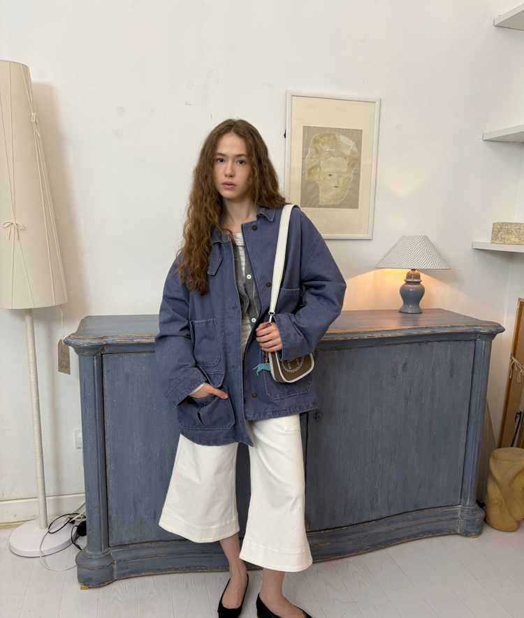 pure cotton distressed washed French blue oversize workwear jacket