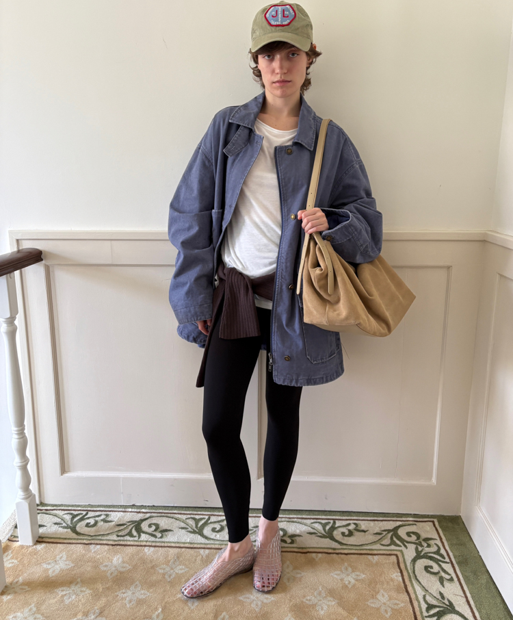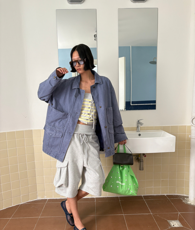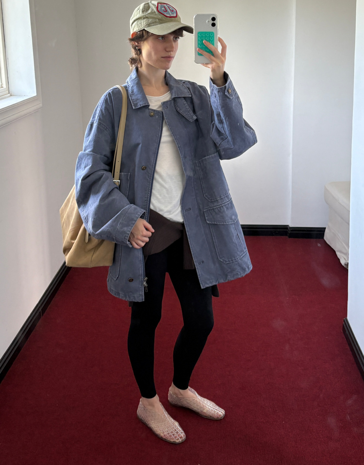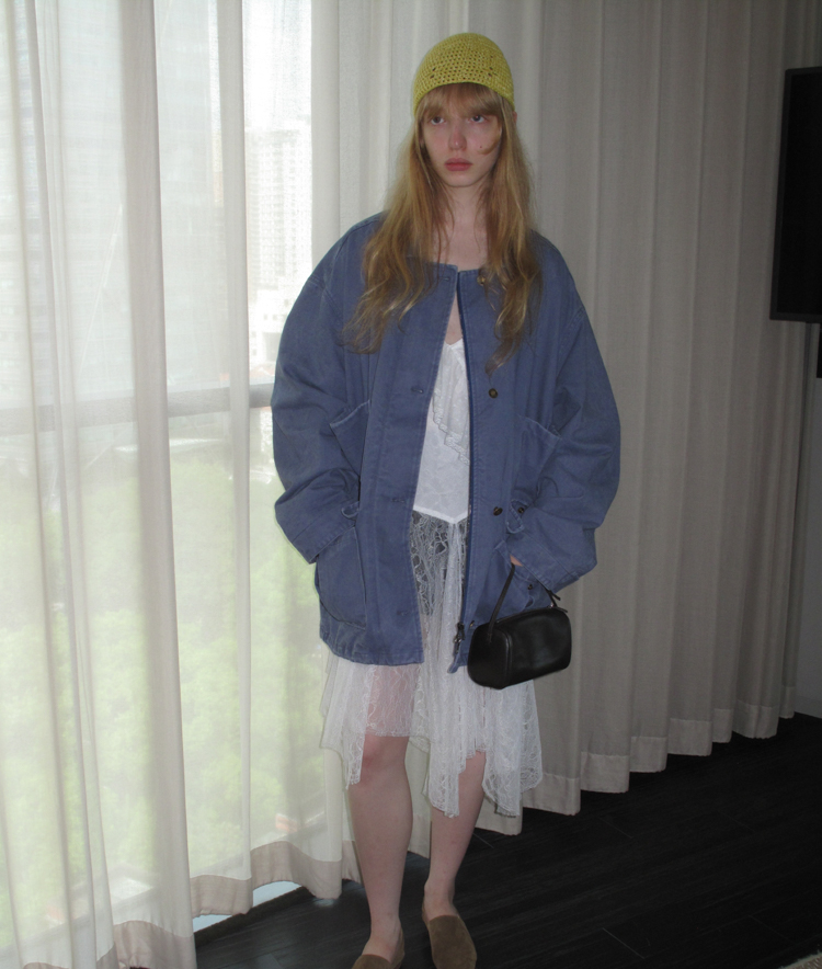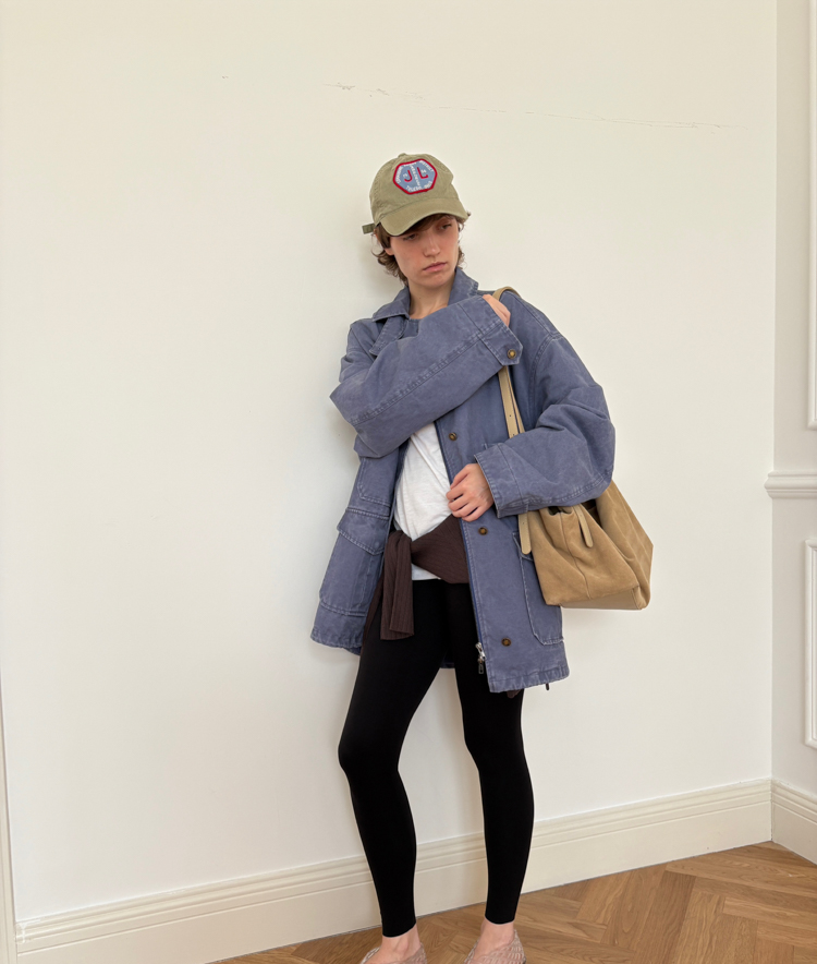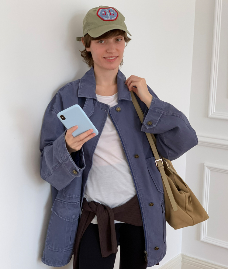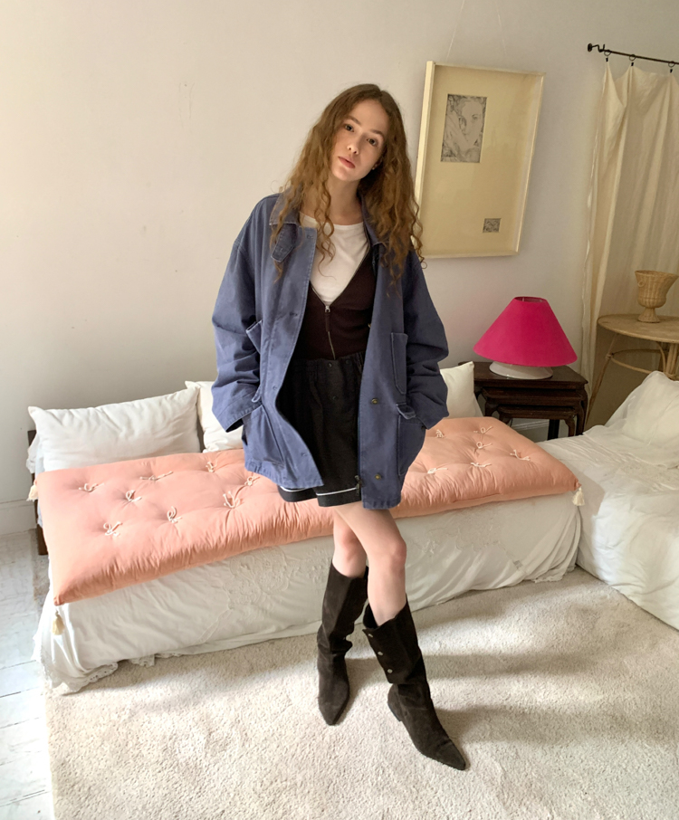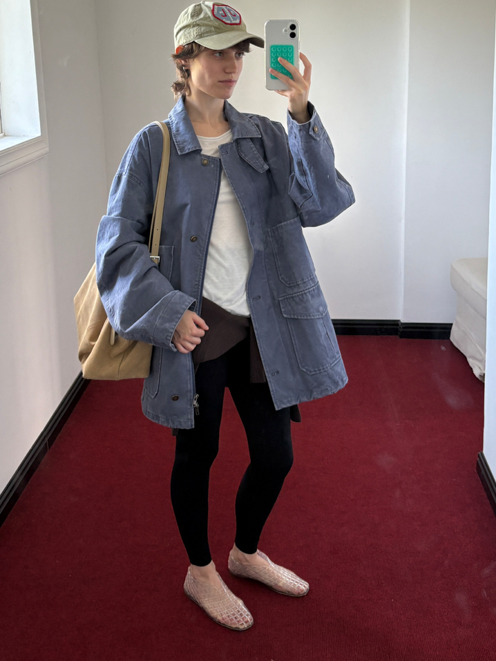 pure cotton distressed washed French blue oversize workwear jacket