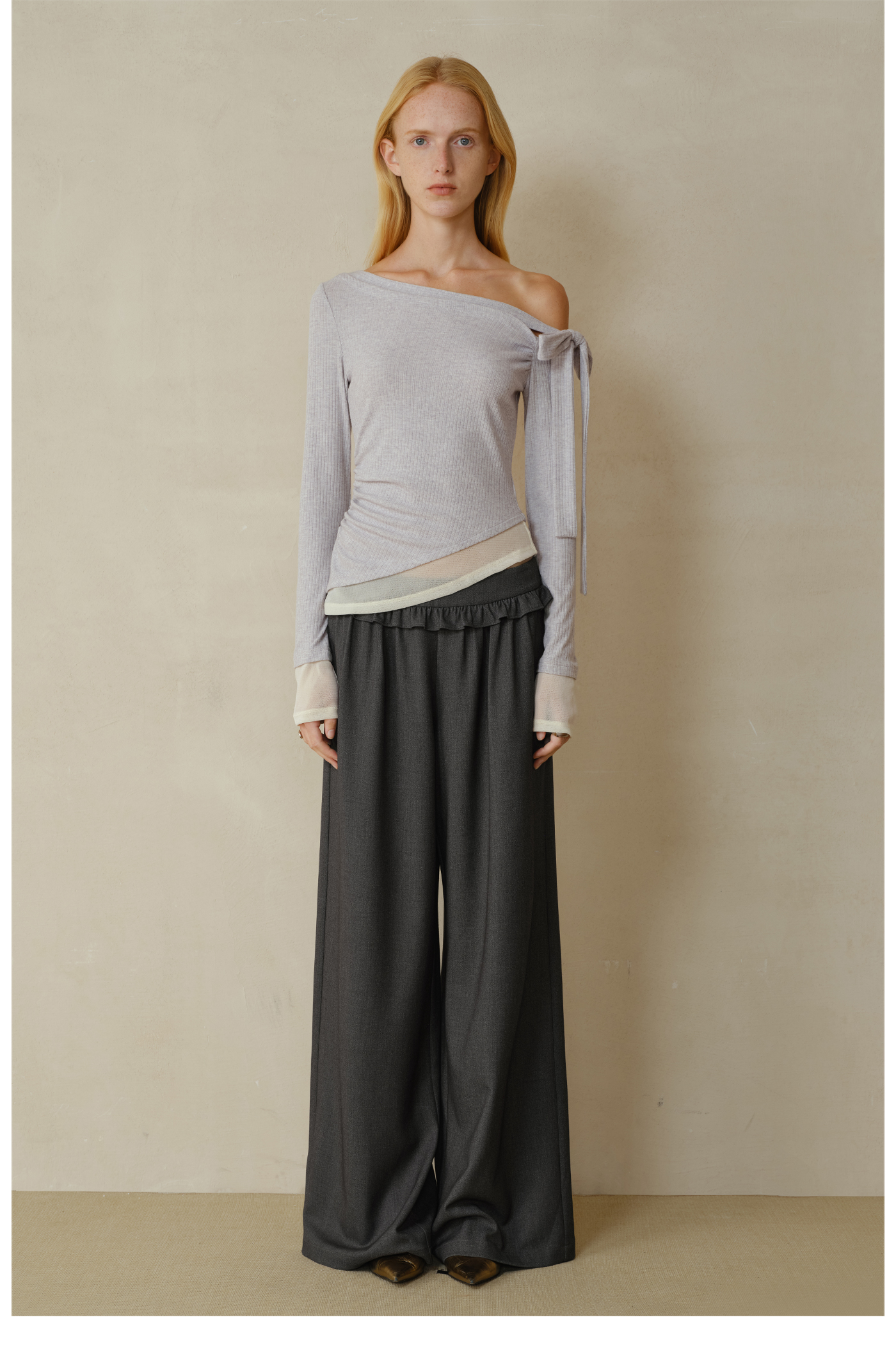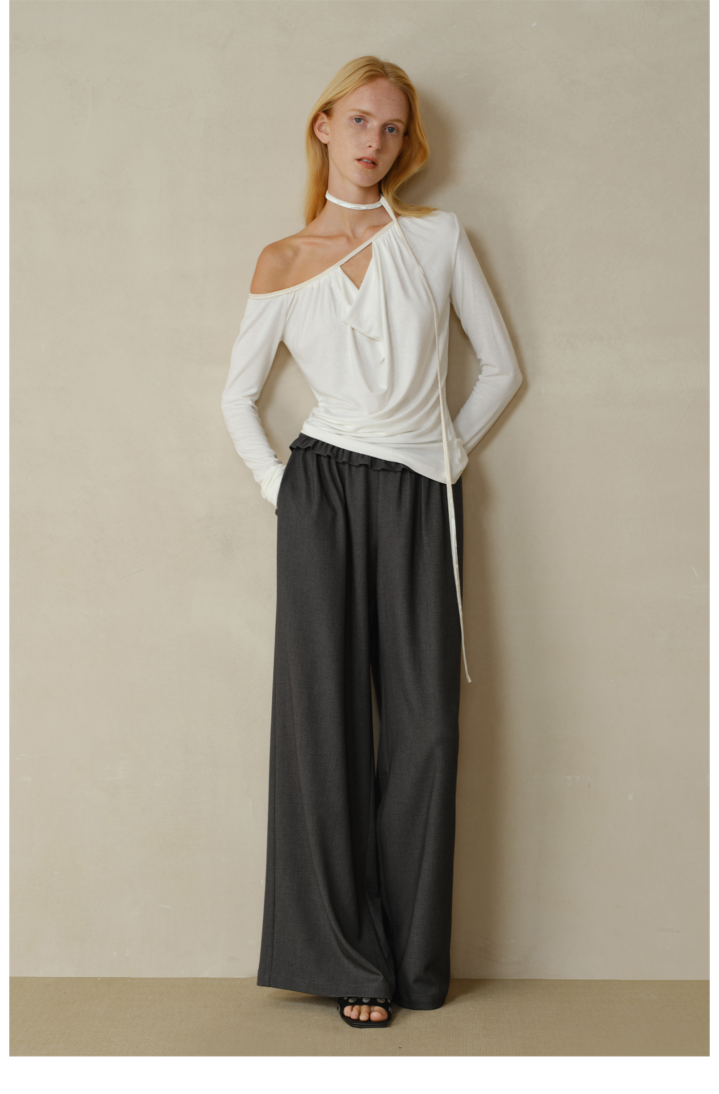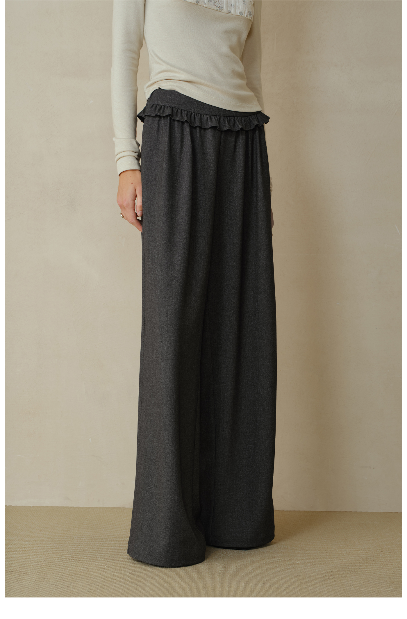 French ruffled waistband stitching drapes and slims paper wide-leg trouser