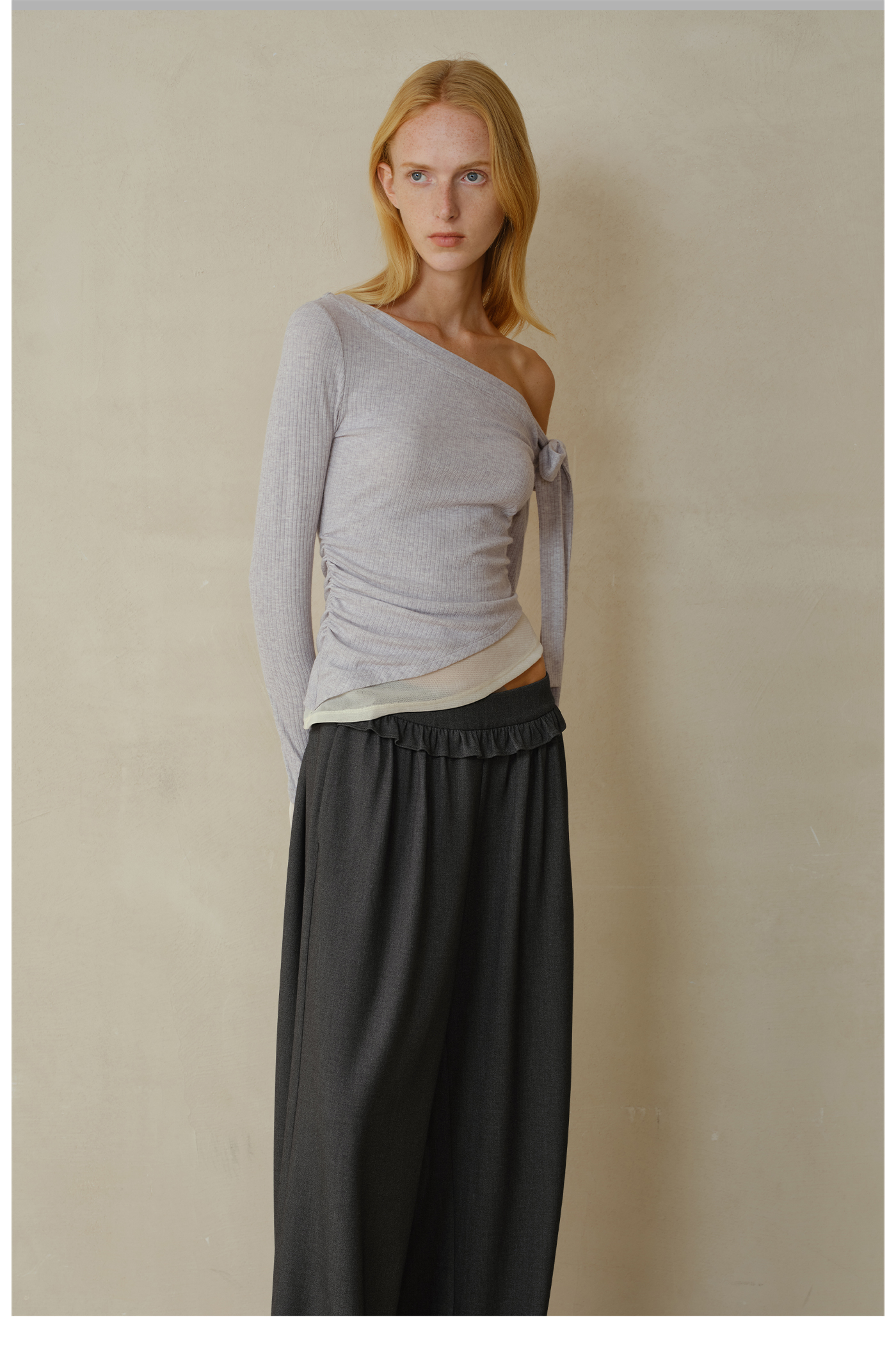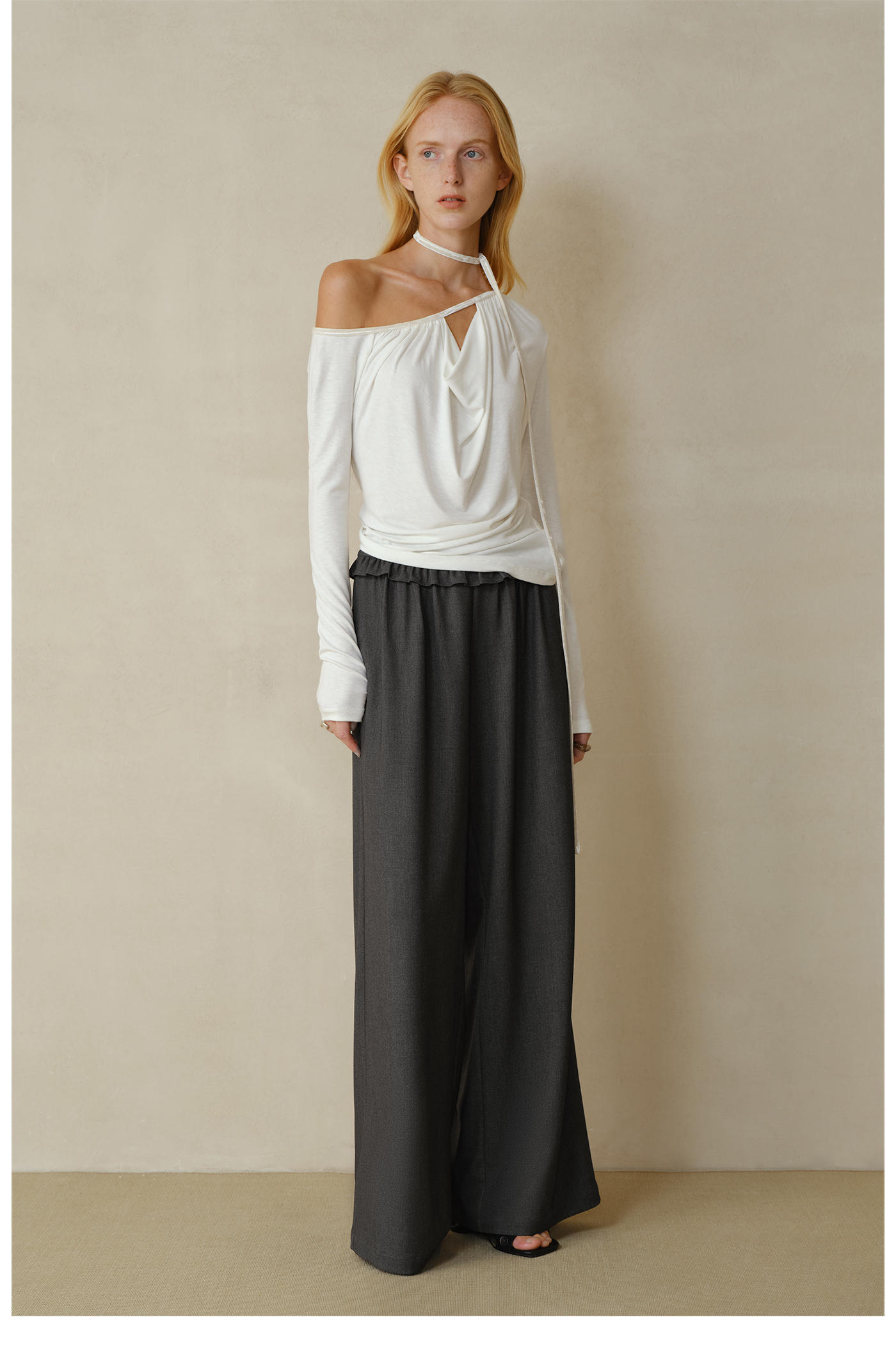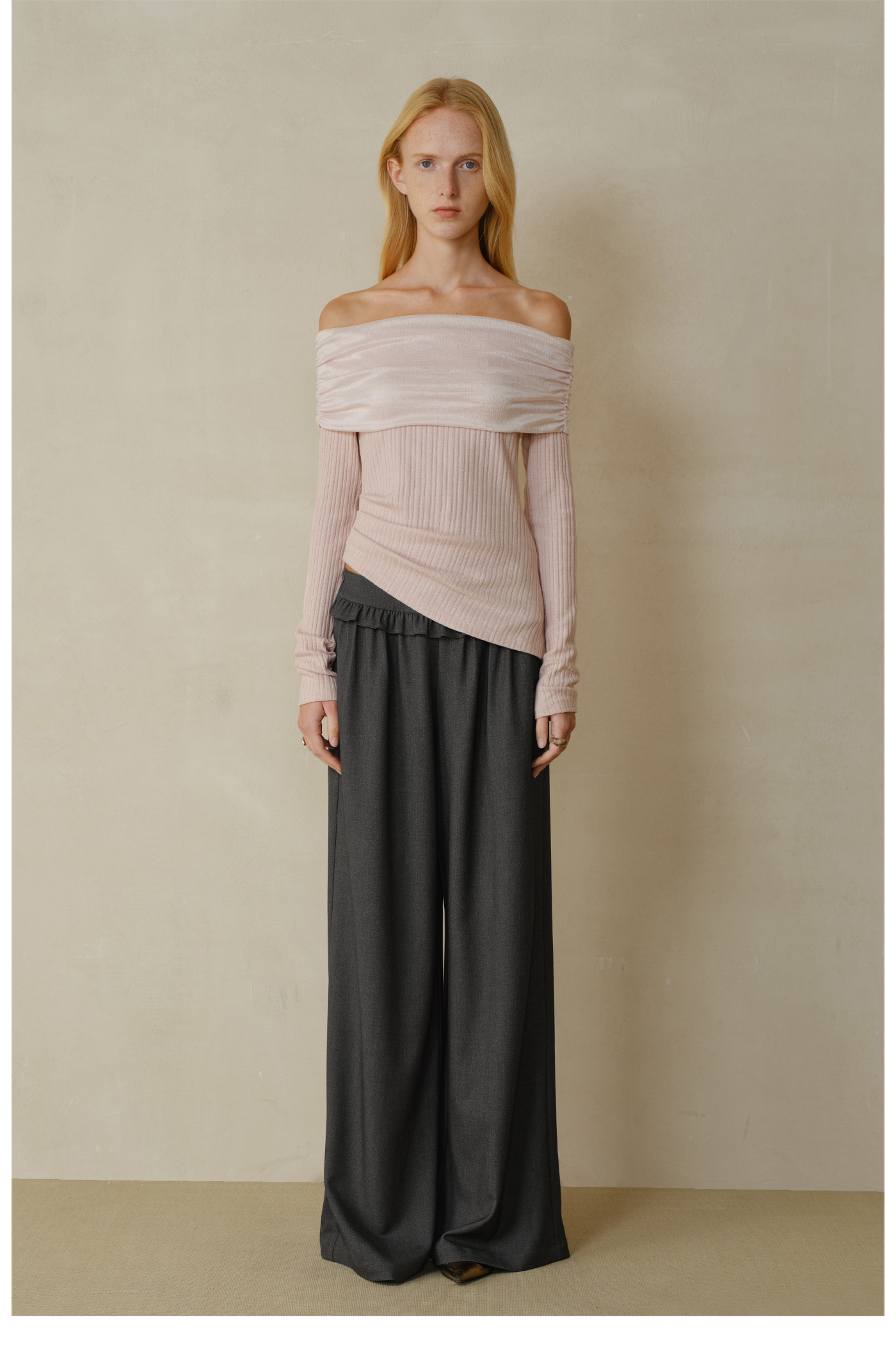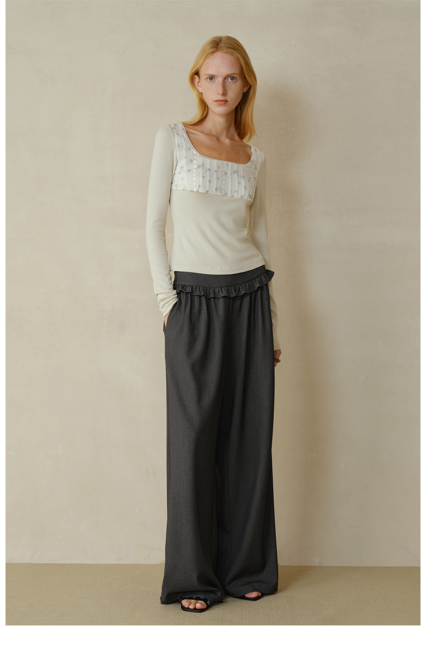 French ruffled waistband stitching drapes and slims paper wide-leg trouser