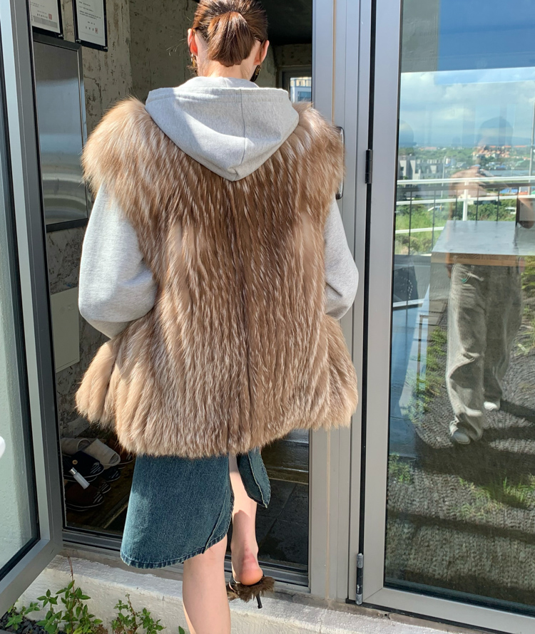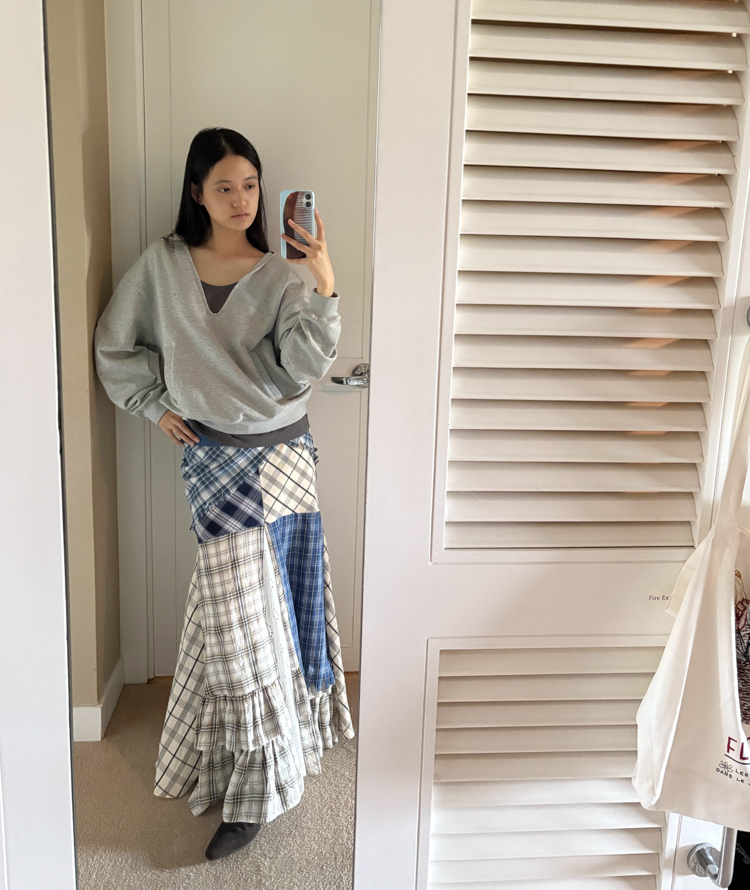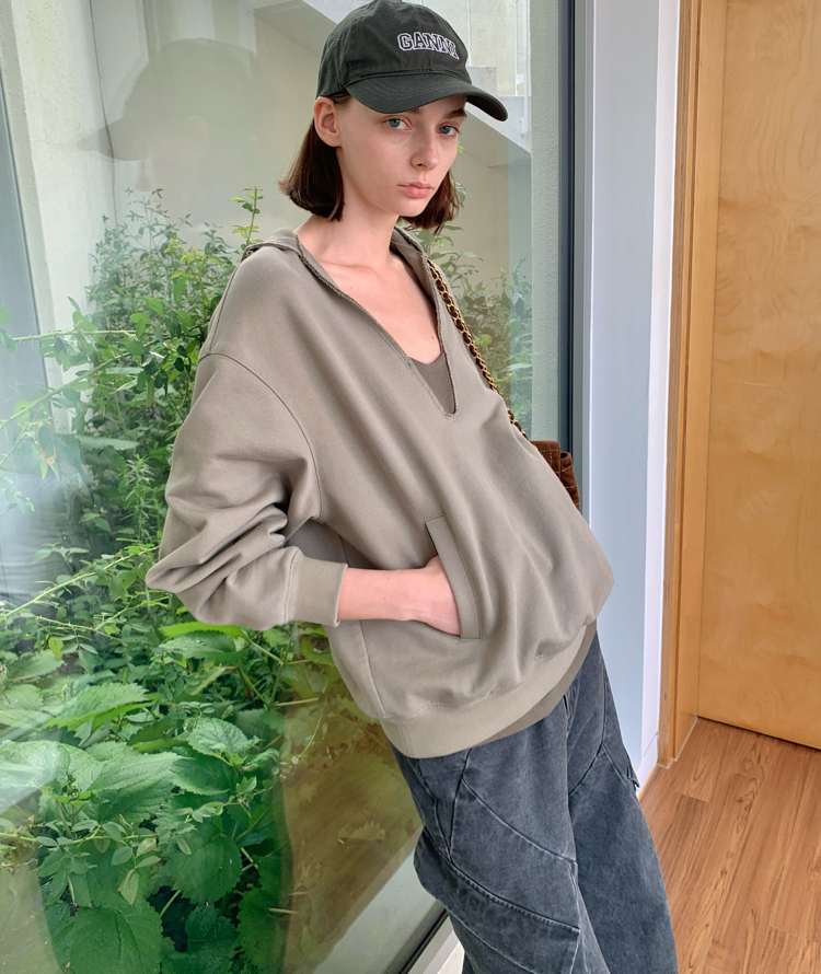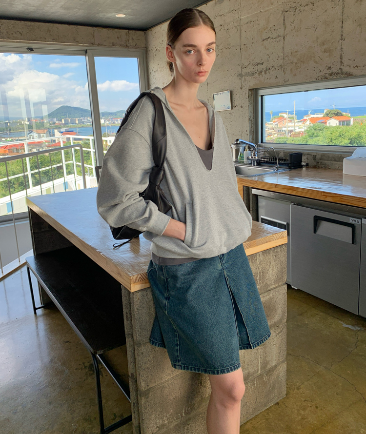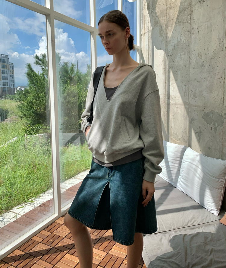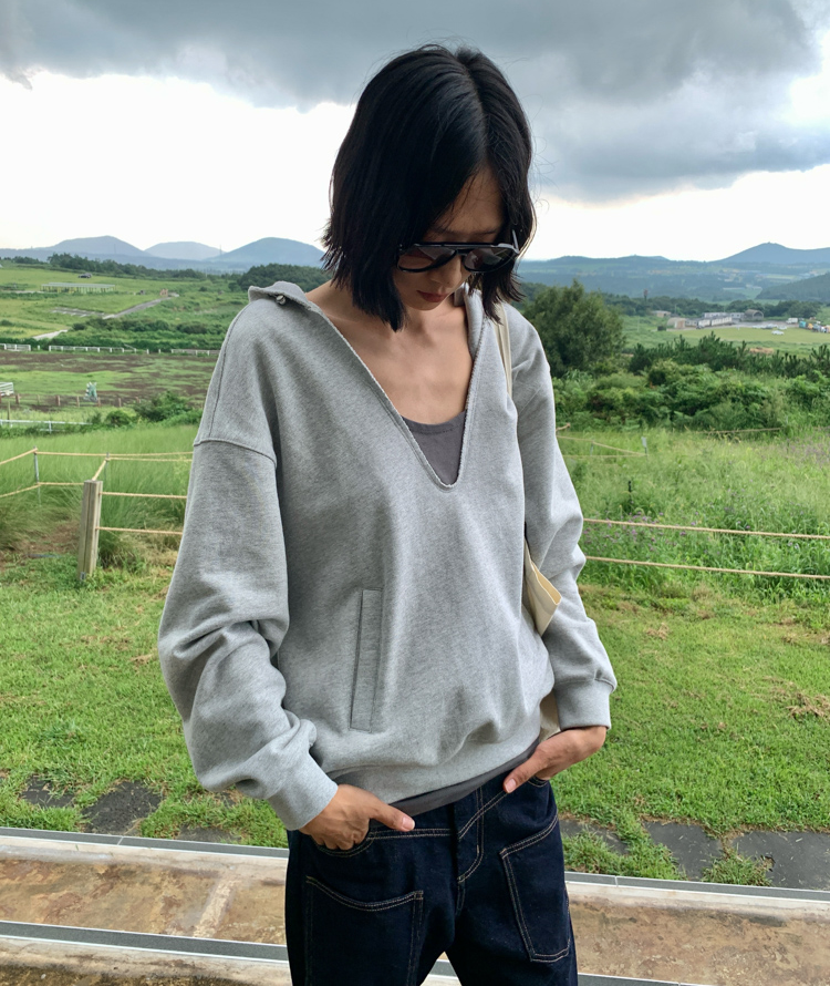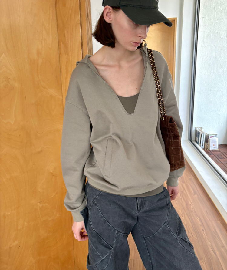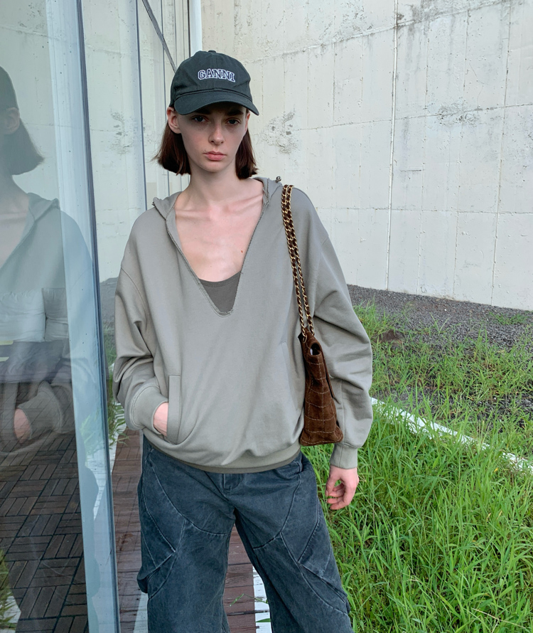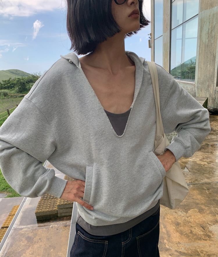 cotton contrast color fake two-piece hooded V-neck Tomboy sweatshirt