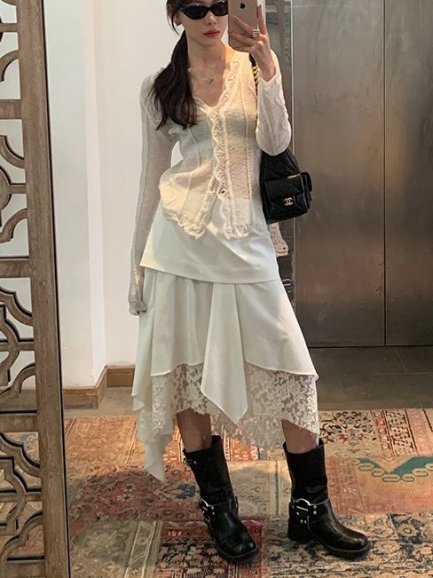 White Spring Lace Skirt
