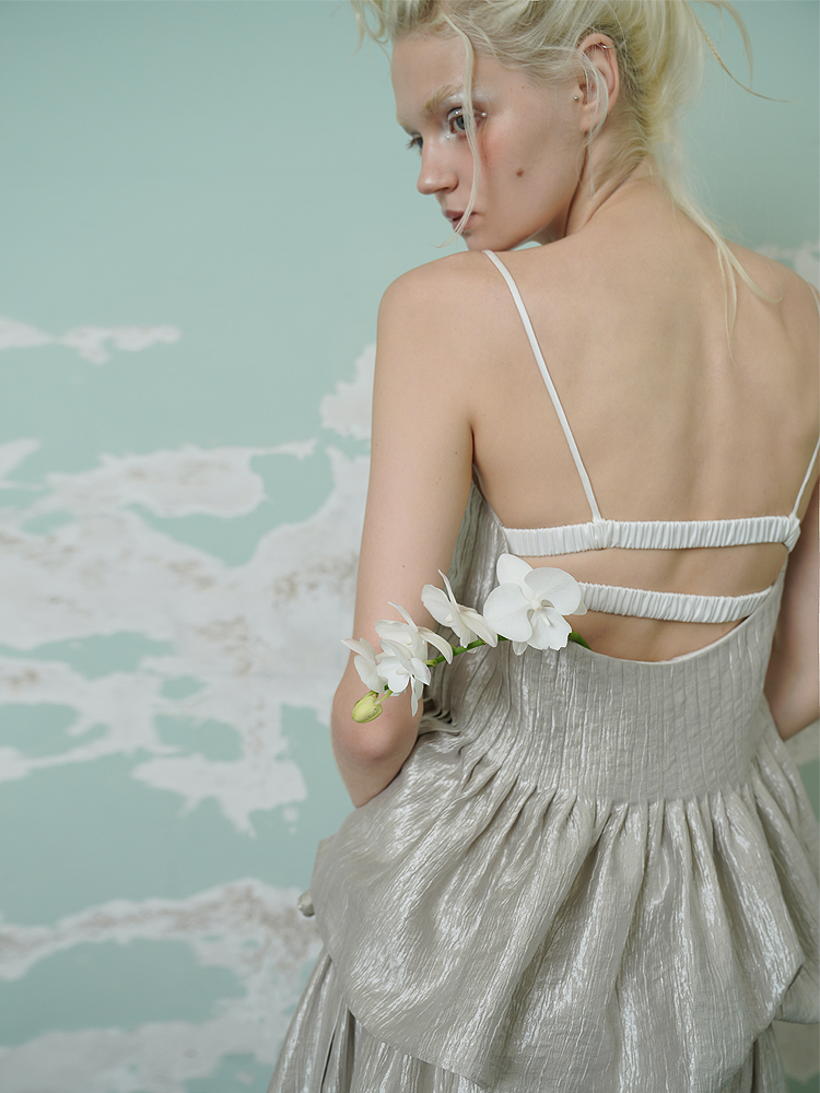 Liquid silver satin niche ballet backless slimming suspender top