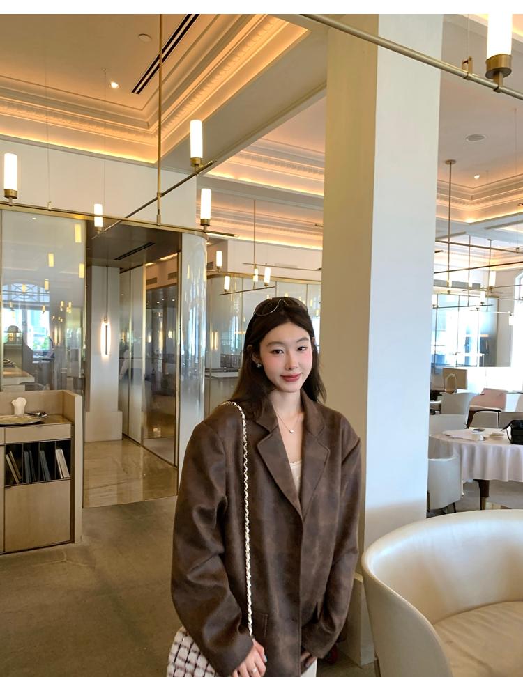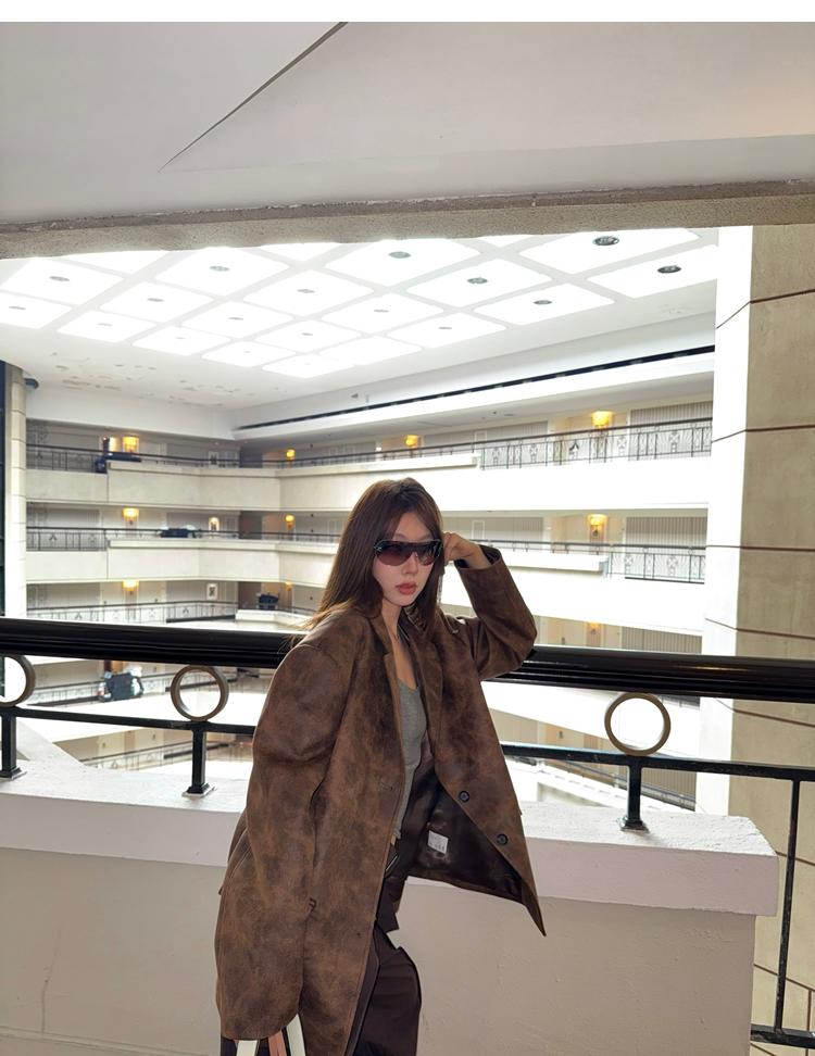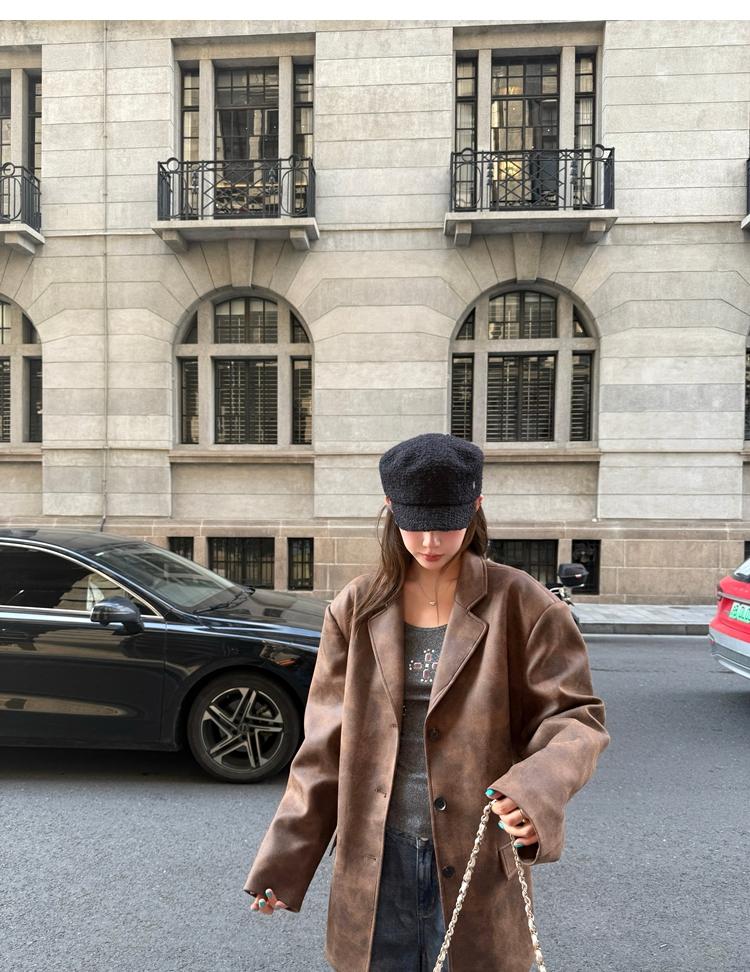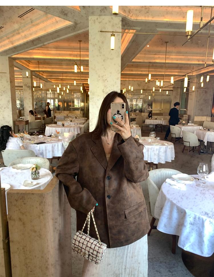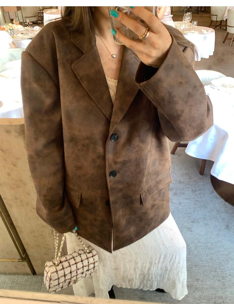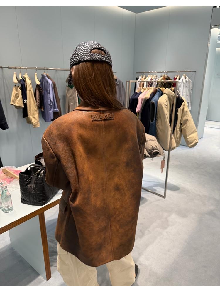 high-end sense of color-brushed leather jacket