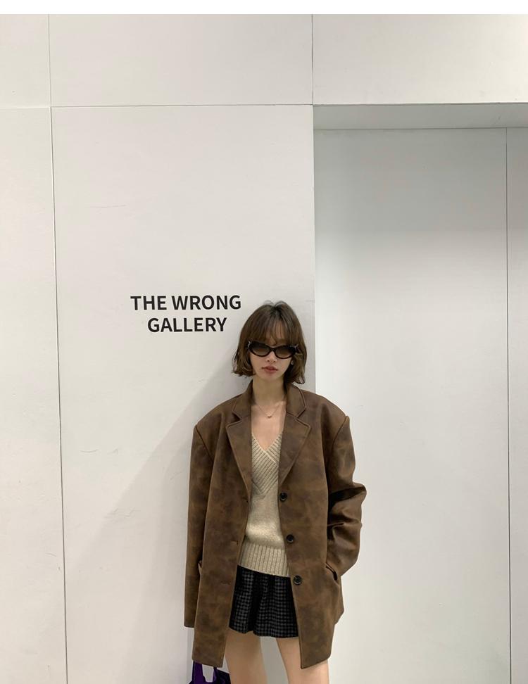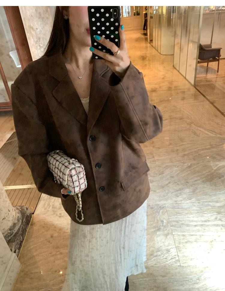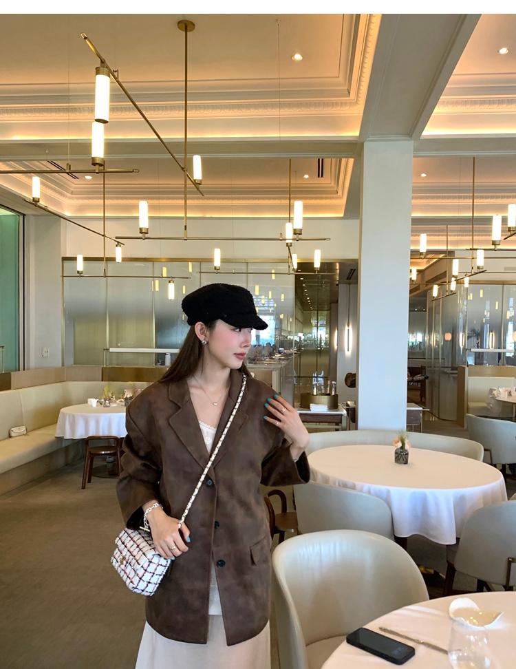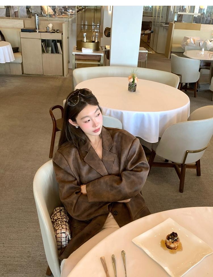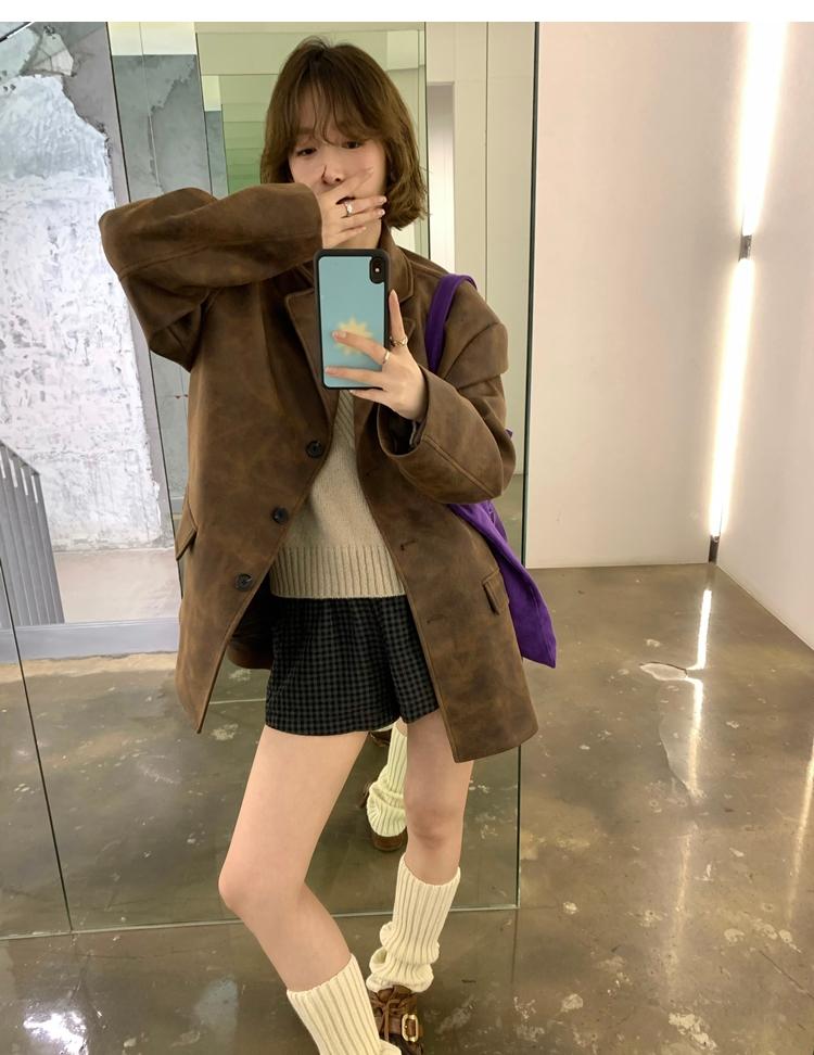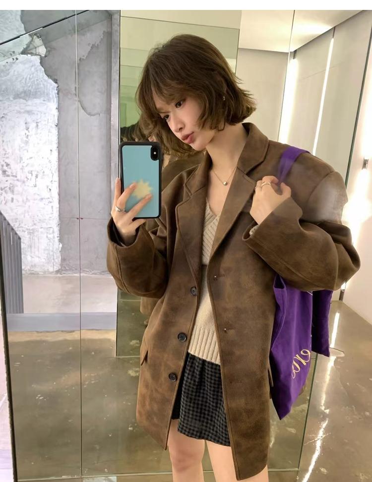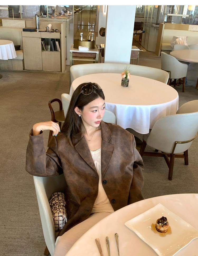 high-end sense of color-brushed leather jacket